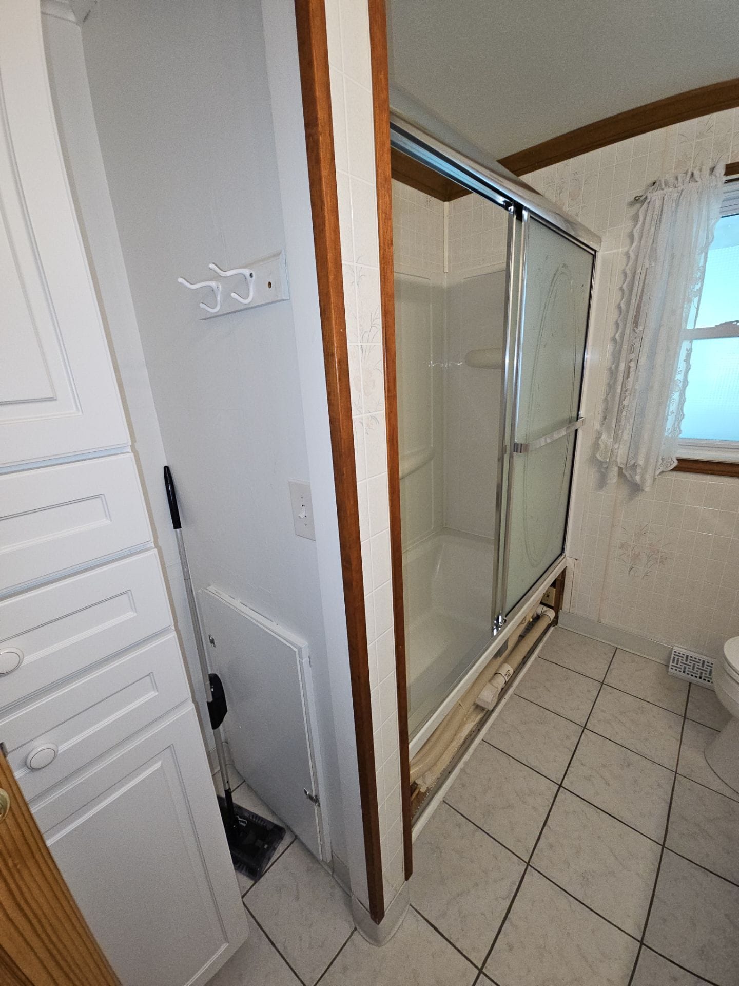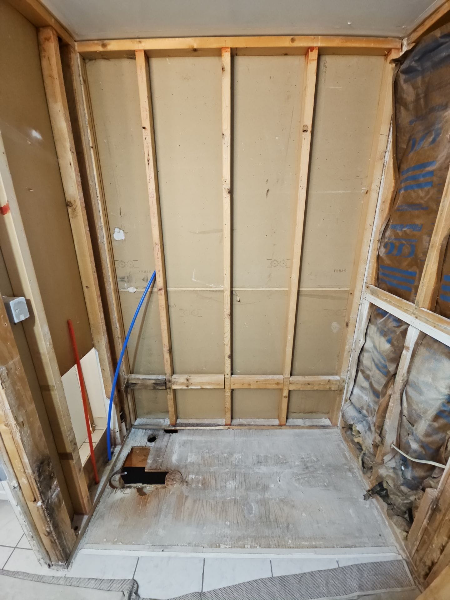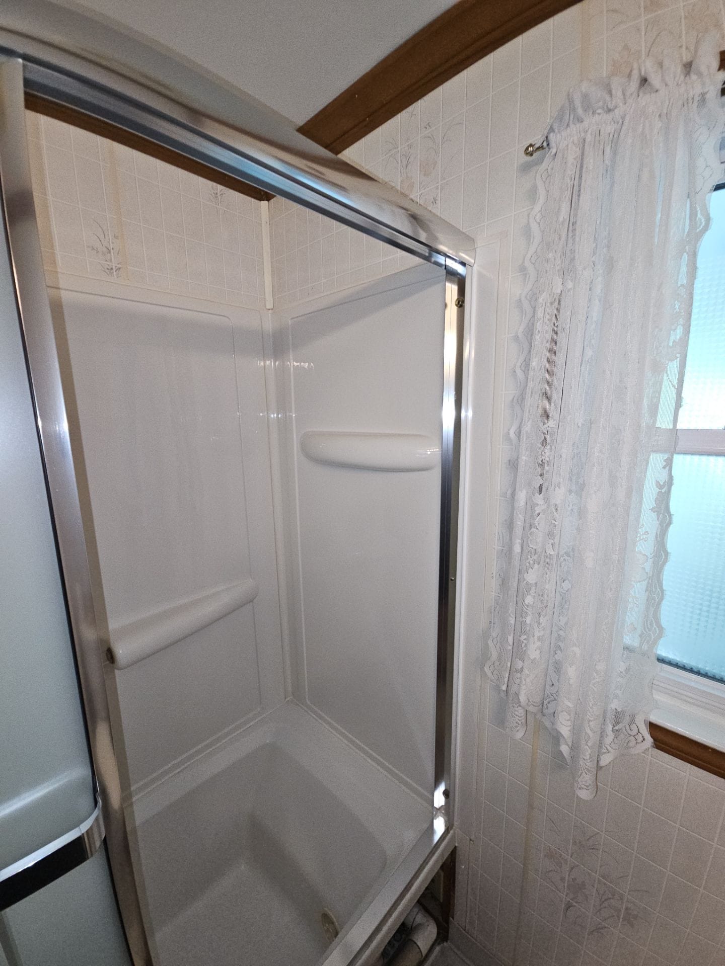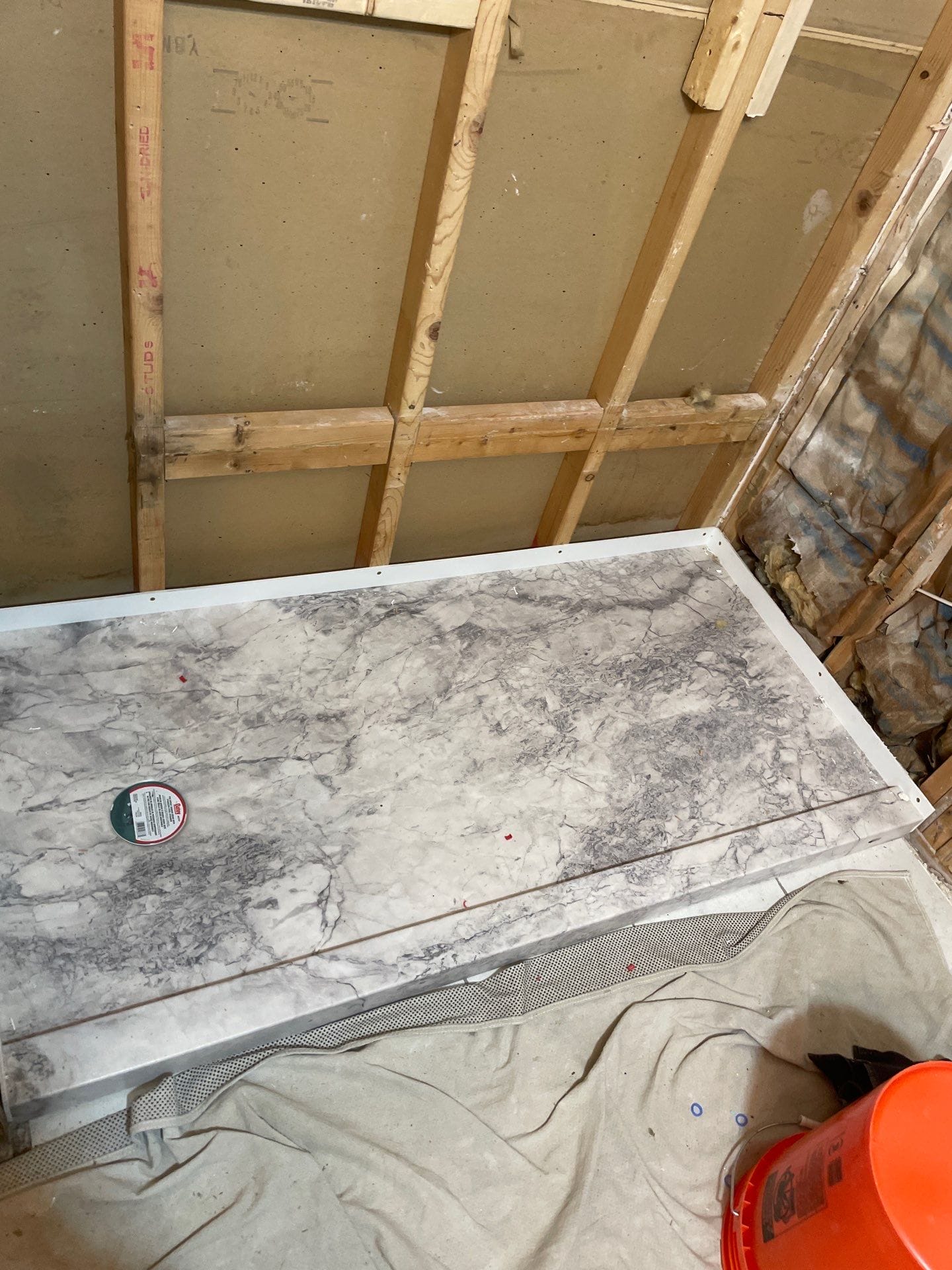 The installation began with a full demo to the studs, correcting subfloor moisture issues and replacing plumbing as needed. A custom shower pan was fabricated post-measurement to ensure a precise fit. All work was completed within a two-day window, meeting the guaranteed timeline. Fixtures were installed to code with secure wall reinforcement behind all load-bearing elements. Flooring and toilet access remained undisturbed throughout the project.