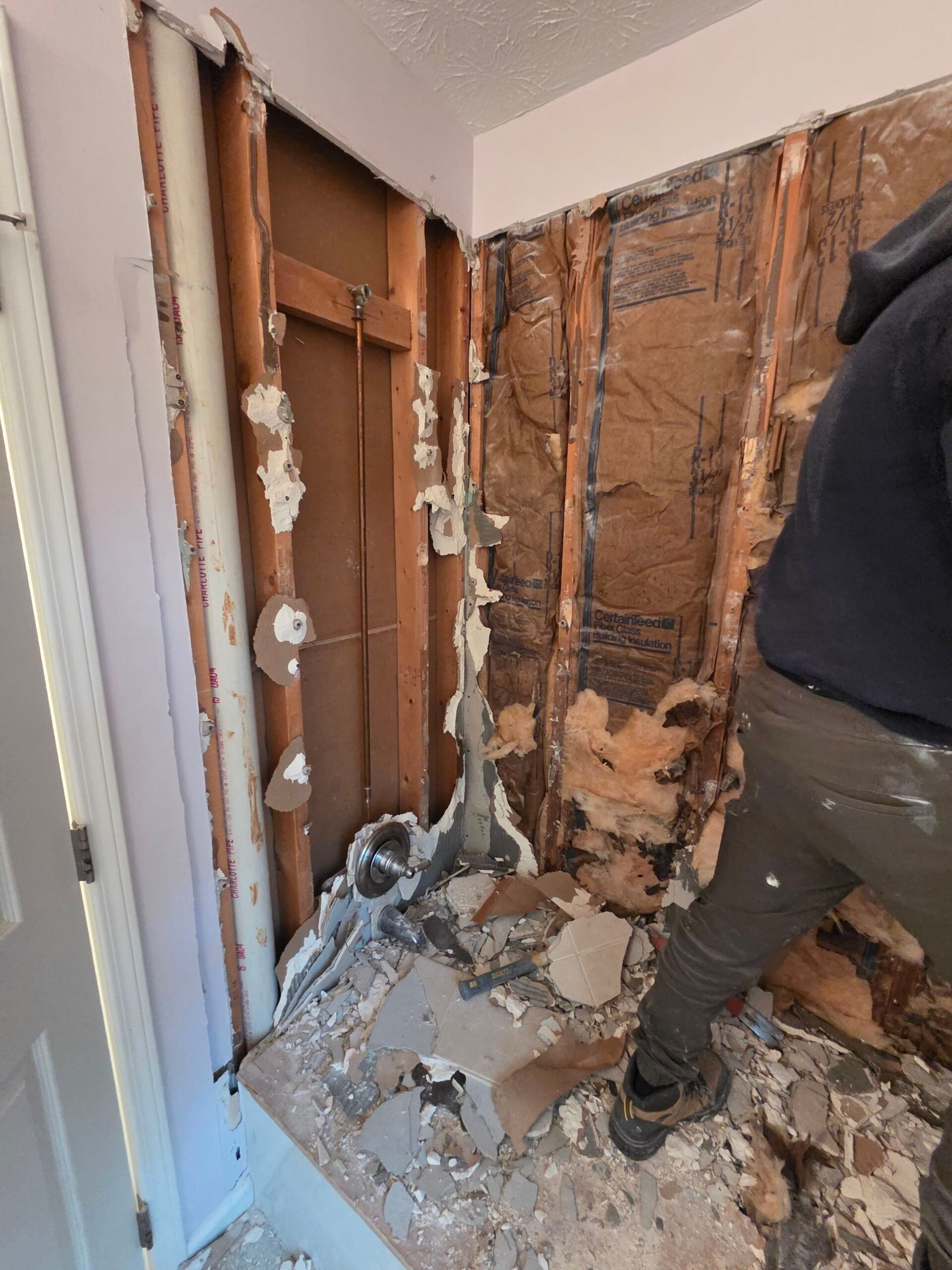 The installation process would include full demolition down to the studs, inspection for mold or damage, replacement of plumbing if needed, and installation of a new shower base with their proprietary waterproof system. The Smart Choice system uses hydro block board, quad-lock corner protection, waterproof adhesives, and silicone to create a durable, mold-resistant enclosure. Installations typically take two to three days. Daniel also offered to coordinate flooring in an additional downstairs bathroom if the main shower remodel moved forward, clarifying that they don’t service standalone flooring jobs unless part of a larger project.