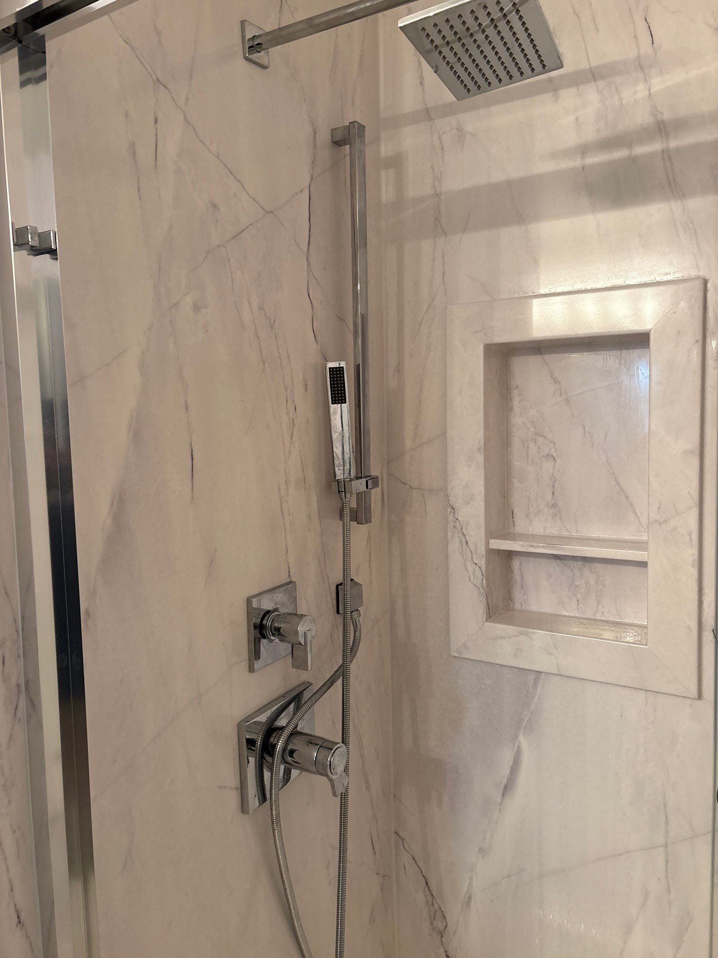The Representative presented a high-quality composite wall system designed to be significantly thicker and more durable than standard acrylic options. This system features slip-resistant surfaces and antimicrobial properties to ensure the bathroom remains safe and easy to maintain over time. Options for the new installation included modern marble-patterned wall panels, chrome or matte black hardware finishes, and a selection of safety bars. By focusing exclusively on bathroom remodeling, the company ensures that all products are engineered to withstand daily use without the risk of the crumbling or leaking seen in the previous installation.