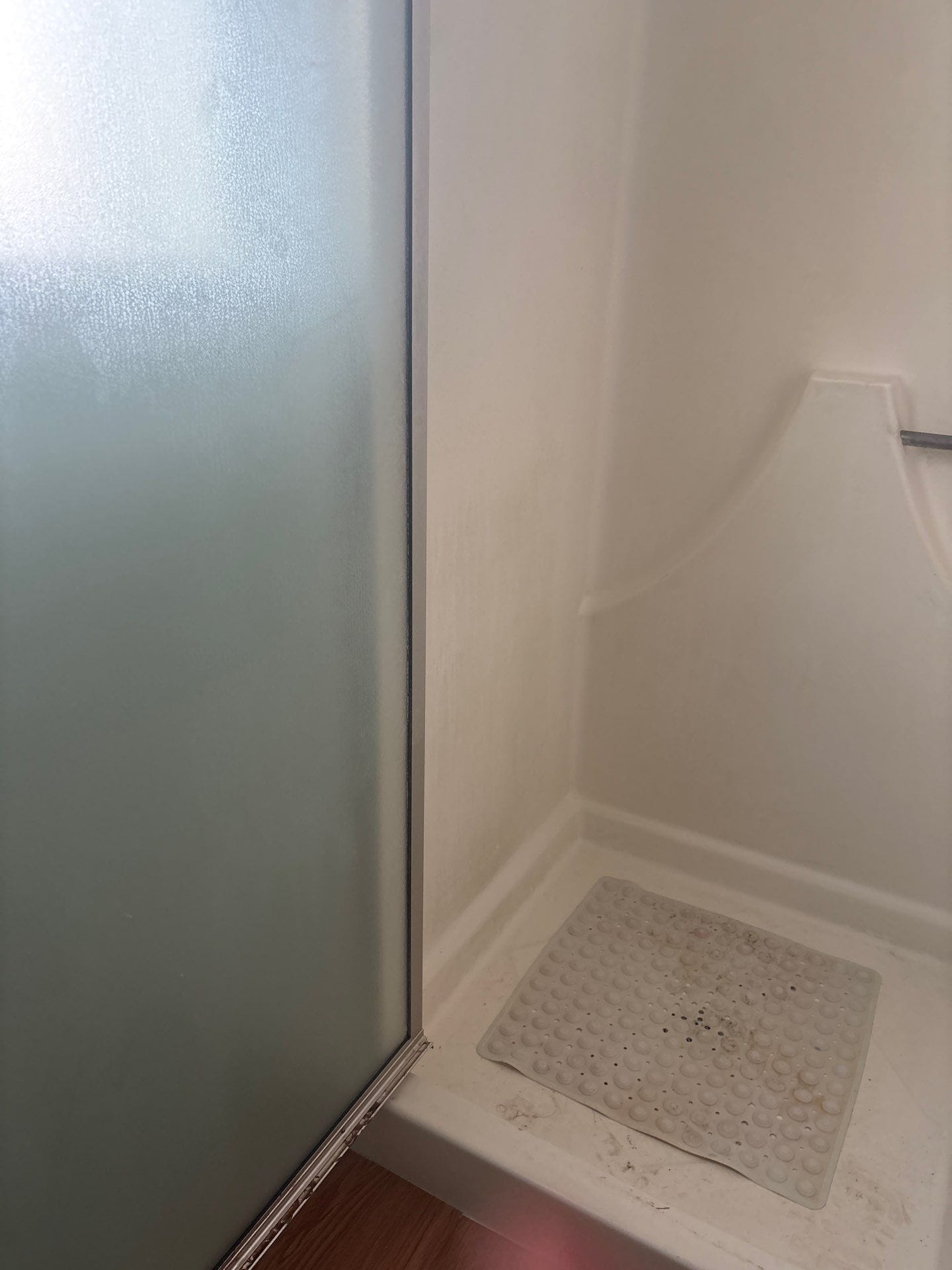 * Custom-fit glass shower enclosure with chrome hardware
