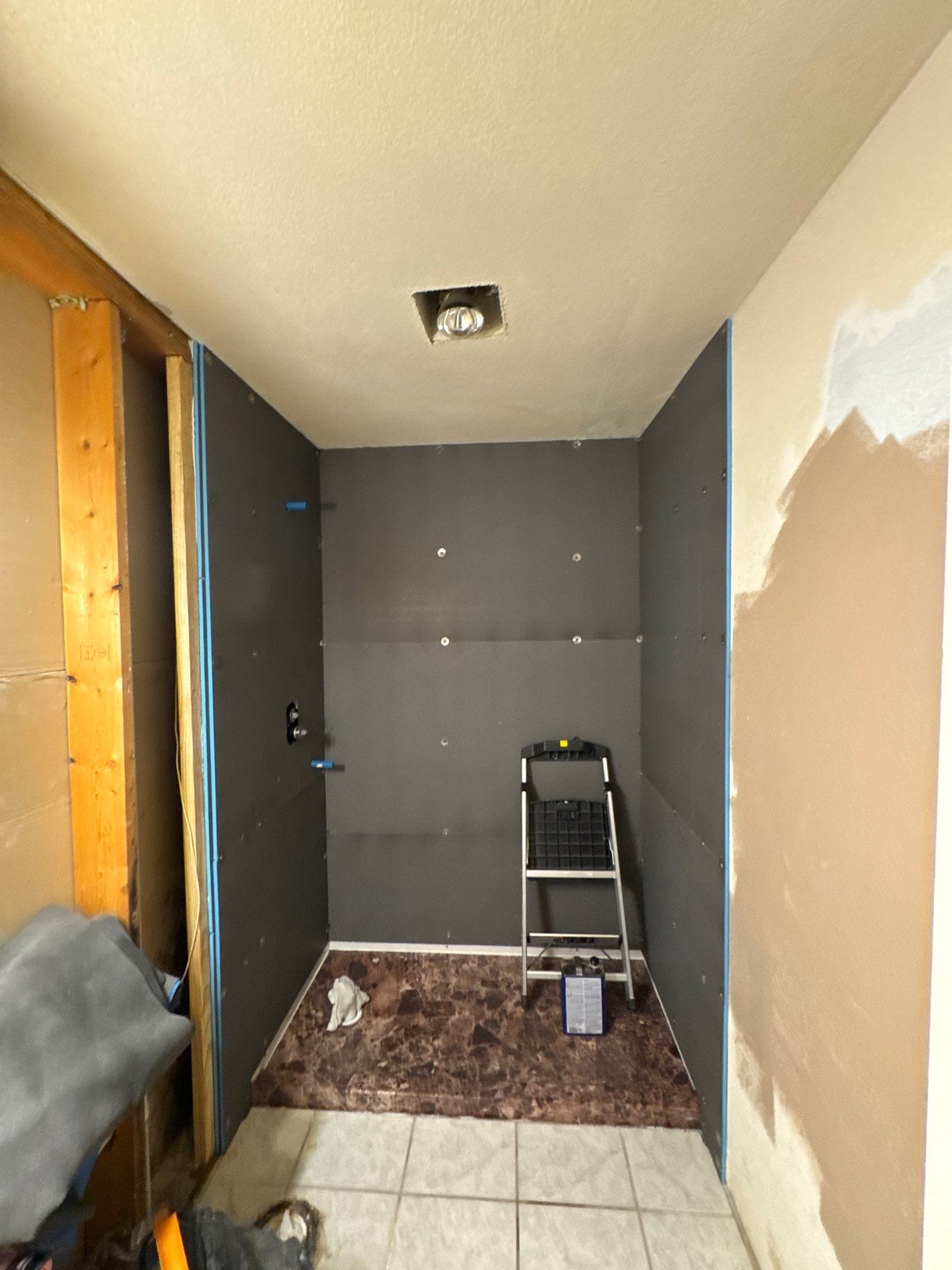 * Walk-in shower expansion with full demo and reframing