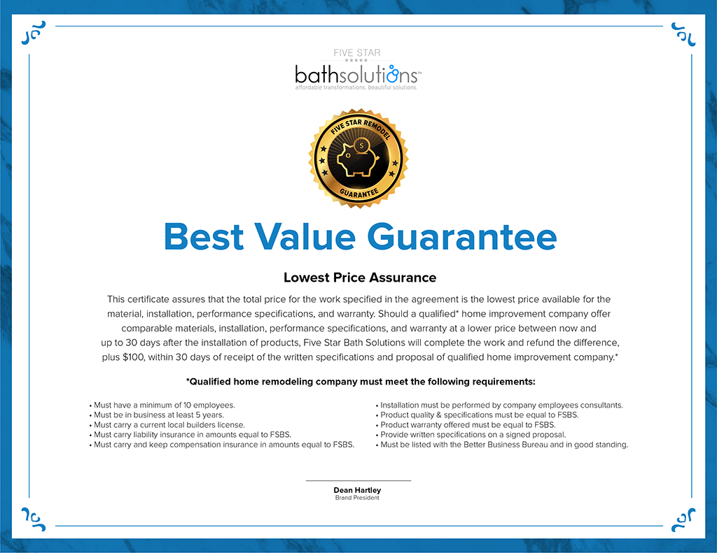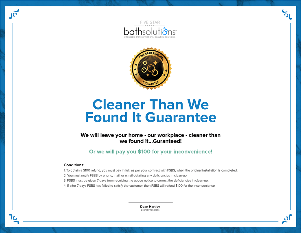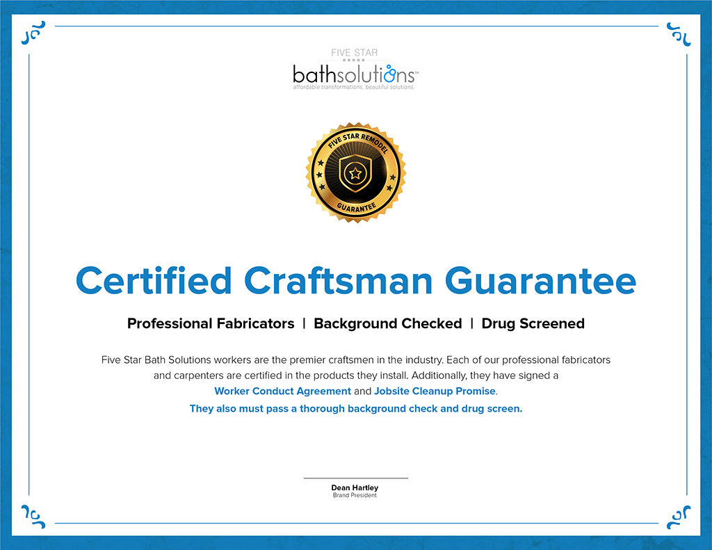 What intrigued me about Five Star Bath Solutions was their waterproof for life guarantee. Going from no guarantee to a lifetime guarantee felt like an impossible solution that I’d never even dreamed of. Their commitment to providing a really amazing experience as well as backing it up with me along the way, calming my fears, but showing me why really just proved that they really are experts.