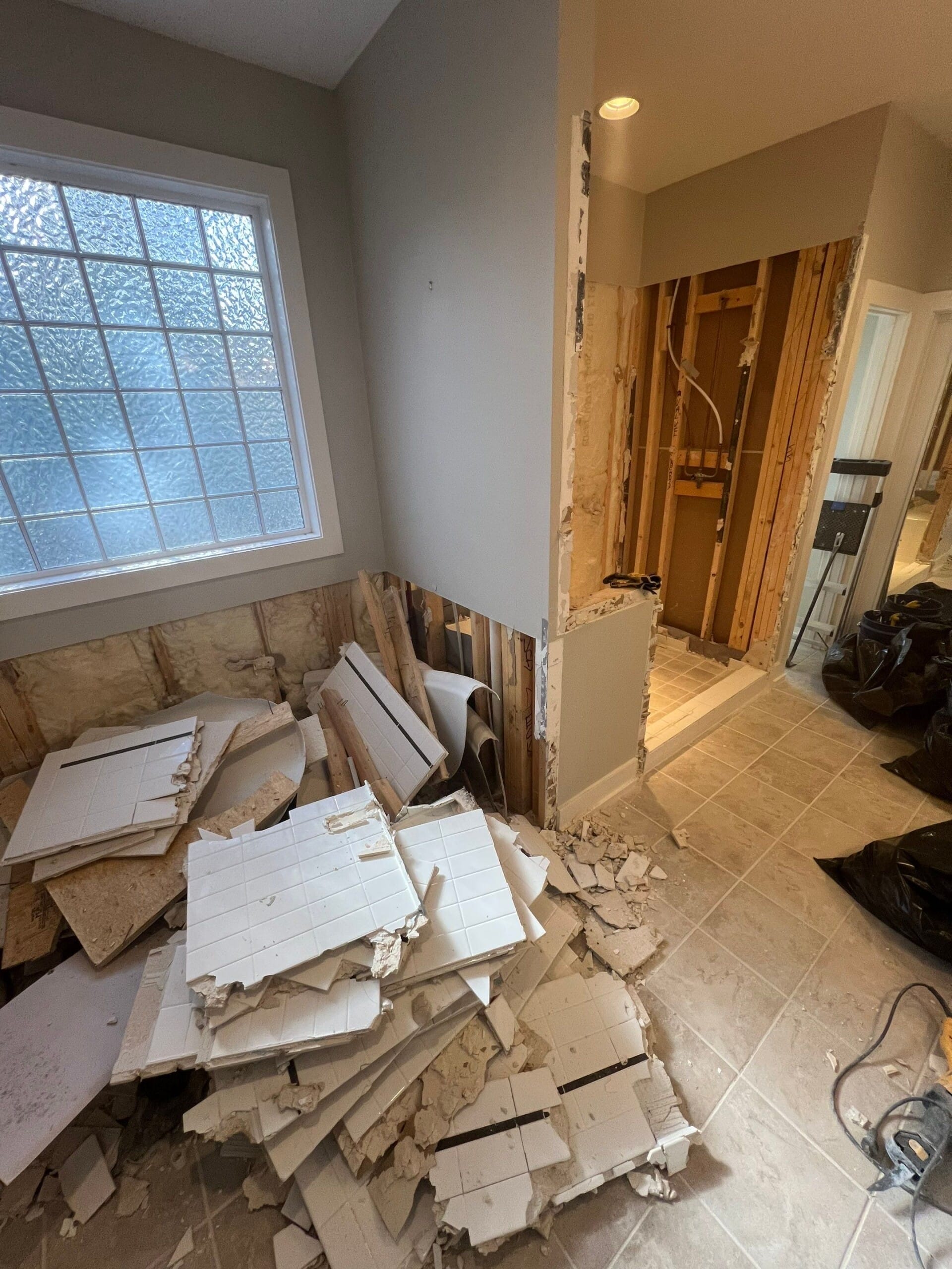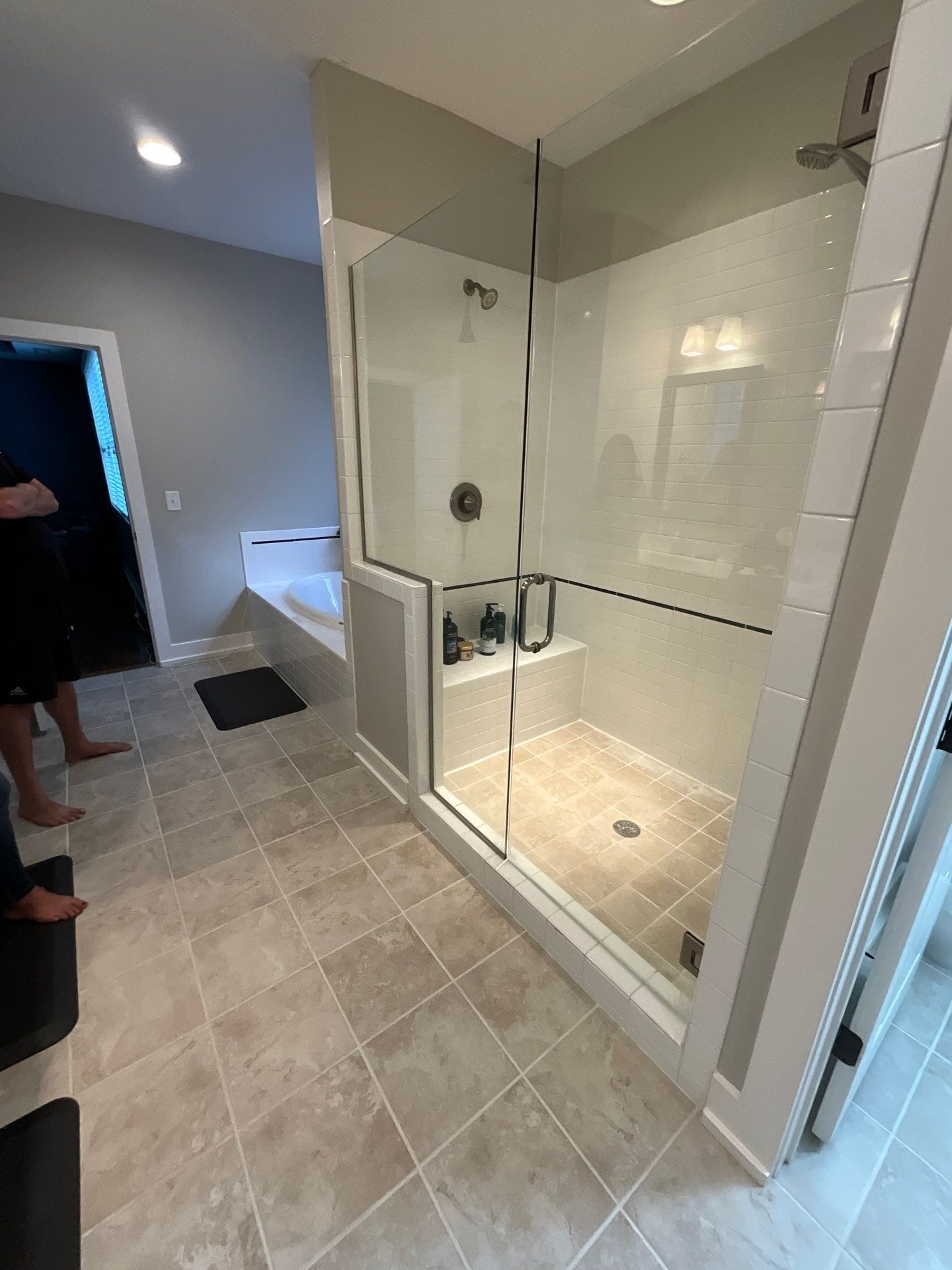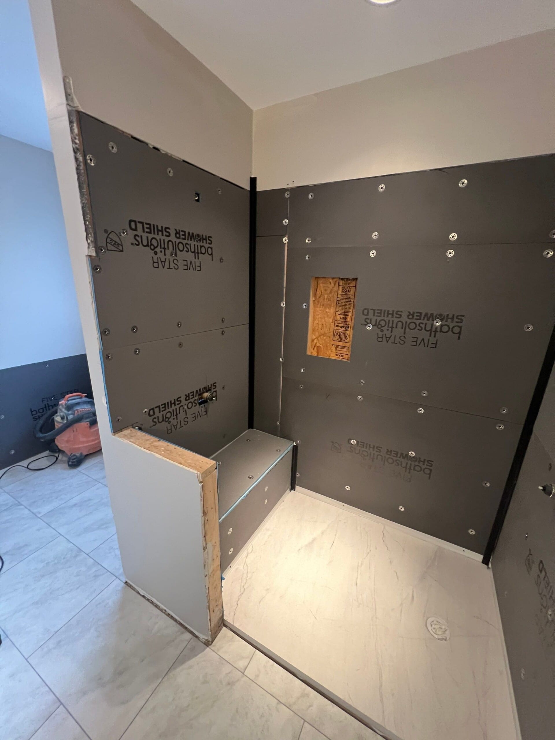 Installation involved a complete removal of the original wall panels, floor tiles, and plumbing elements. Technicians began by protecting surrounding floors, then demoed the shower down to the studs. Any signs of mildew behind the tile were treated, and the substructure was rebuilt using reinforced waterproof wall backing. Updated plumbing included a new PEX water line and PVC drain with P-trap, and the new anti-slip shower base reduced the step-in height dramatically. The remodel was completed within a two-day timeframe and the site was left spotless.