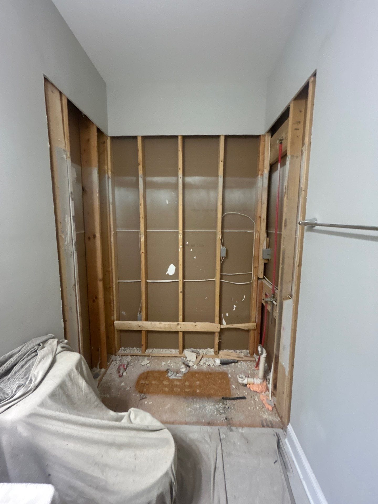 * Full demo to studs with waterproof shower shield and structural repair