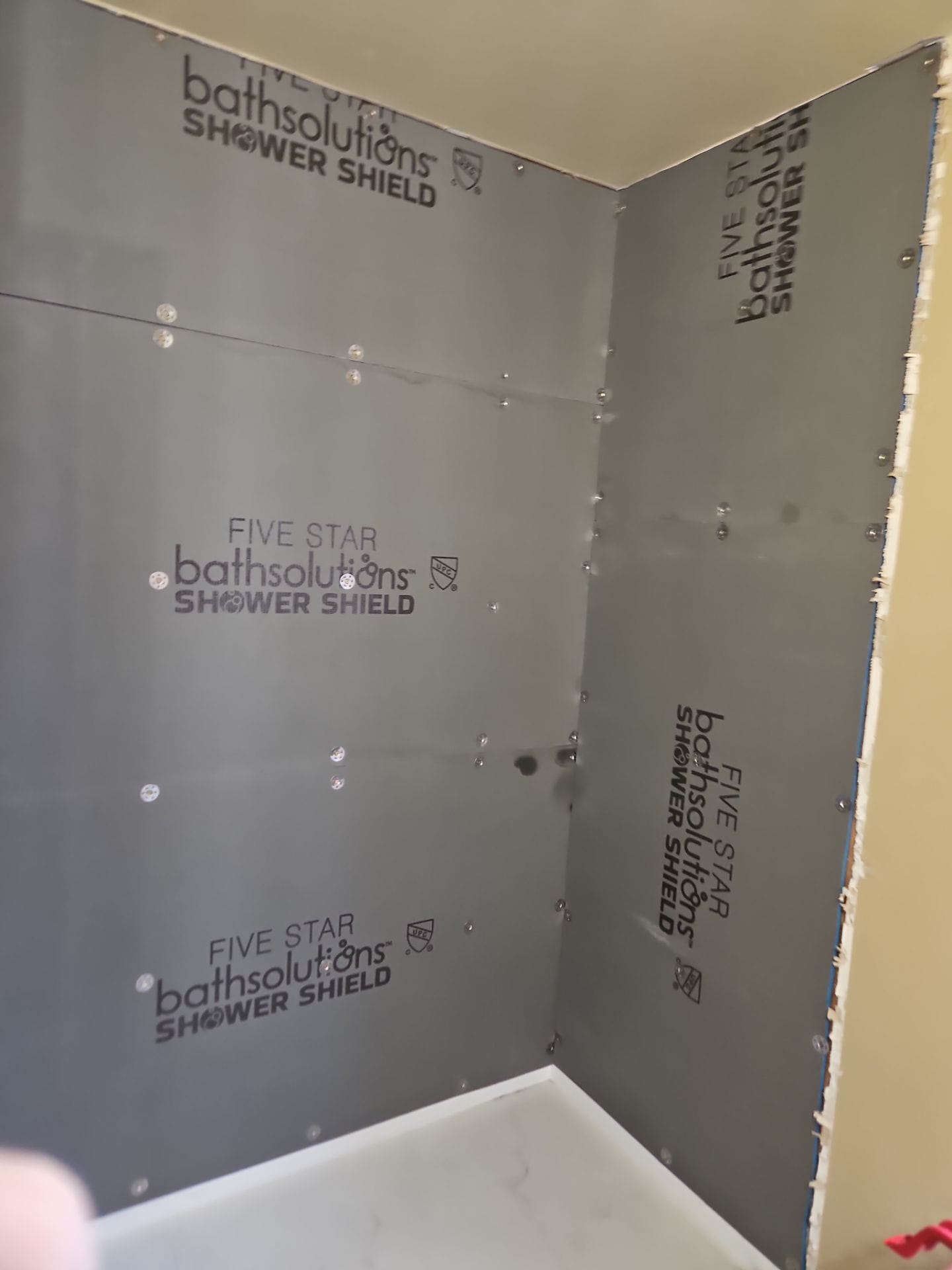 * Custom-sized shower pan with proper drainage slope