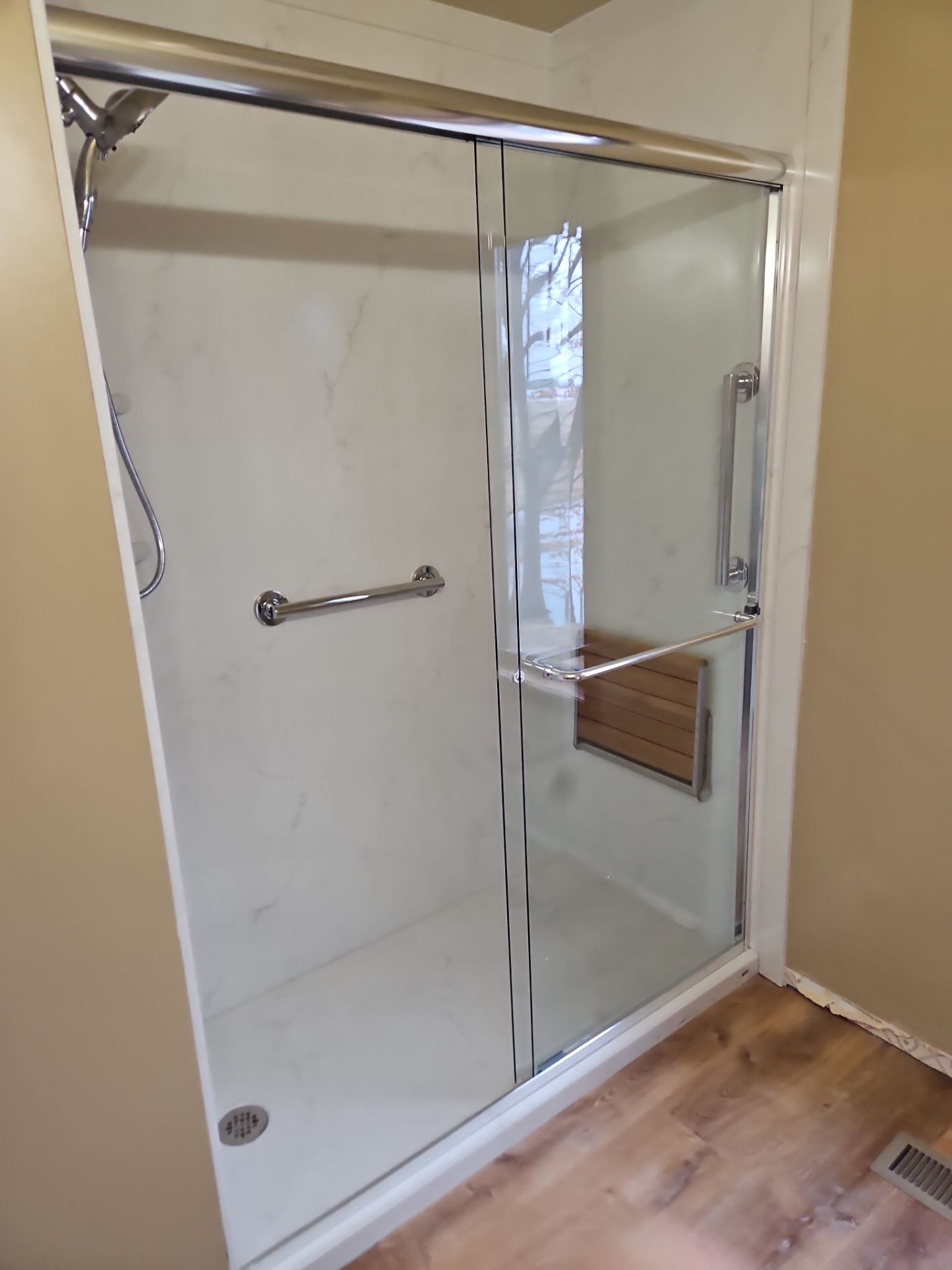 * Walk-in shower conversion replacing existing fiberglass tub