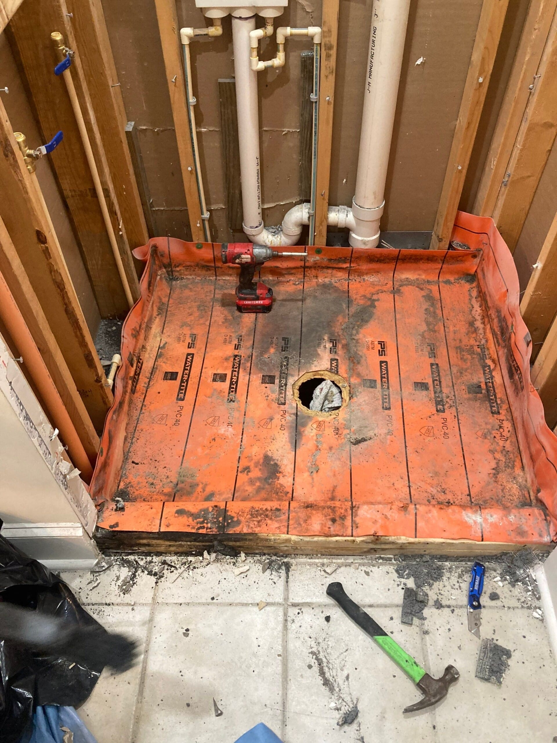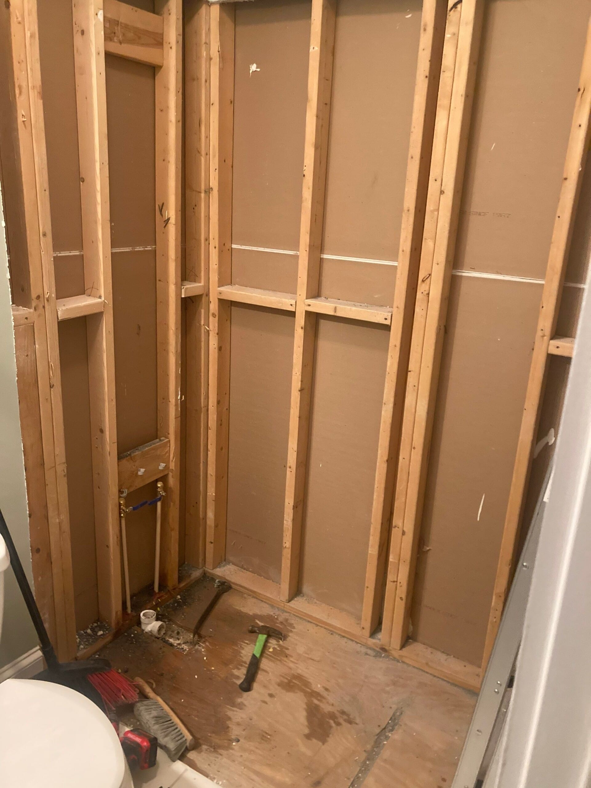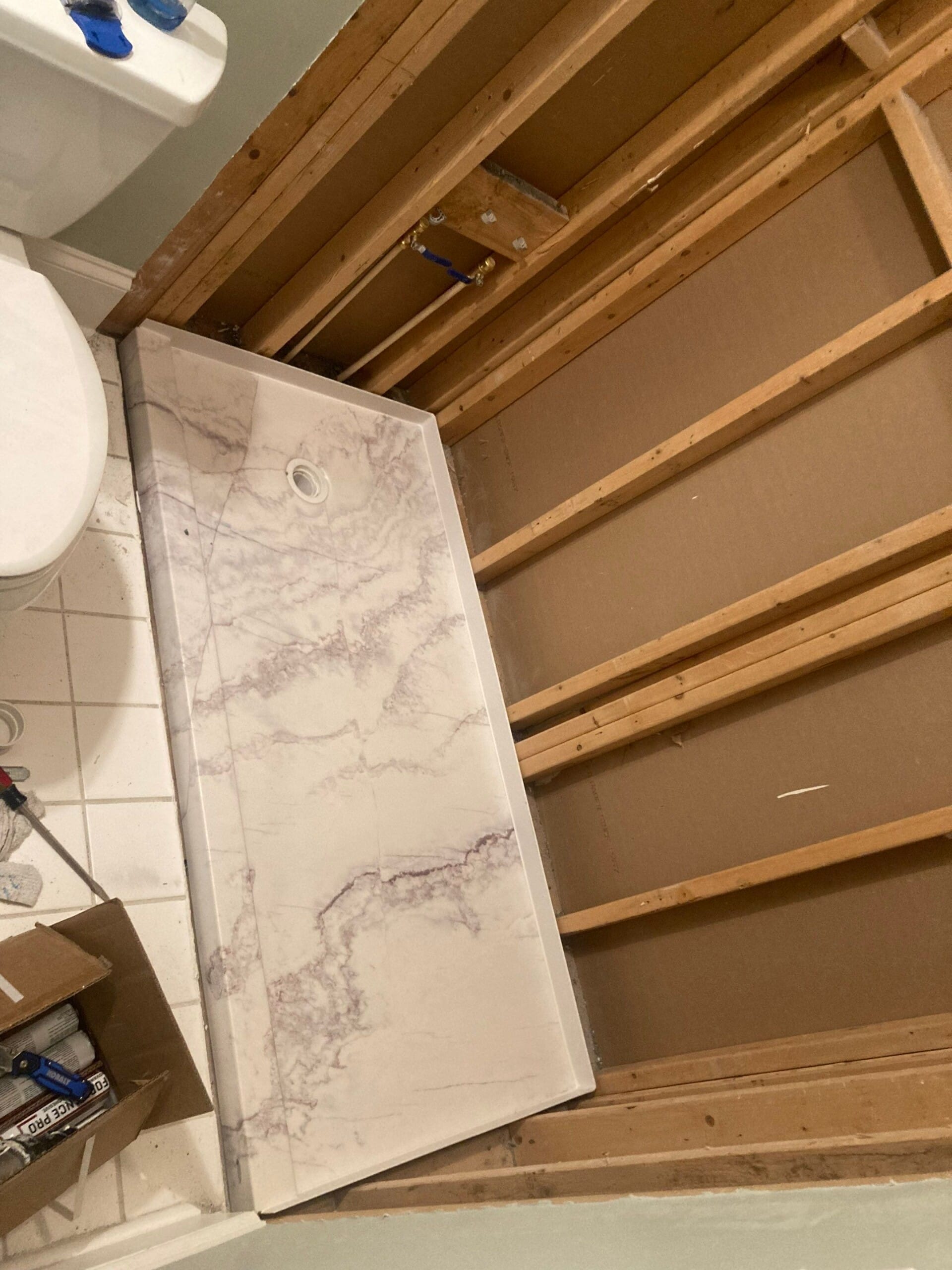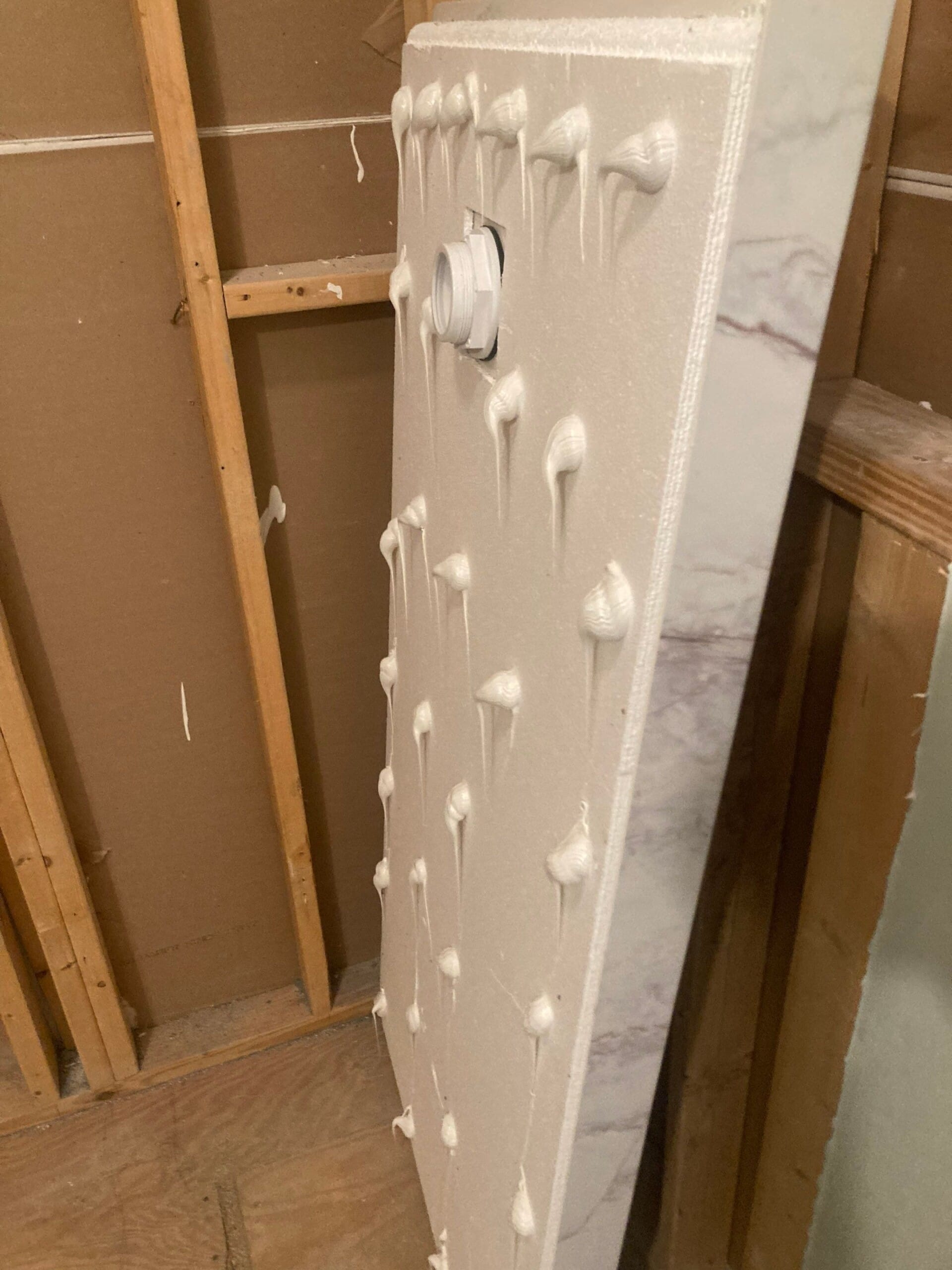 Installation was performed by certified in-house employees, following standard full-demolition protocol. Walls were stripped to the studs, inspected, and rebuilt using waterproof shower shield backer board. New plumbing lines and marine-grade silicone sealing were applied throughout. Panels reached ceiling height, and fixture placement was customized. A recessed niche replaced the previously tiled corner shelving. The remodel was completed within the scheduled two-to-three day window, in line with the customer’s move-in timeline.