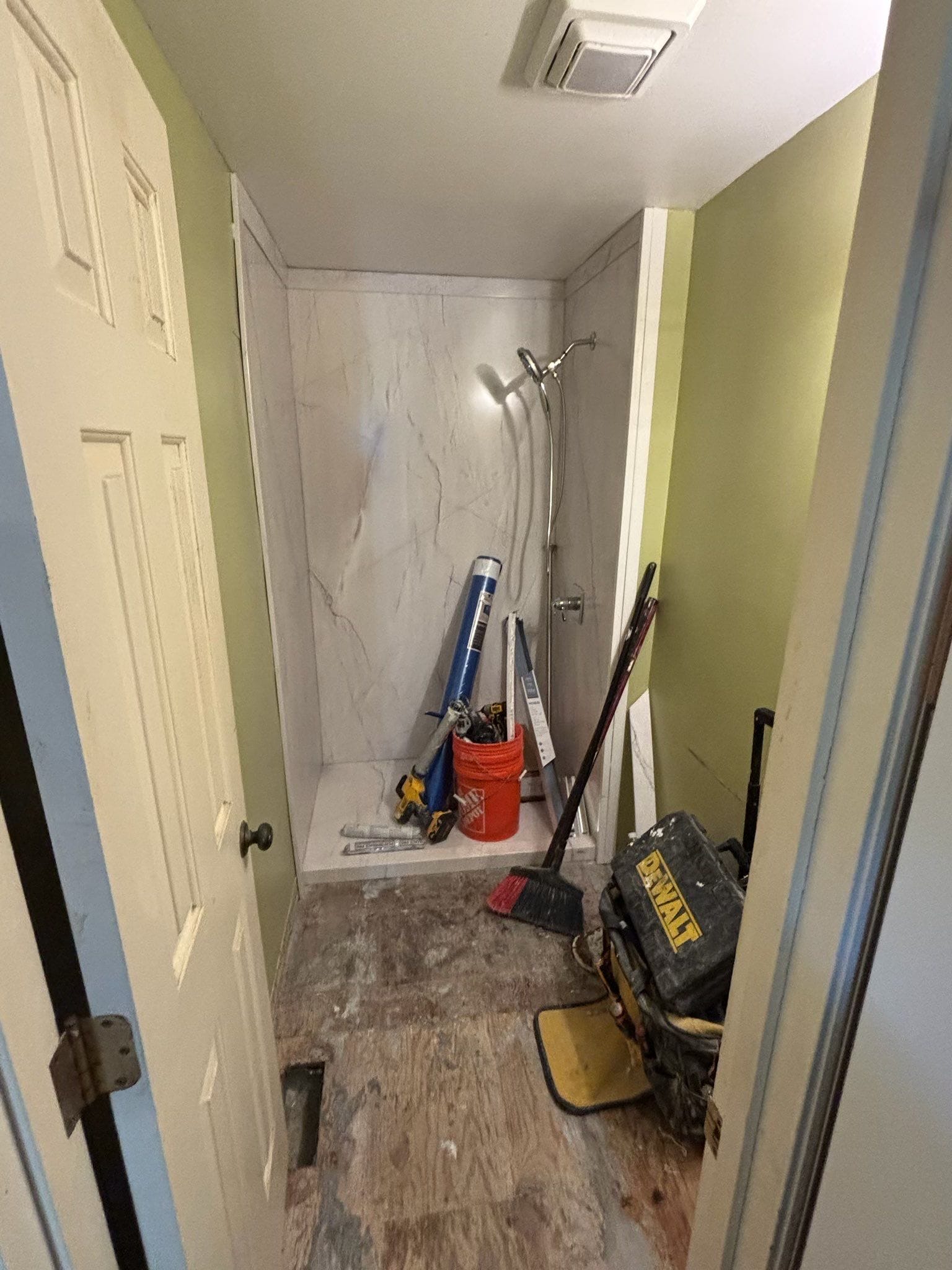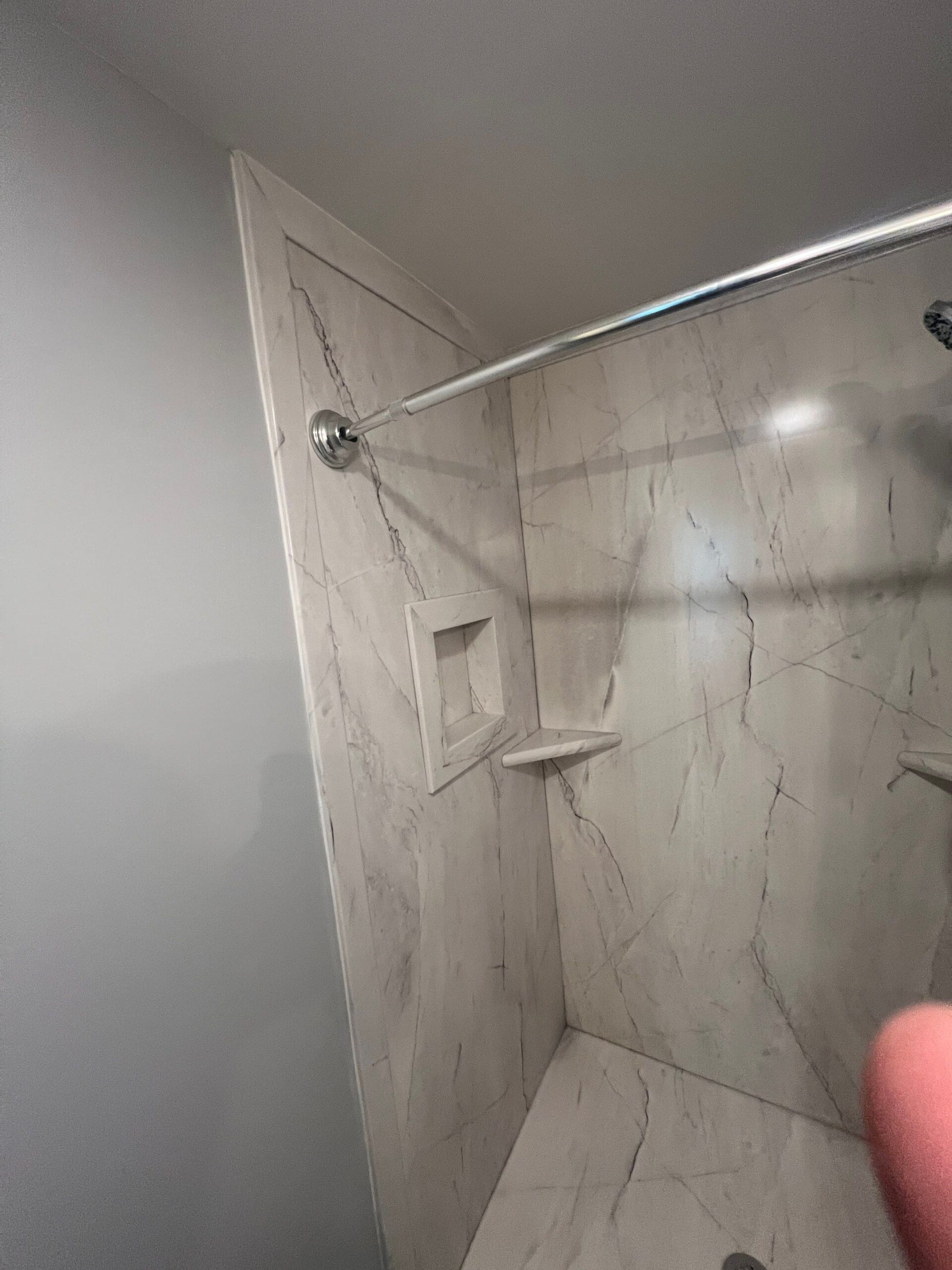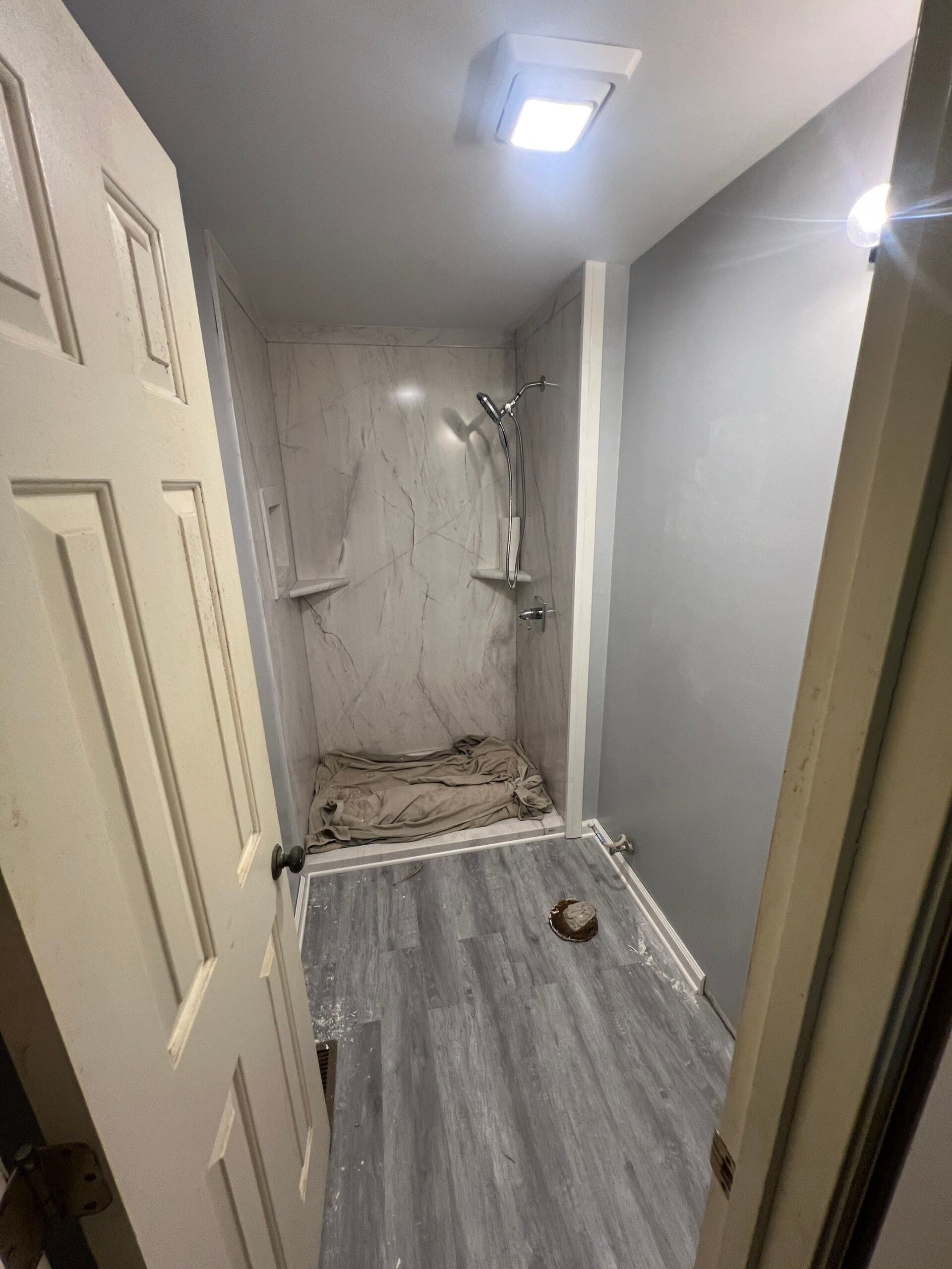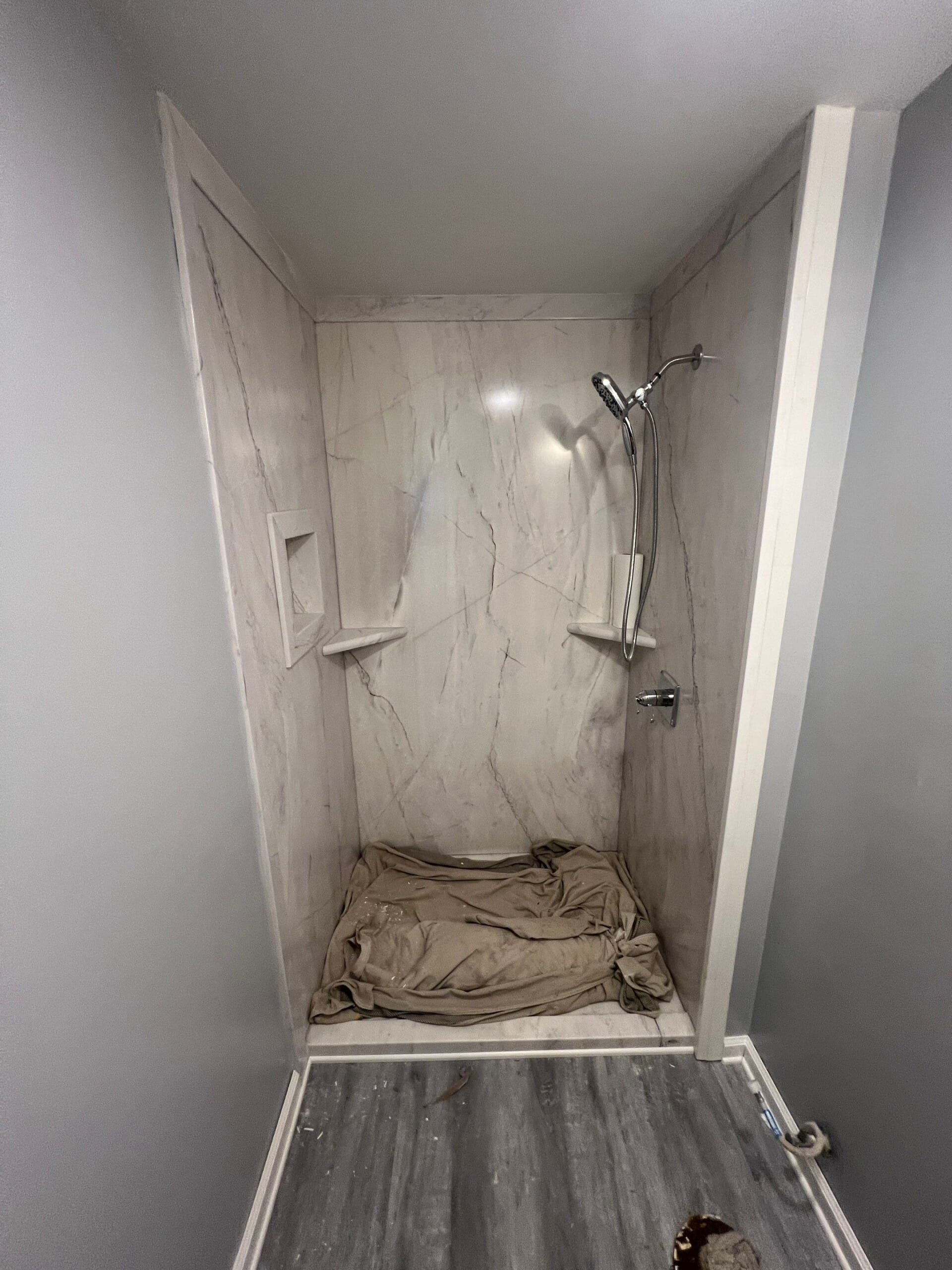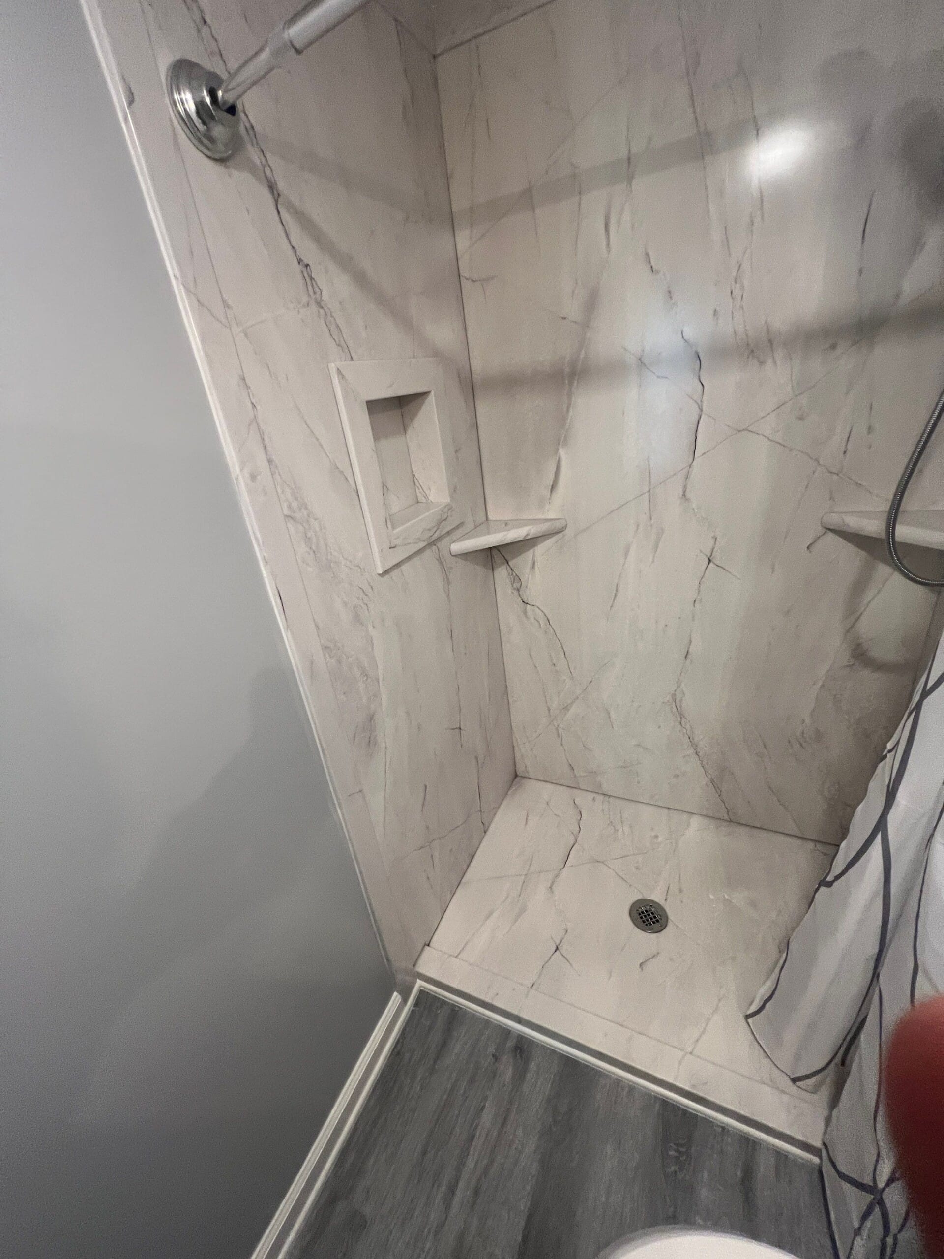 * Walk-in shower remodel with Smart Choice 100% PVC composite walls