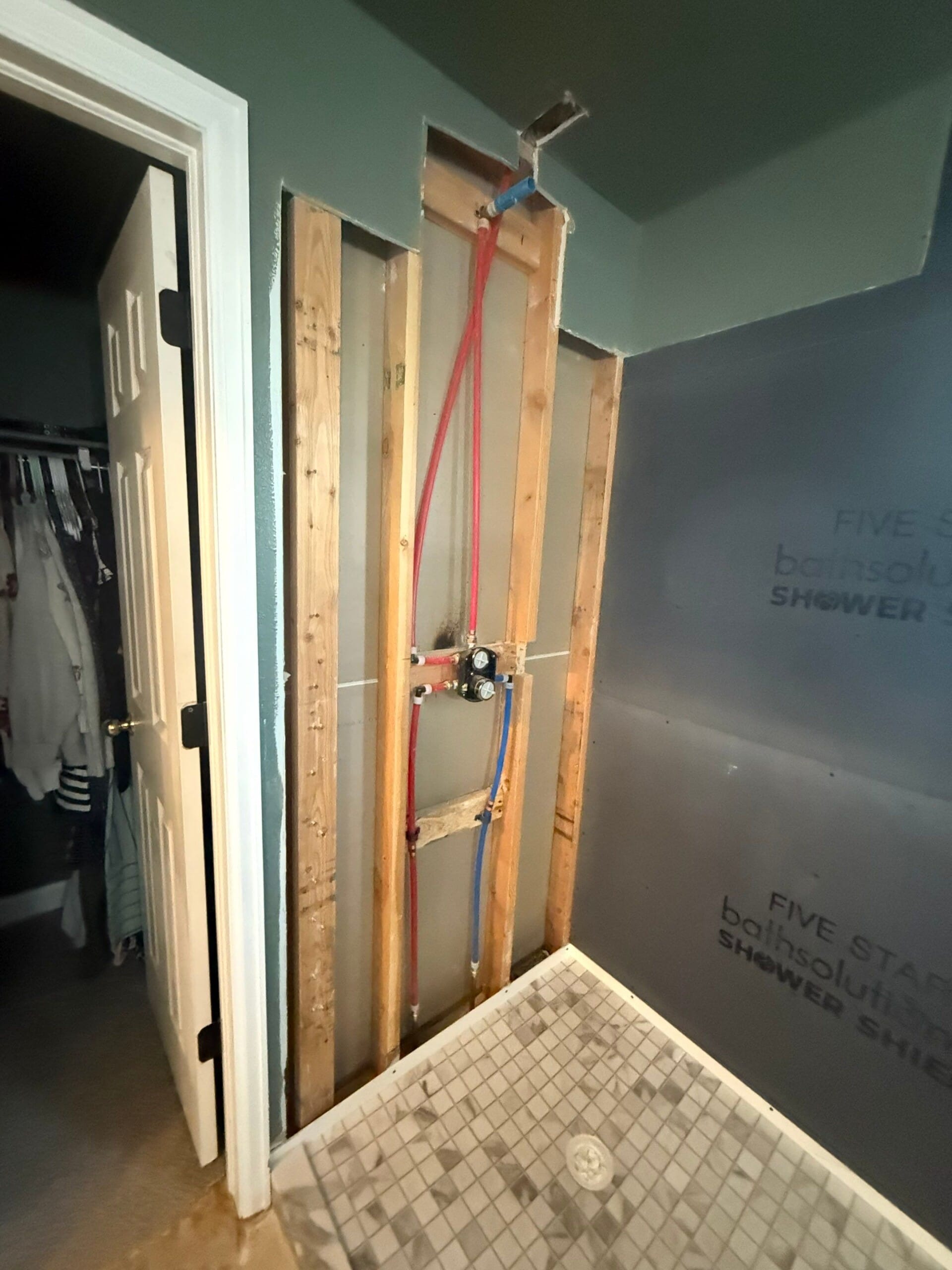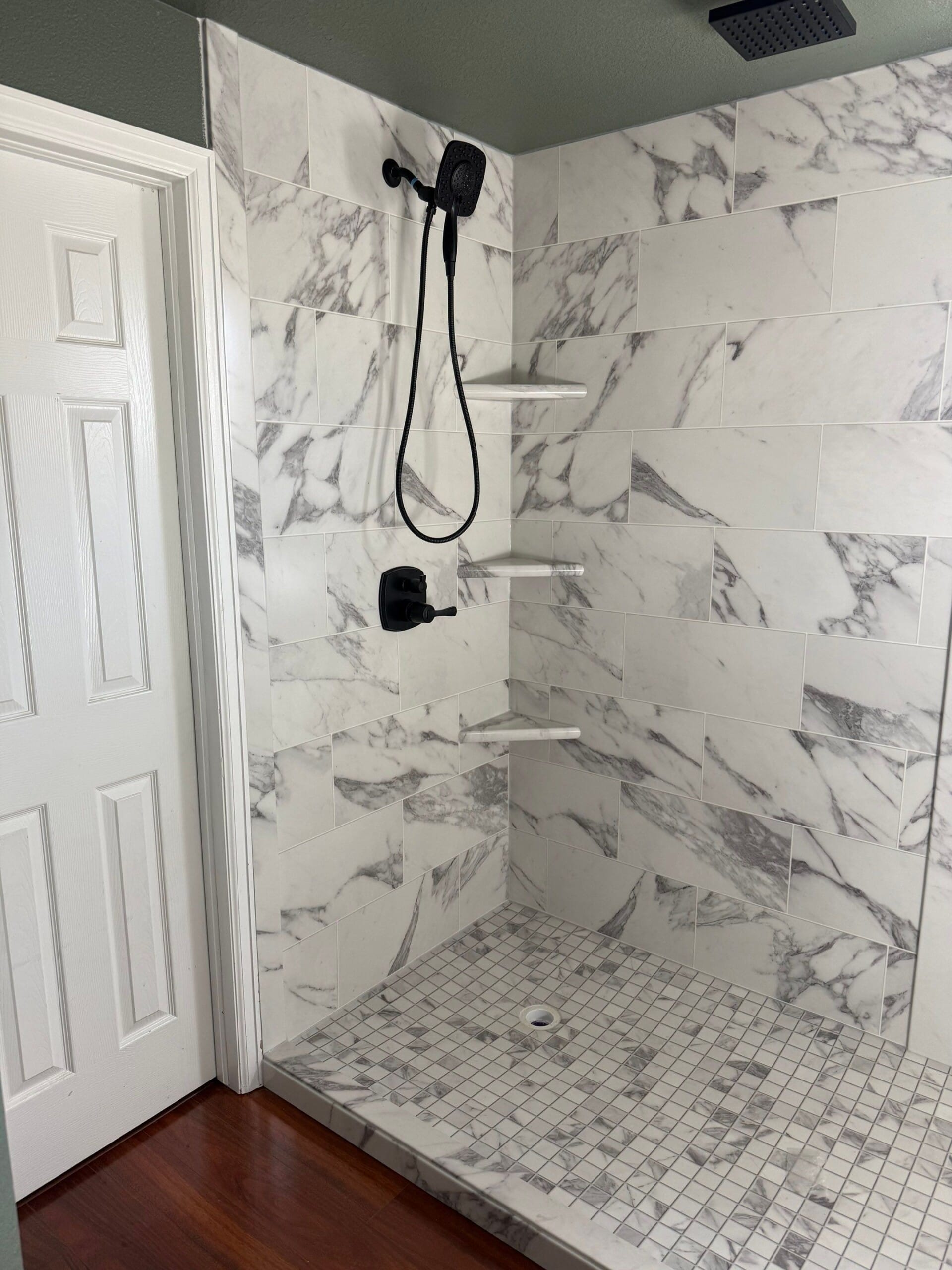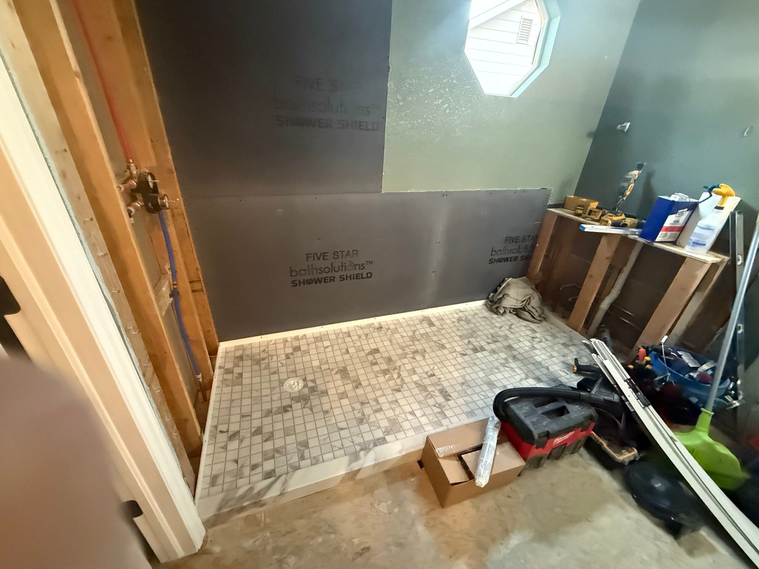 Installation involves full removal of the existing system down to the studs, with a full moisture and structural inspection and any required repairs done at no additional cost. Five Star uses only in-house, trained, background-checked installers, not subcontractors. The team custom-cuts wall panels onsite to fit each bathroom precisely. Monica noted that installation typically takes one to two days per bathroom, and materials arrive within six to eight weeks from order. The company coordinates all scheduling, keeps customers informed through project managers, and works with trusted third-party vendors when required to move electrical or plumbing features.