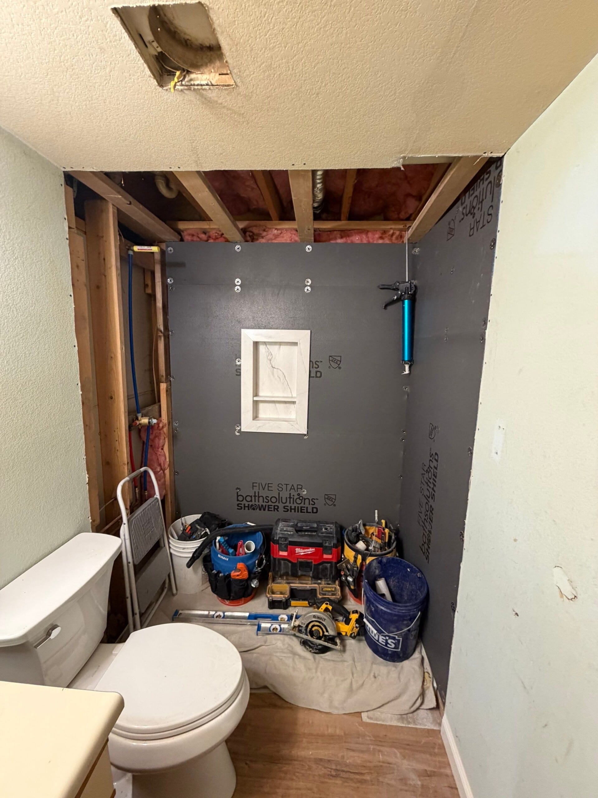 Installation was completed within a two-day to three-day timeline by a professional crew. The process included a full demolition down to the wall studs, repair of any identified structural water damage, and the installation of the new waterproof barrier. Crew members protected the home during the project and performed a final walkthrough to ensure all fixtures, including the sliding glass doors and safety features, met quality standards. No external waste bins were required as the site was kept clear of debris throughout the process.