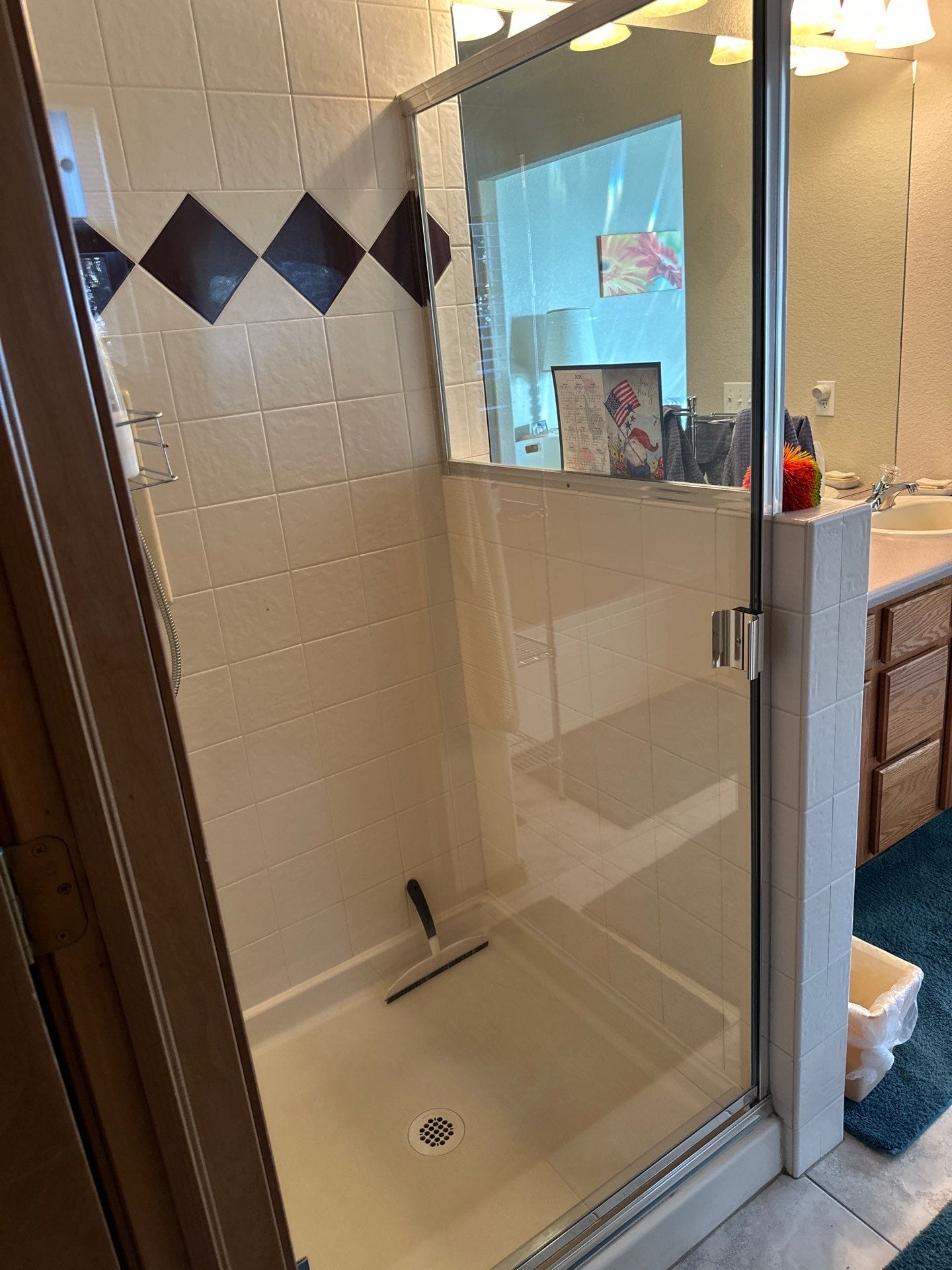 * Walk-in shower conversion with low-threshold shower base