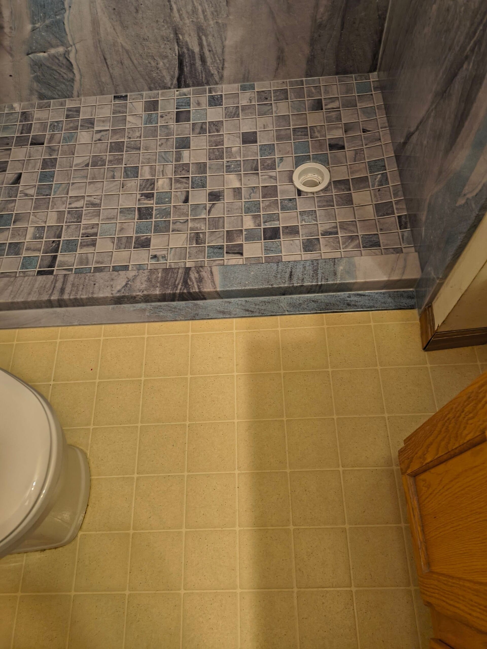 * Slip-resistant mosaic shower floor