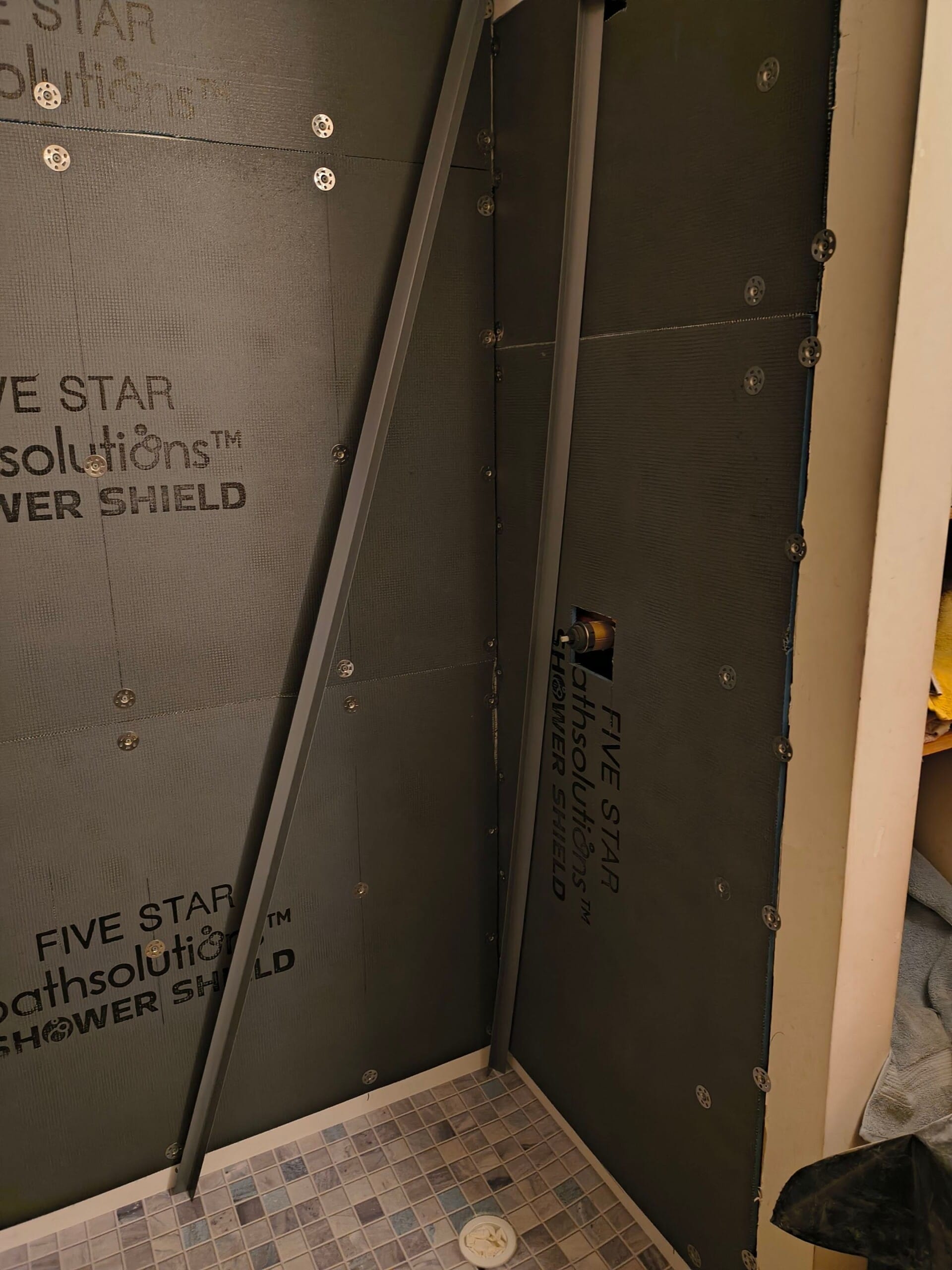 Installation involved complete removal of the existing tub and wall system down to the studs, followed by structural preparation and plumbing adjustments as shown during the open-wall phase. A waterproof backing system was installed prior to the wall panels to ensure long-term moisture protection. The new shower base, wall panels, seating, and fixtures were then installed with precise alignment and sealing. The project was completed efficiently by trained in-house professionals, including full site protection and cleanup.