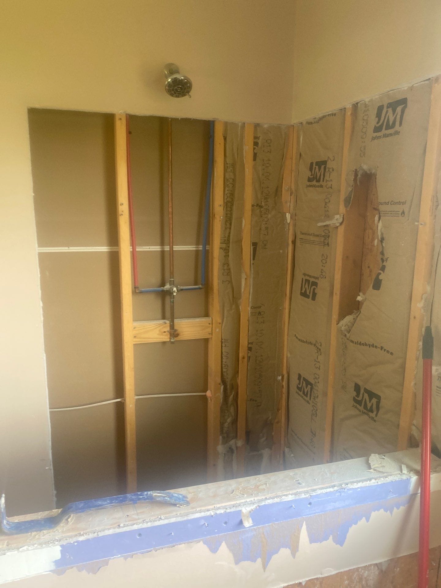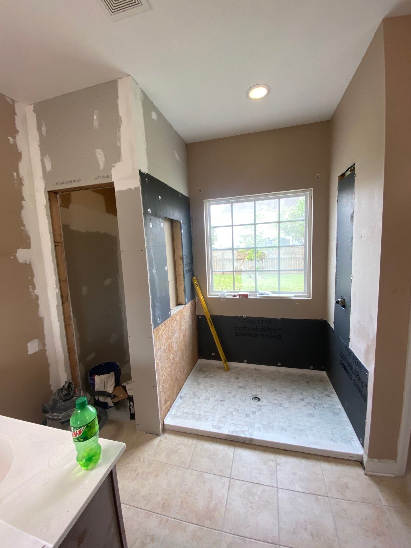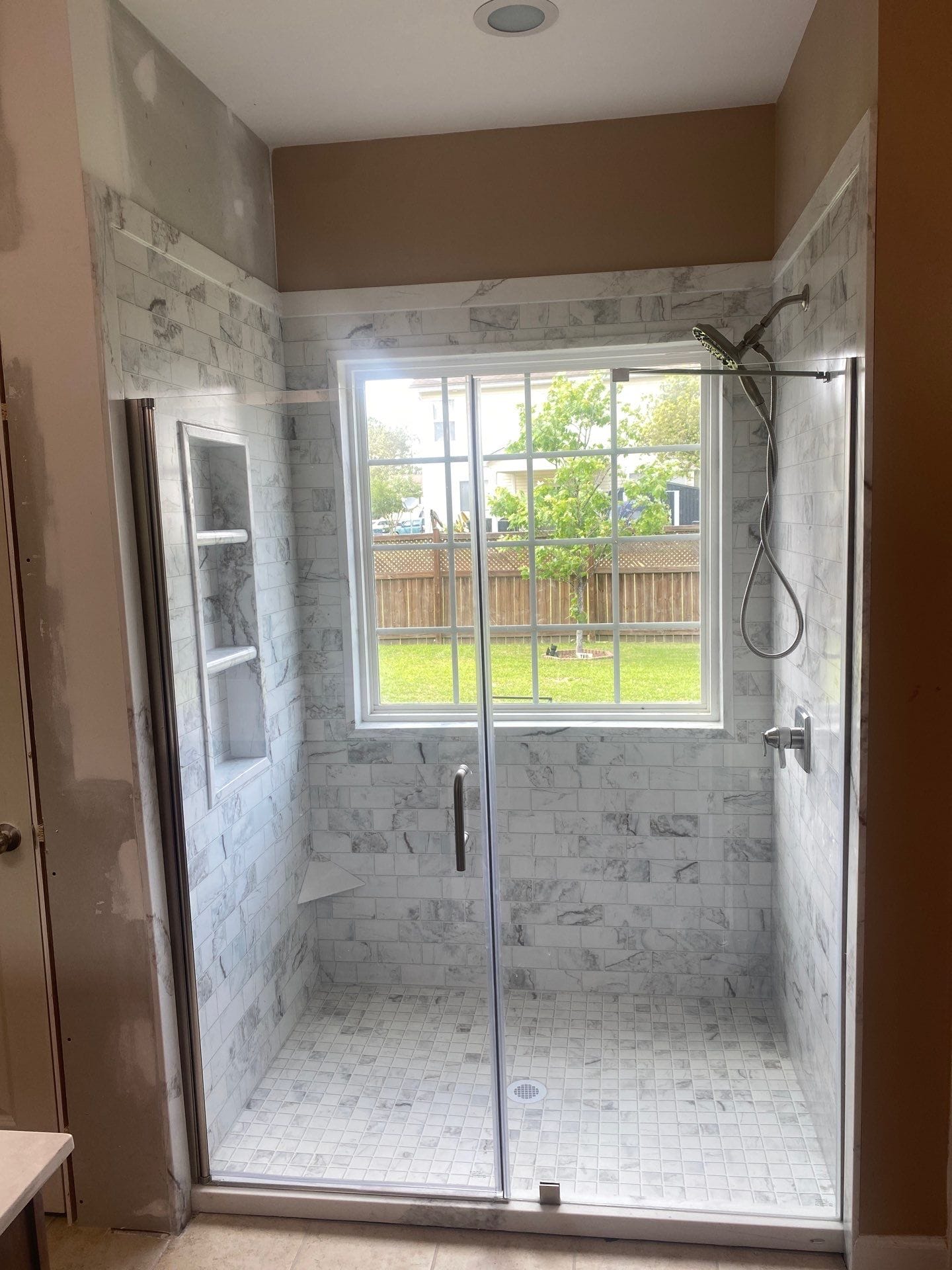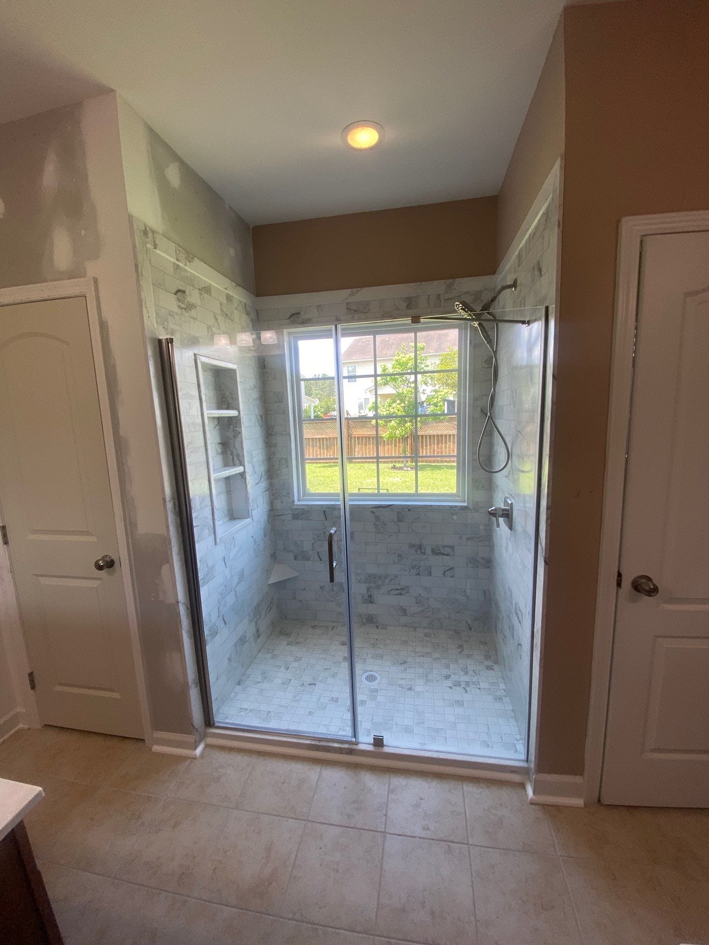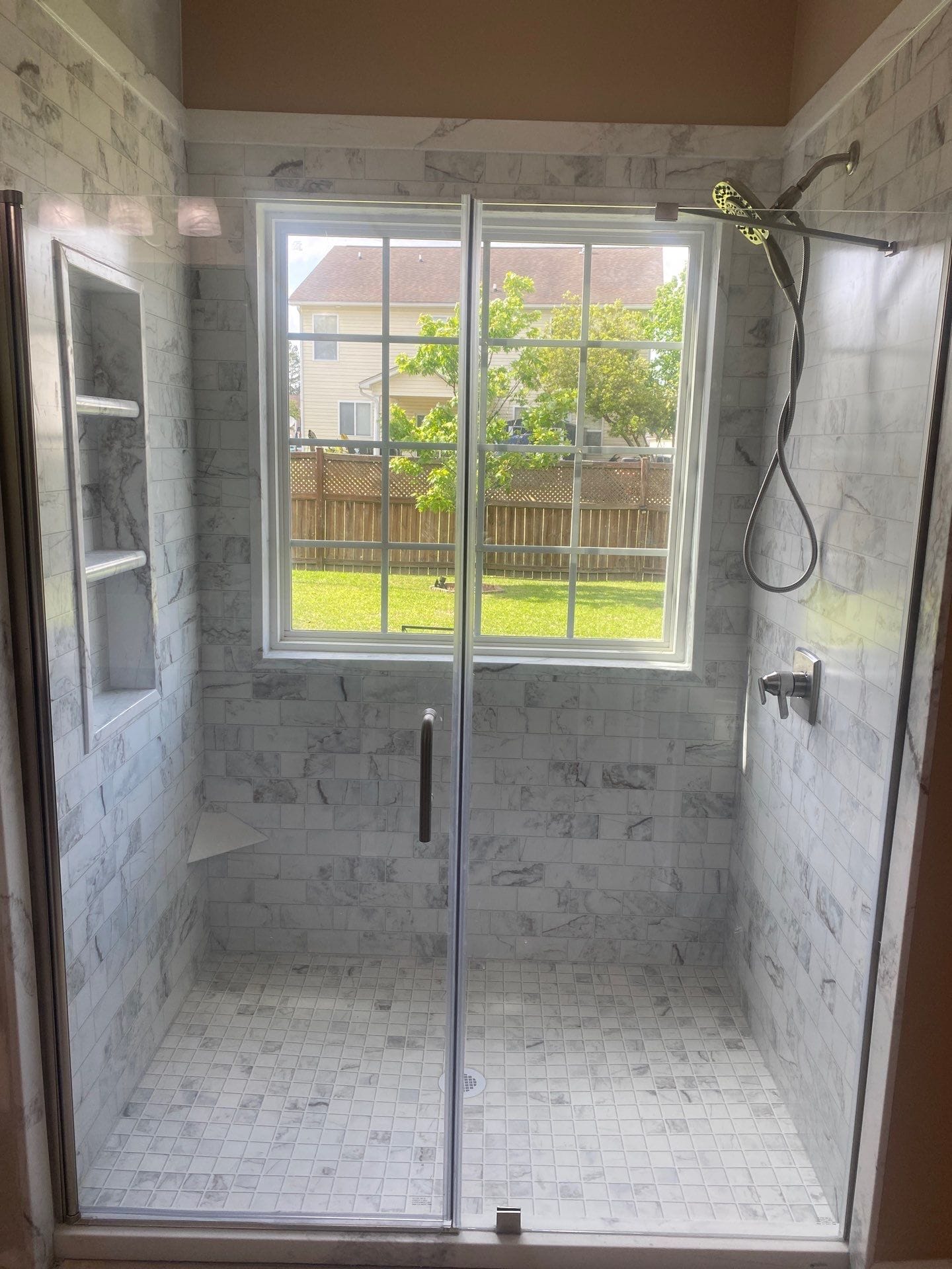 The installation process involved a complete demolition of the existing tub and surrounding materials down to the structural level, followed by preparation of the space for the new shower system. Protective measures were taken to preserve surrounding areas during construction. The new shower base, wall panels, plumbing fixtures, and enclosure were installed with precision, along with built-in shelving for storage. Structural reinforcement was added behind the walls to support safety features. The project timeline included scheduling within a few weeks of approval, with on-site installation completed in one to two days.