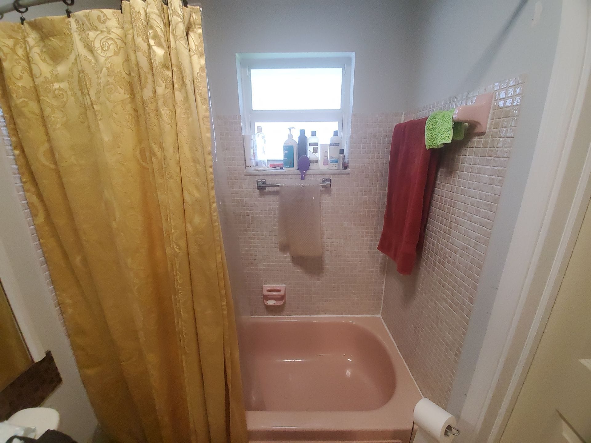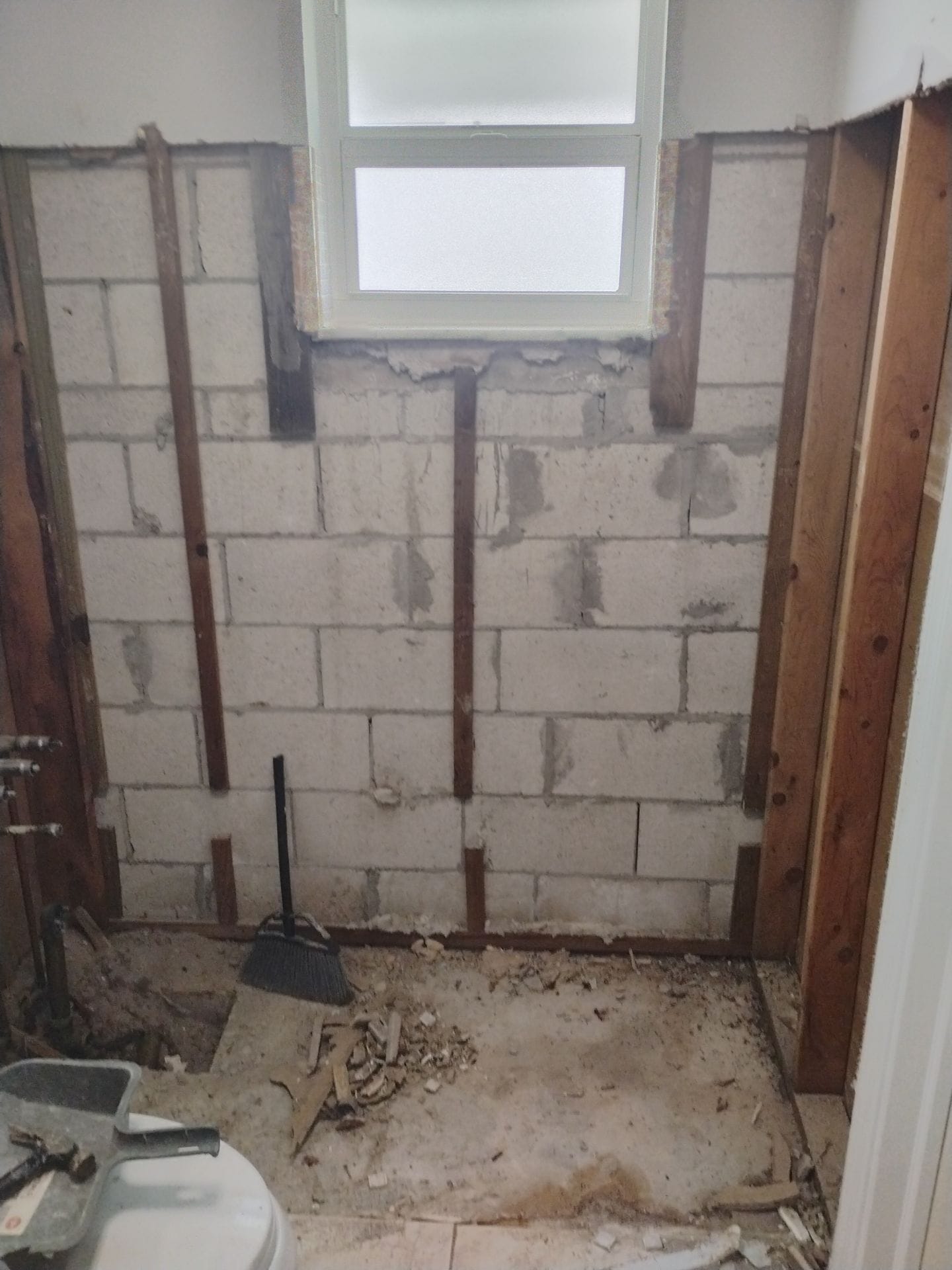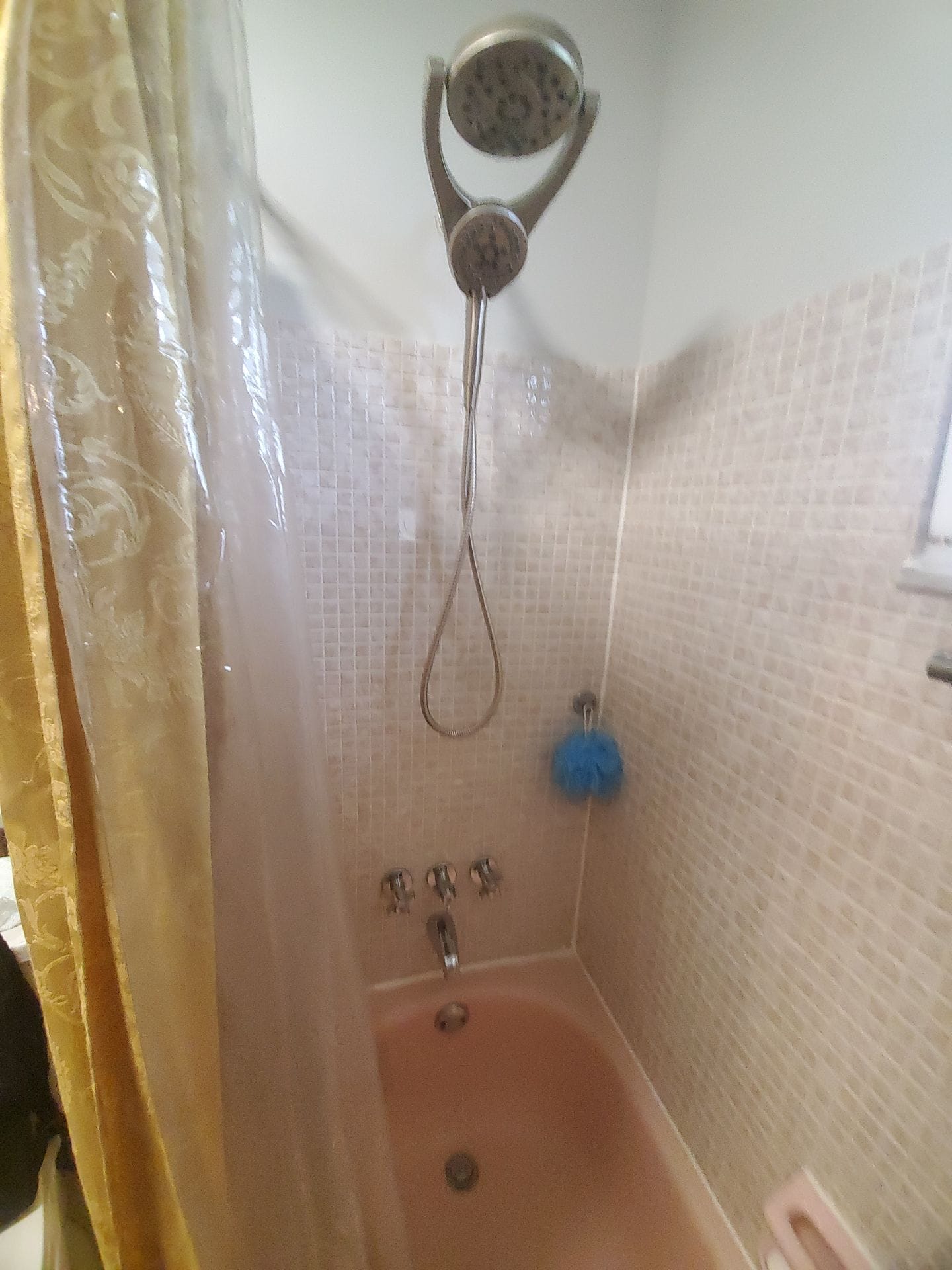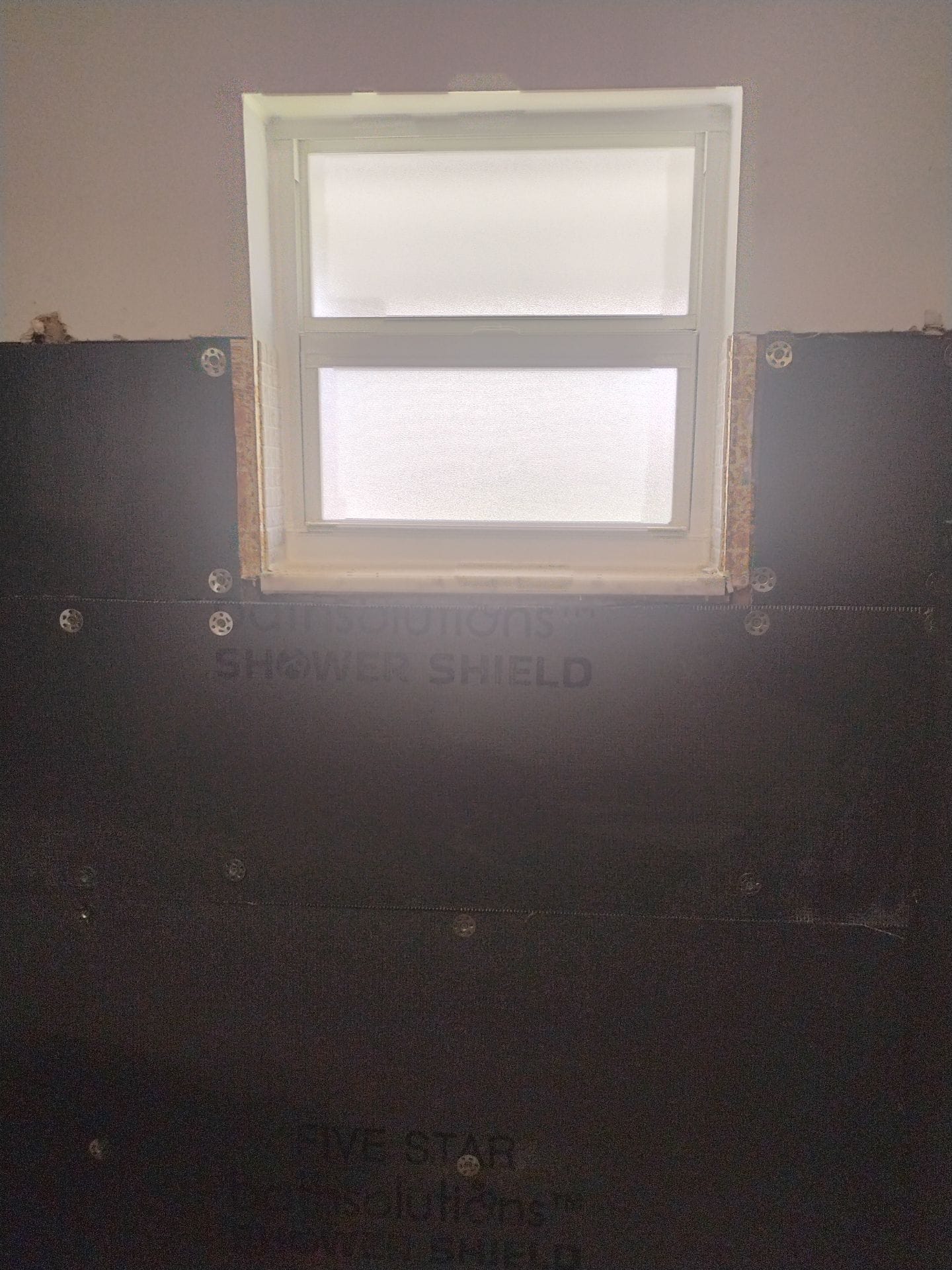 Installation included full demolition of the original tub, wall tile, and hardware, followed by inspection of framing and any existing subfloor concerns. A custom-fitted, low-threshold shower base was installed to replace the tub footprint. Composite wall panels were trimmed to fit tightly around the window, offering a clean finish with no exposed seams. The project was completed with a pressure-balanced Delta fixture system, and the customer’s vanity and toilet were protected during the remodel.