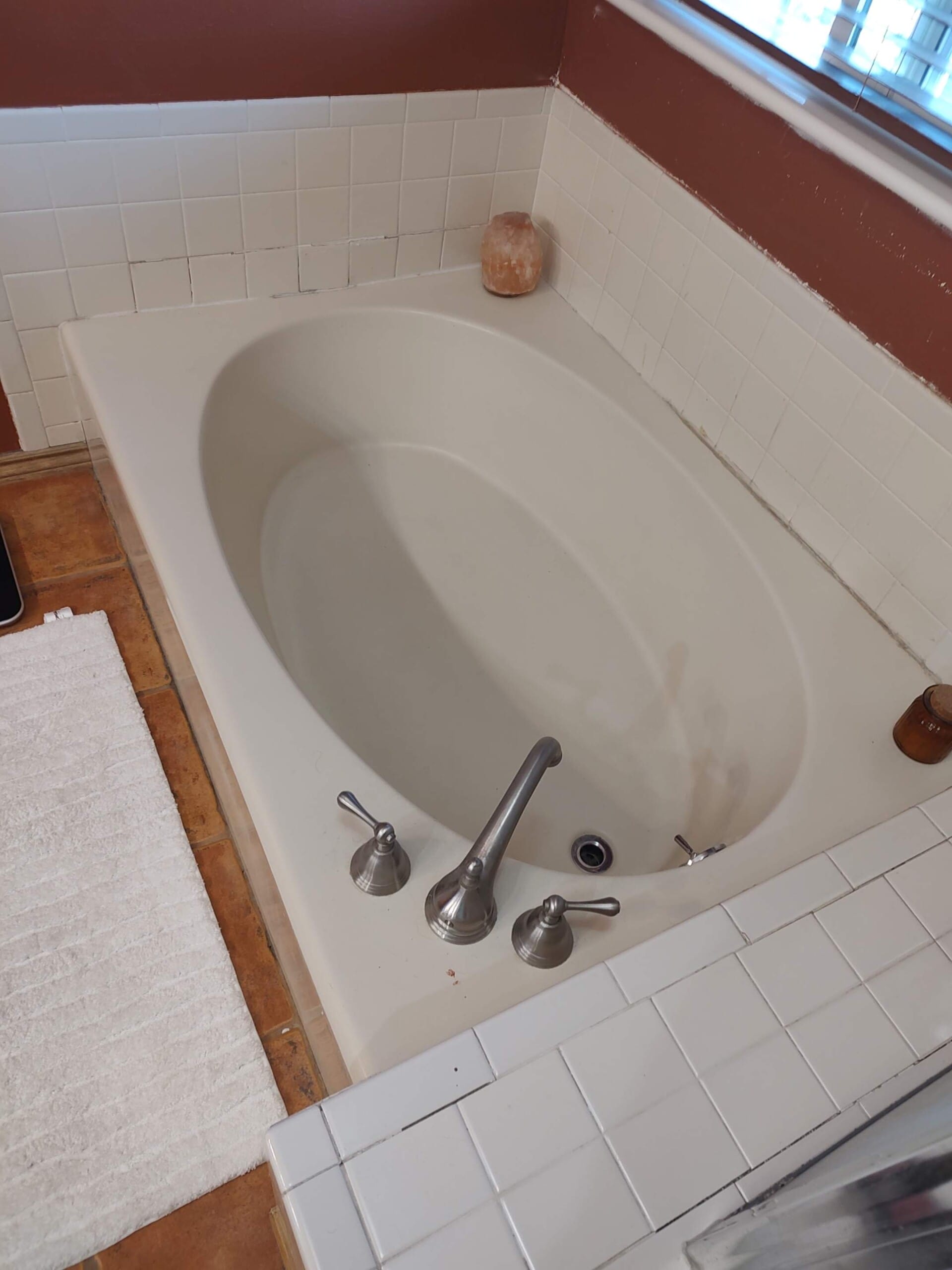 * Walk-in shower replacement with bench and curtain rod enclosure