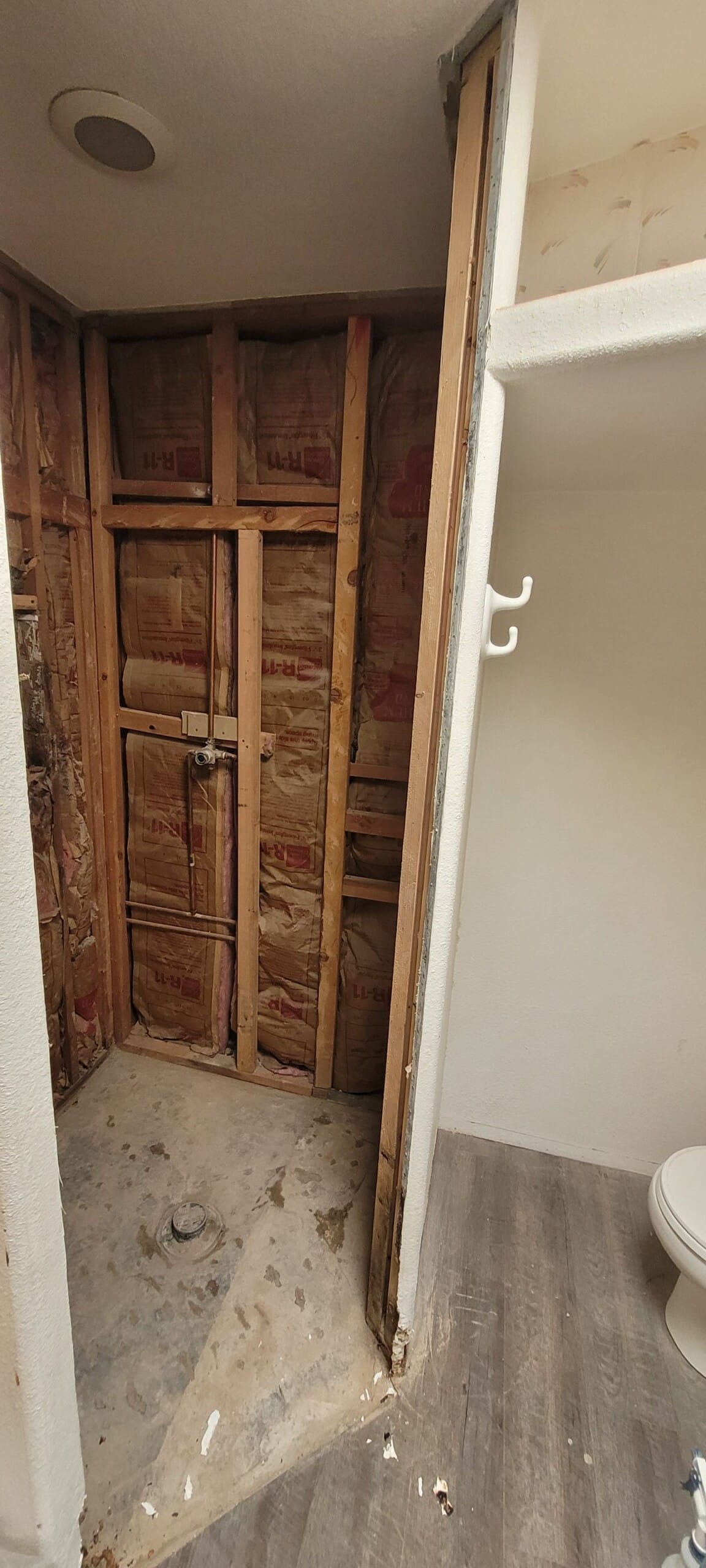 Installation followed the standard full-system process: demolition to the framing, full plumbing replacement, and reinstallation of the new system including backer, base, panels, shelves, and fixtures. Joey confirmed that any hidden water damage or framing repairs uncovered during demo would be covered without additional charge. The install was scheduled over two days, using factory-trained, background-checked employees only. Joey also confirmed multiple pricing options would be shared to support coordination with insurance adjusters.