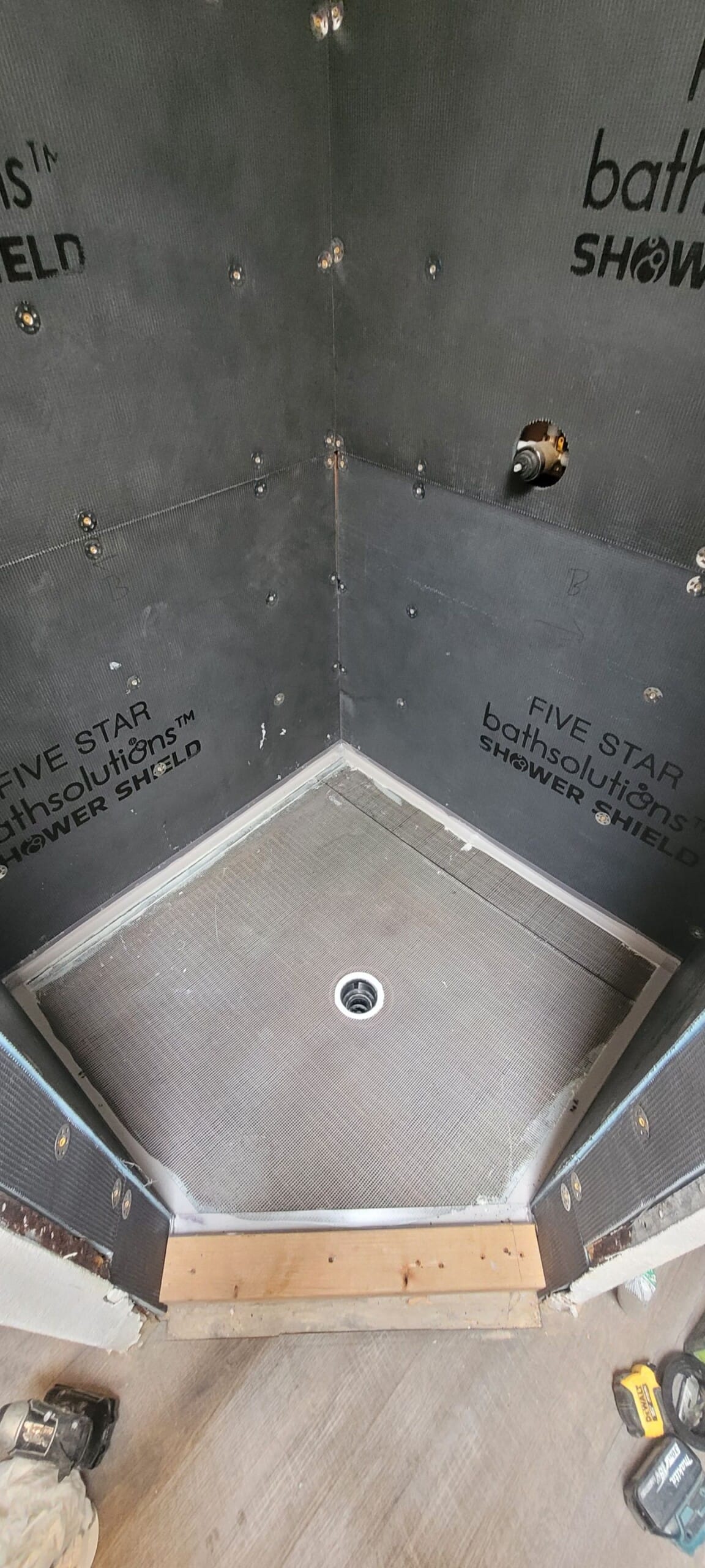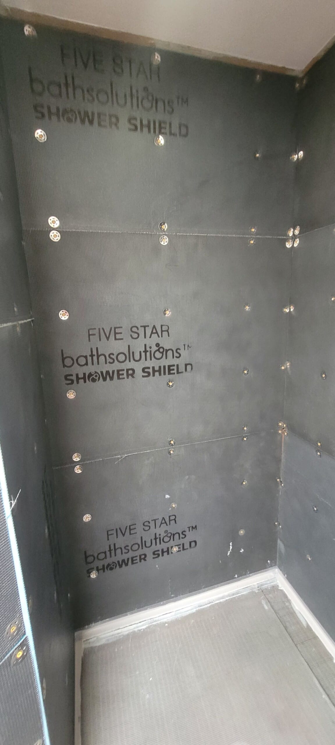 * Full replacement of failed tiled shower with low-threshold walk-in base