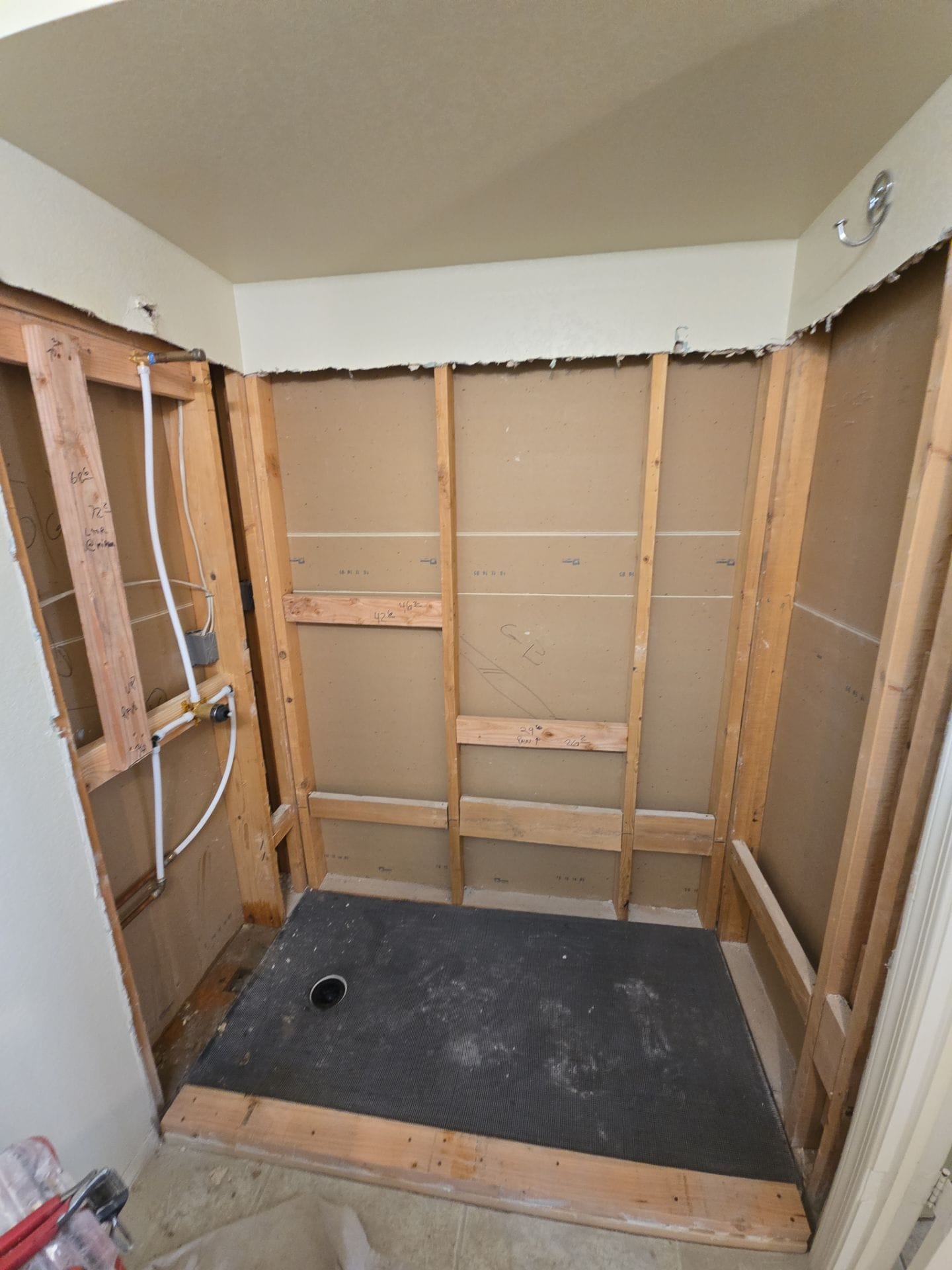 Installation was completed in two days by the company’s certified in-house team. The process began with full demolition to the studs, followed by plumbing adjustments, installation of the composite shower base, application of mold-resistant backer board, and secure mounting of panels, hardware, and glass doors. All work areas were kept clean throughout the project, and no subcontractors were used. The layout retained the original footprint while significantly improving usability and long-term performance.