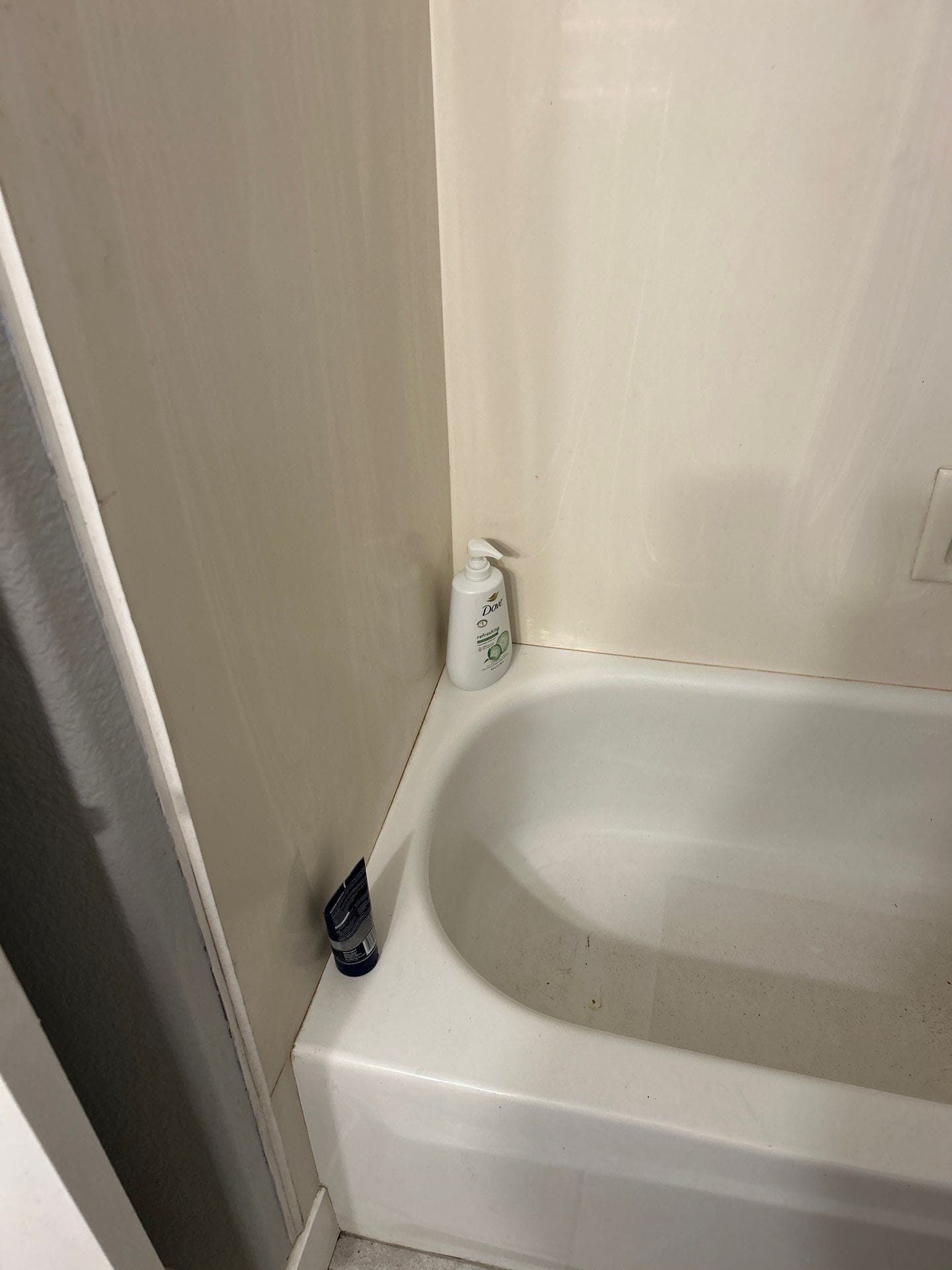 The installation process includes a complete tear-out of the existing unit and inspection of the studs, subfloor, and plumbing. All plumbing was replaced with commercial-grade Delta fixtures featuring pressure-balanced valves for consistent water temperature. The new shower base provides a solid, non-slip surface, and grab bars were custom-mounted into reinforced studs for security. A recessed wall niche was installed for convenient storage access, differing from the originally planned corner shelves. The project was completed by a two-person team specializing exclusively in bathroom installations, with a one-day completion timeline. Transitions from the existing floor to the new shower pan were finished with color-matched trim for a clean, polished appearance.