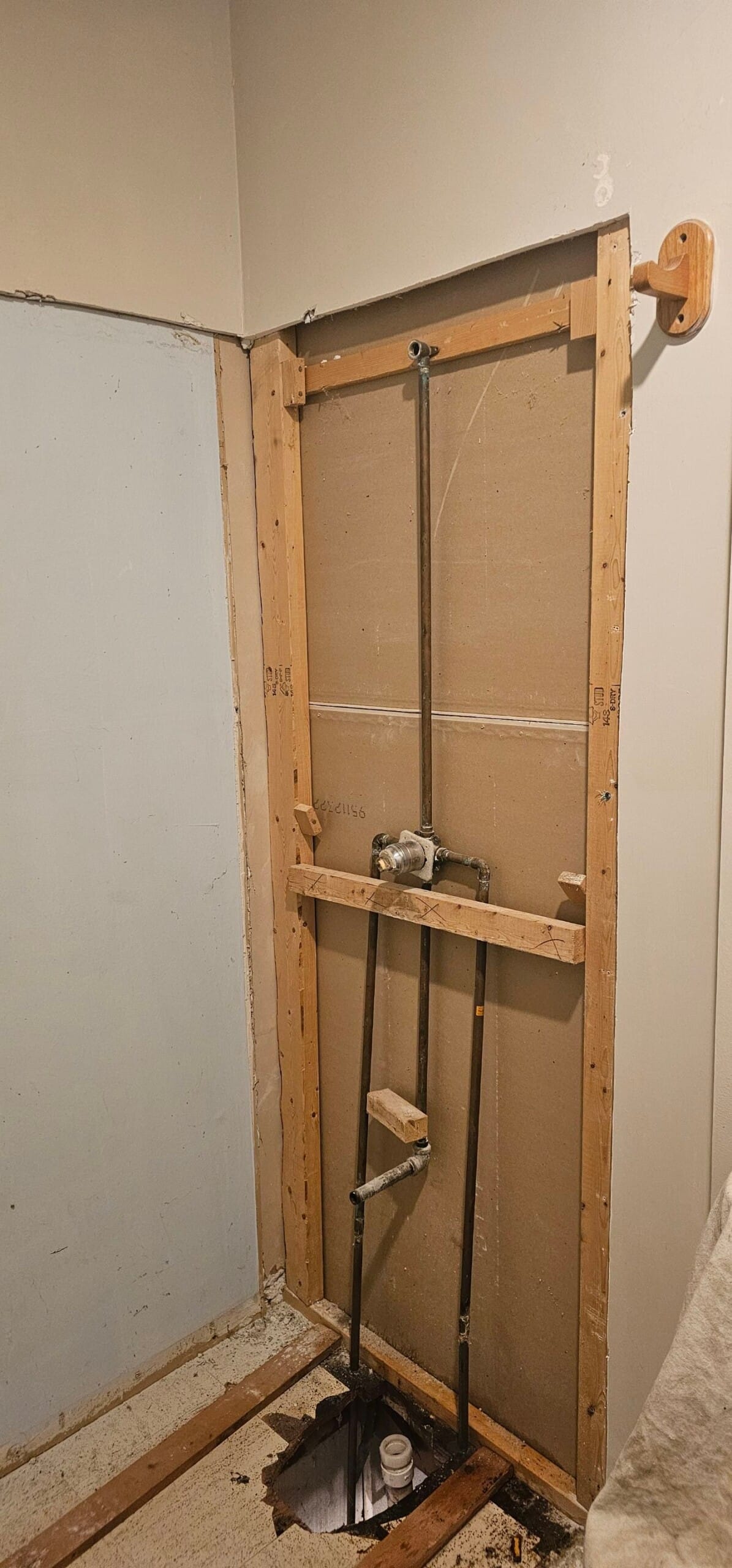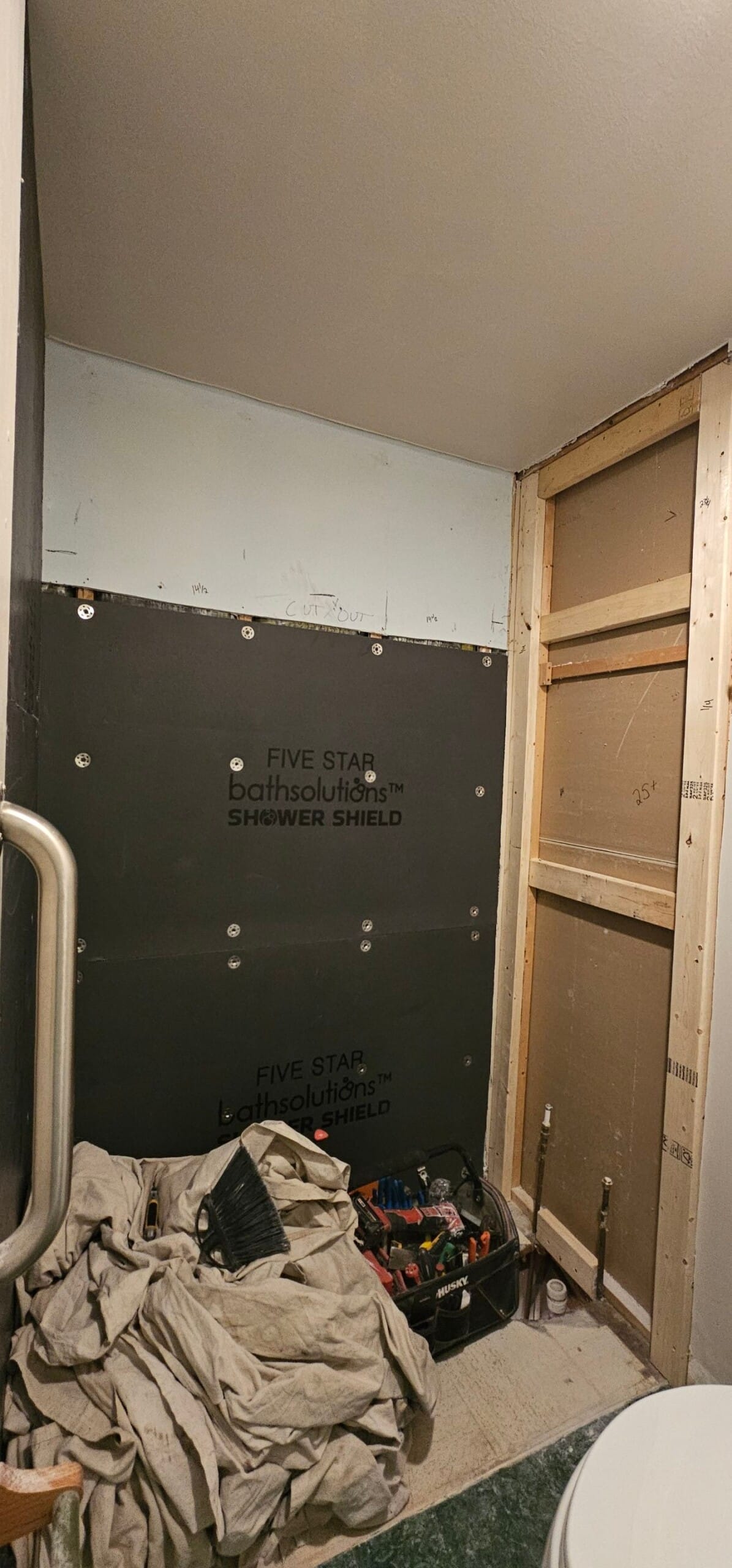 The installation process included full removal of the existing bathtub and surrounding materials down to the studs and subfloor, followed by inspection for moisture or structural issues. Any necessary repairs were completed before installing a custom low-threshold shower base to allow for easier step-in access. Plumbing components were updated to ensure reliable performance. Wall panels, fixtures, shelving, grab bars, and enclosure were installed with proper reinforcement and precise placement. The completed layout significantly improved usable space compared to the original tub configuration. Installation was completed within a few days, followed by final cleanup and a walkthrough to confirm quality and satisfaction.