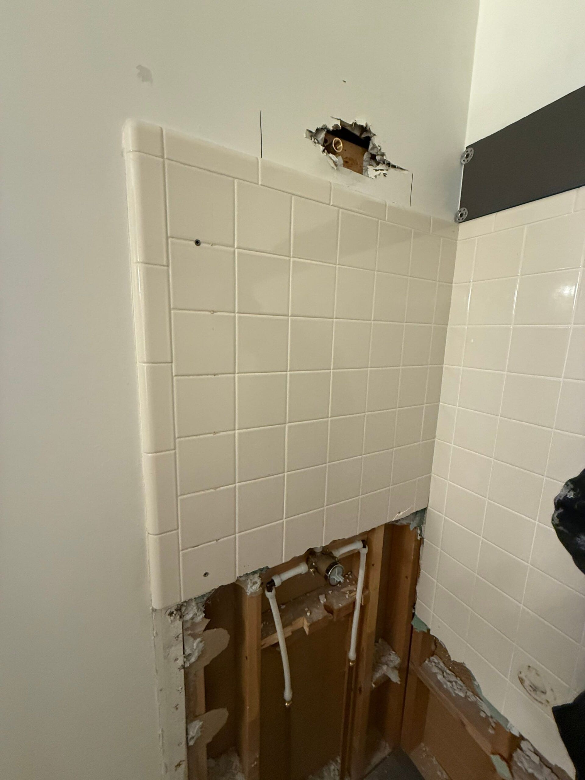 Installation followed a structured and efficient process beginning with full removal of the existing tub and tiled surround down to the studs. Any underlying moisture issues were addressed prior to rebuilding. The new shower system was installed with updated plumbing fixtures, wall panels, reinforced base, seating, shelving, and grab bar, all sealed using antimicrobial marine grade silicone. The project moved through design consultation, material selection, project manager measurement verification, and scheduled installation. From project approval to installation typically spans six to eight weeks, with on-site installation completed in one to two days.