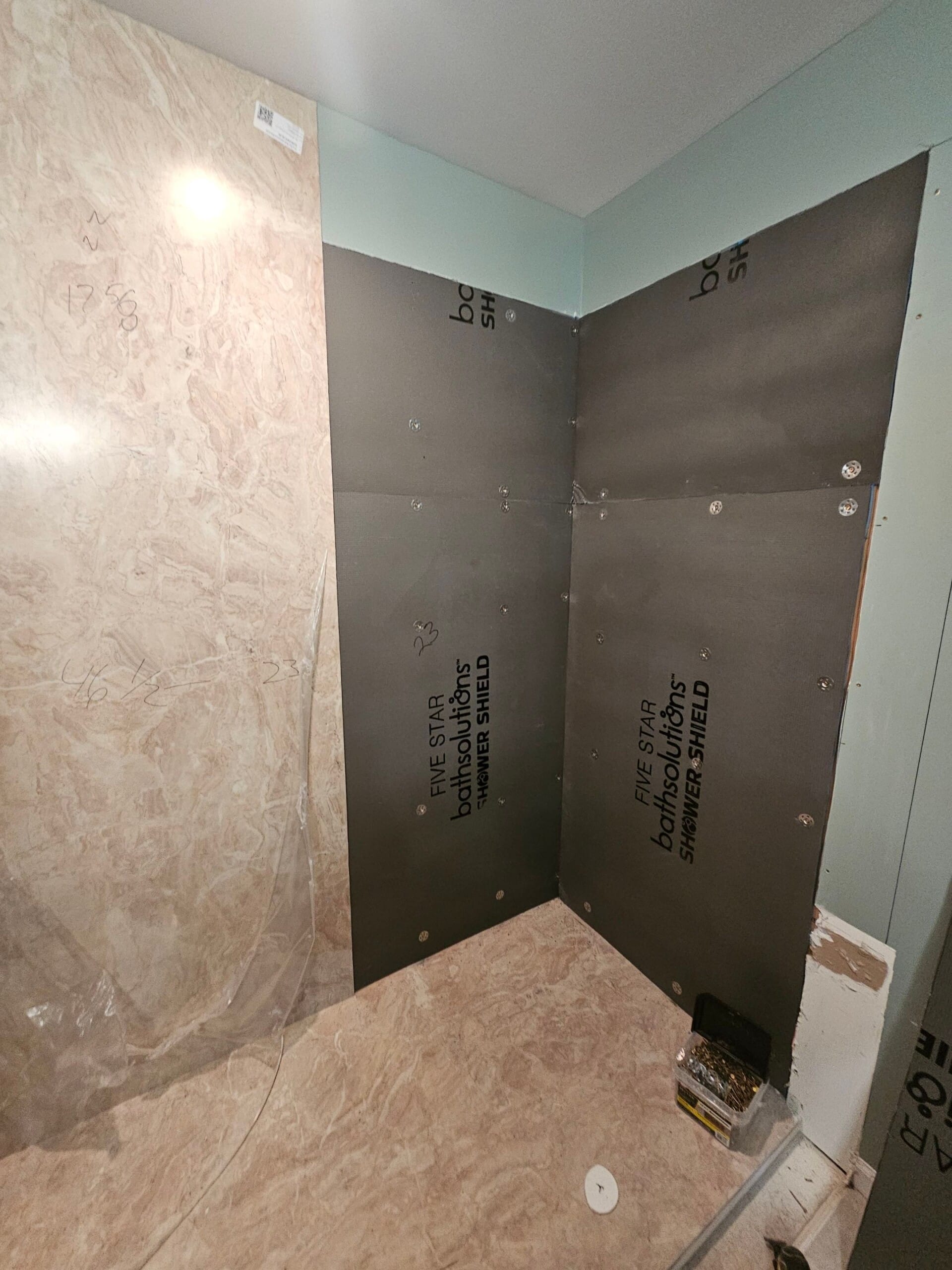Installation was completed within a standard two-day window. The floor was protected prior to demolition, and all materials were hauled away. A licensed, in-house crew performed the full remodel without subcontracting. The project included moisture control, demolition, plumbing, composite wall installation, and fixture mounting.