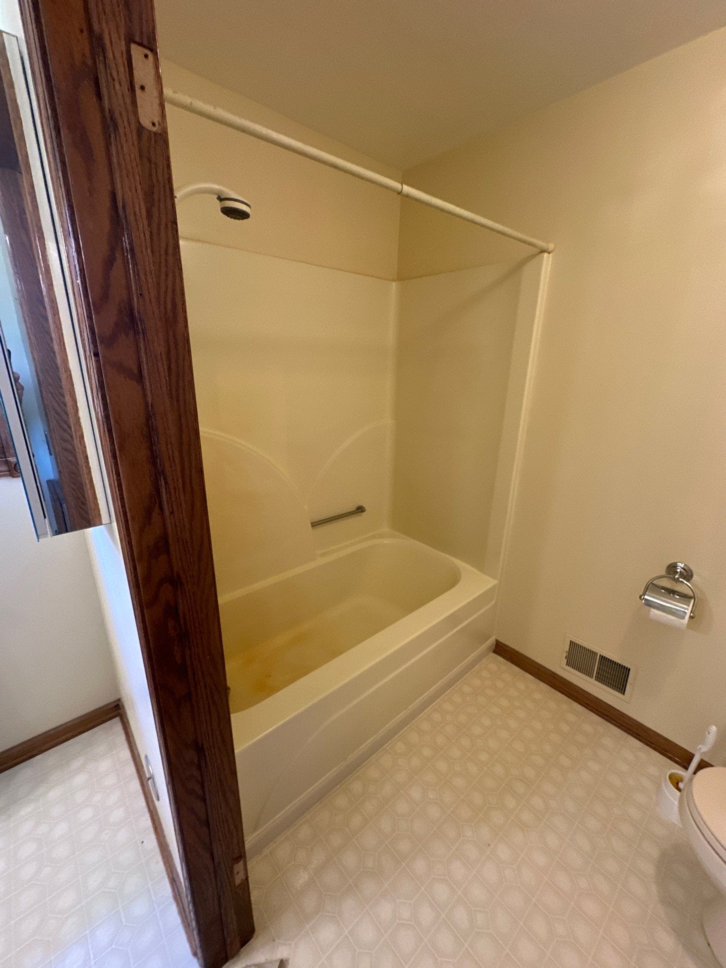 The installation process involved a complete demolition of the existing tub and surround down to the studs and subfloor, followed by inspection for any underlying mold or water damage. Necessary repairs were completed before installing a reinforced, low-threshold shower base with a slip-resistant surface. Updated plumbing ensured consistent water pressure and temperature control, replacing outdated components seen in the original setup. Wall panels, fixtures, shelving, grab bars, and seating were installed with proper structural backing and precise placement. The transformation expanded the usable shower space significantly compared to the original layout. Installation was completed within a two-day timeframe, with full site protection, cleanup, and a final walkthrough to confirm satisfaction.