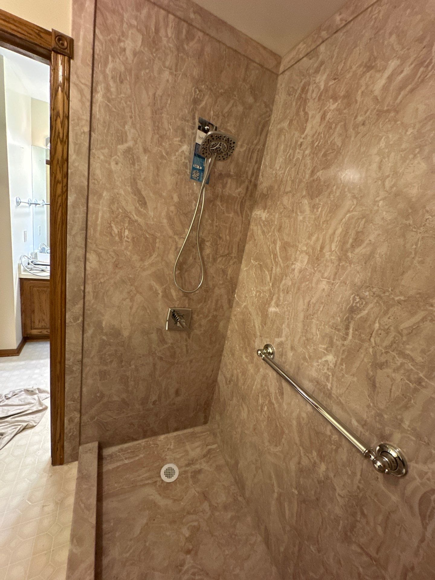 * Walk-in shower conversion replacing outdated Jacuzzi tub