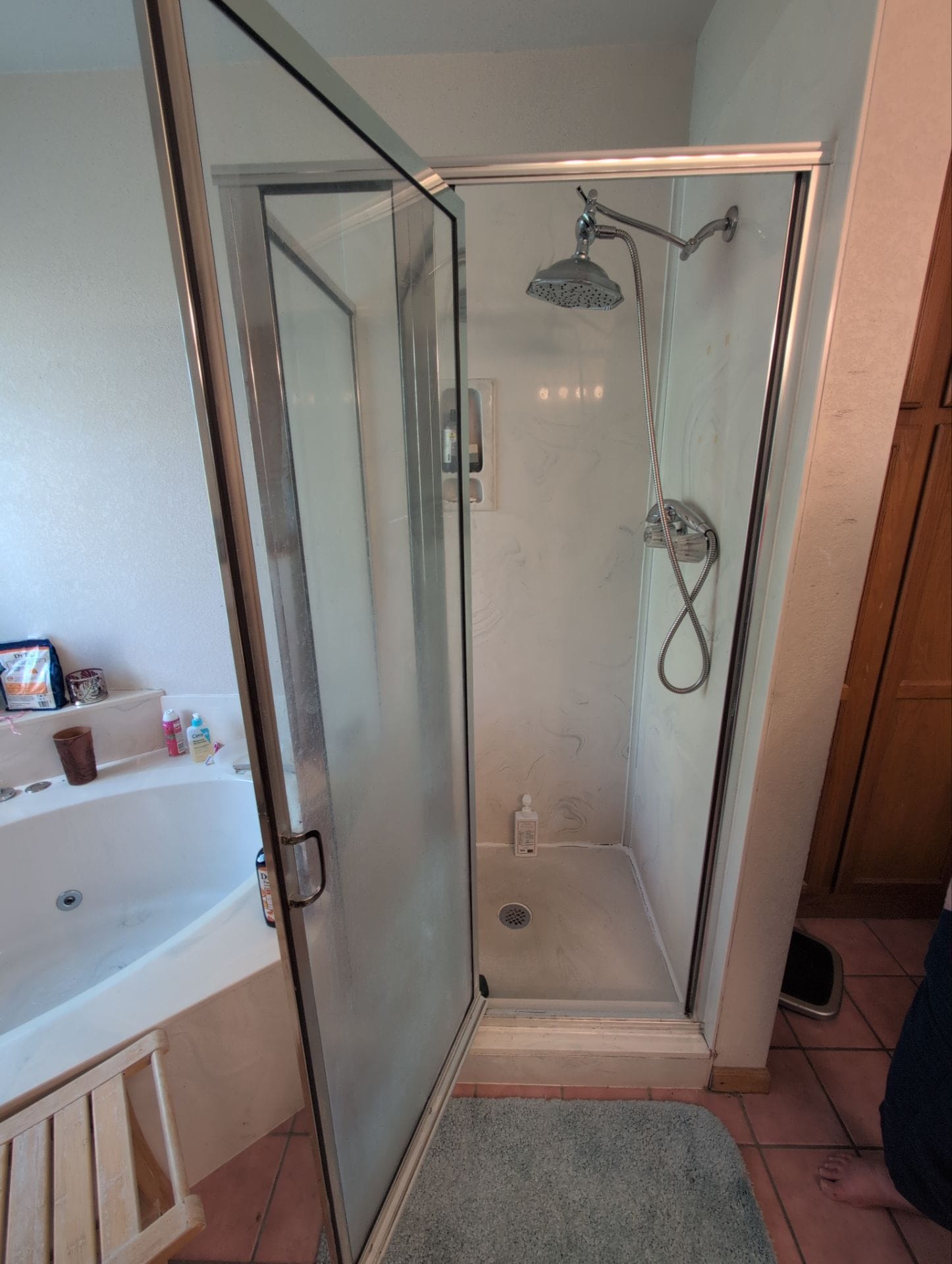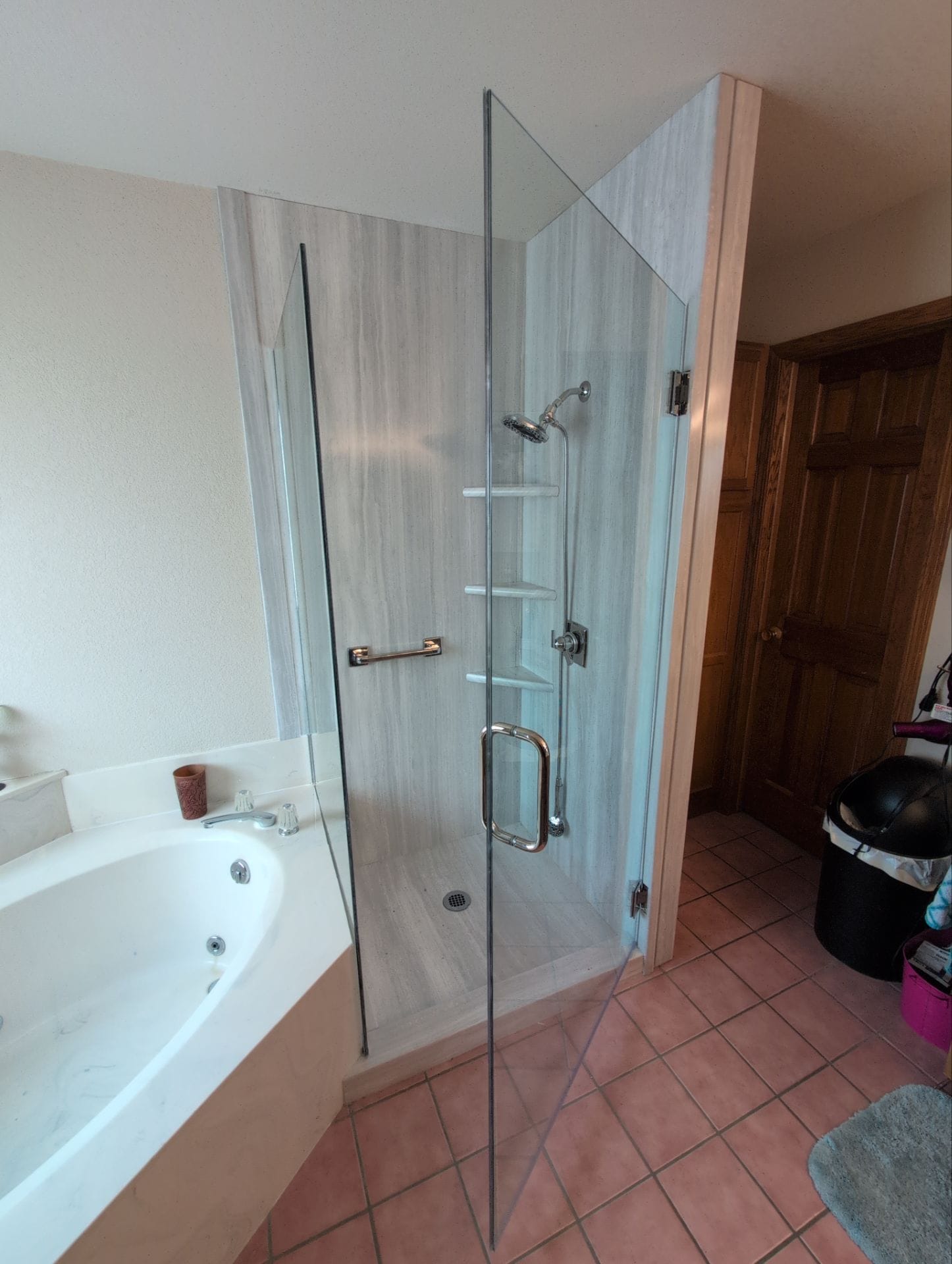 * Walk in shower conversion replacing framed glass enclosure