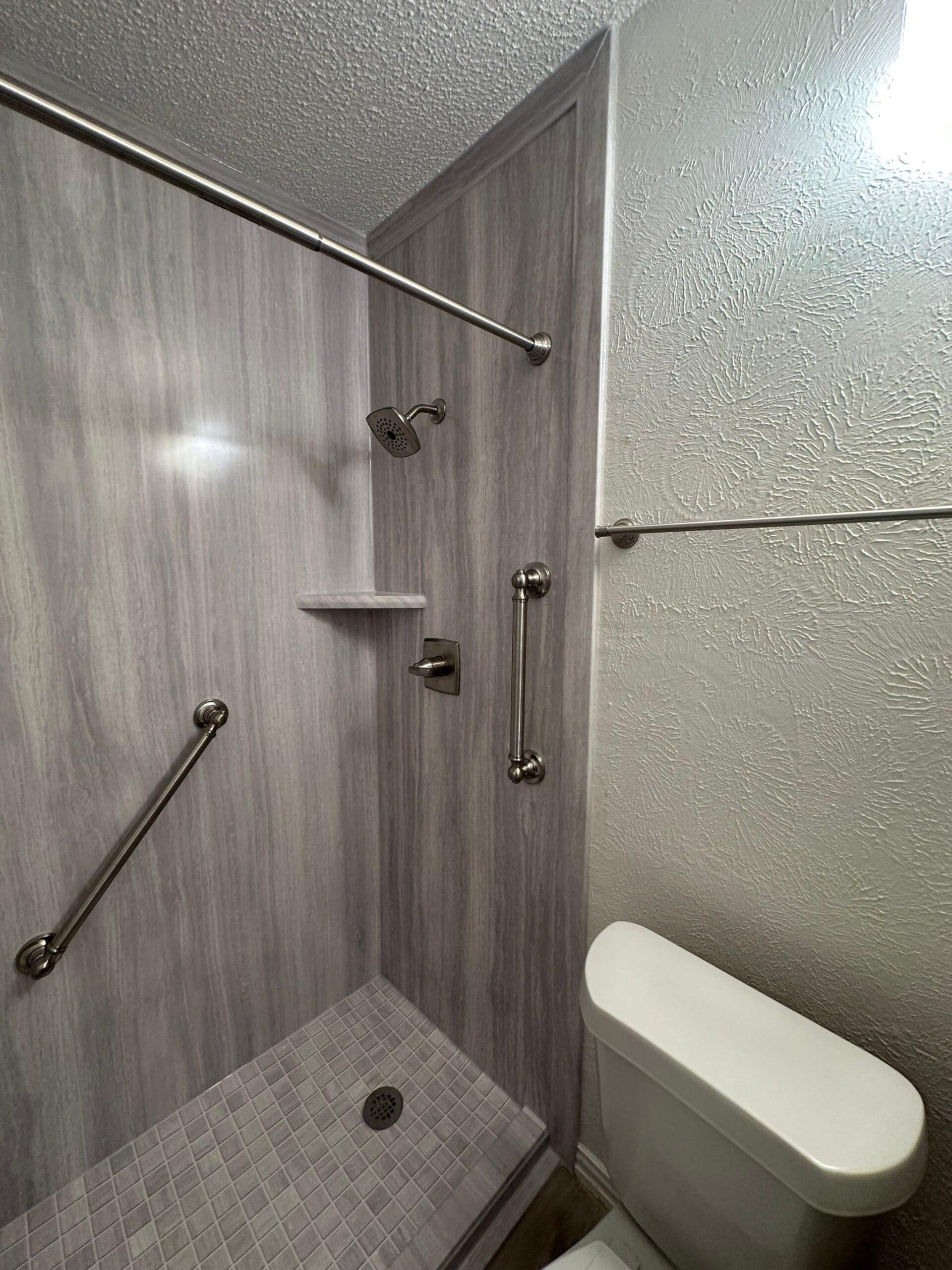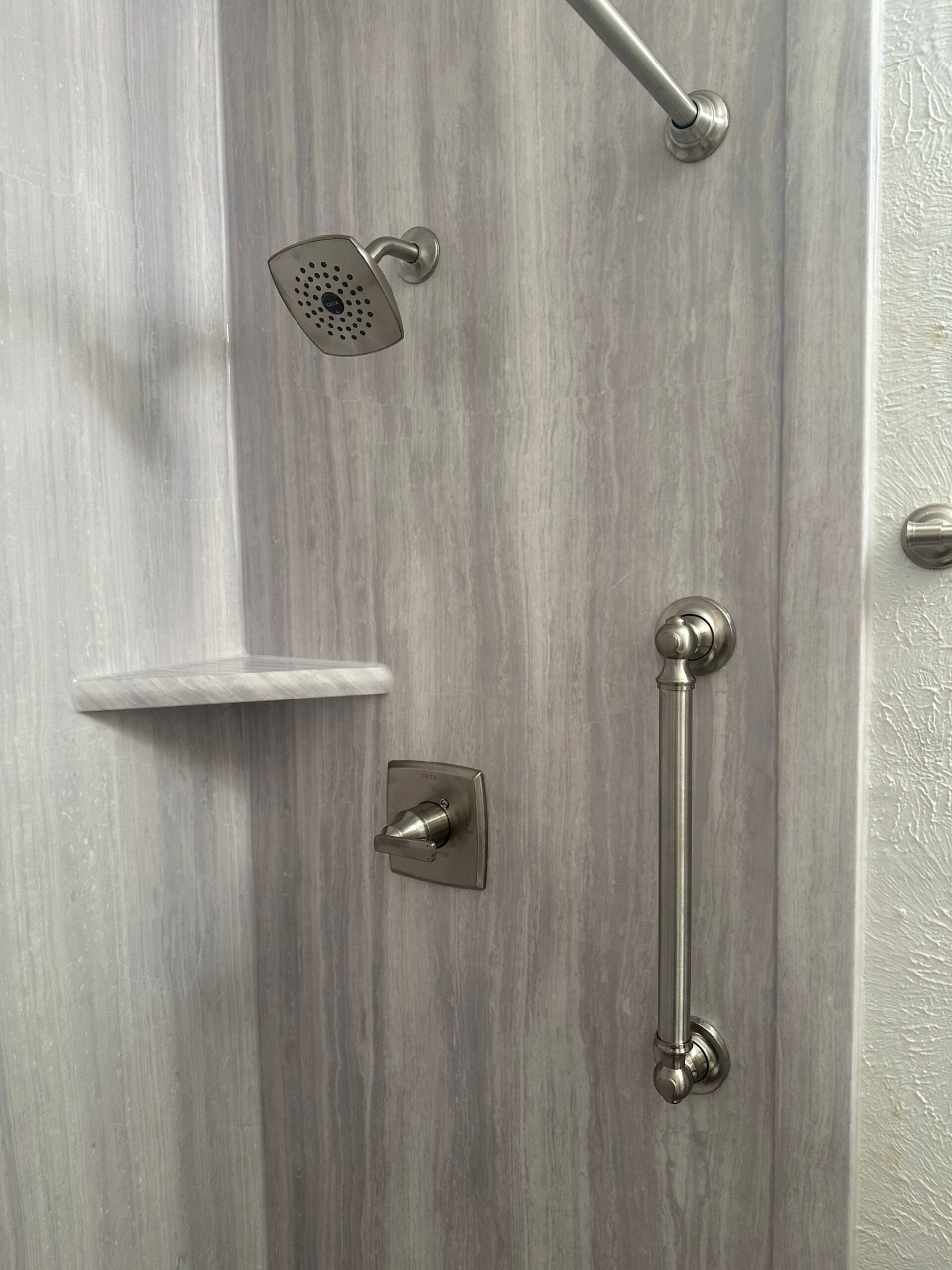 Installation was executed by a team of licensed, in-house professionals who managed the entire process without the use of subcontractors. The project involved the complete removal of the previous fixtures and the installation of a proprietary waterproof backer board to ensure long-term structural protection. The crew efficiently installed the non-slip mosaic shower floor and the new wall panels, ensuring a precise fit and a clean worksite upon completion.