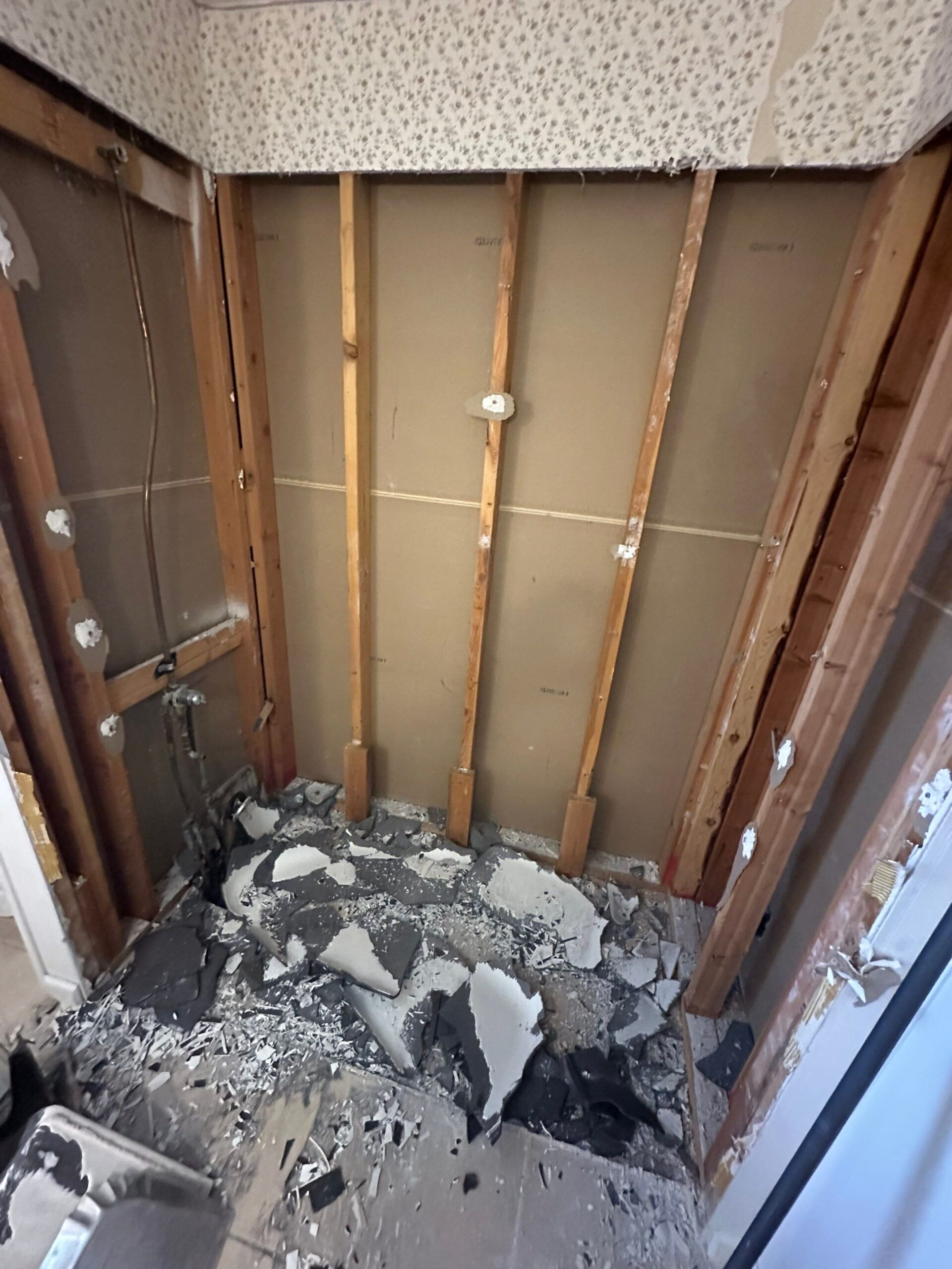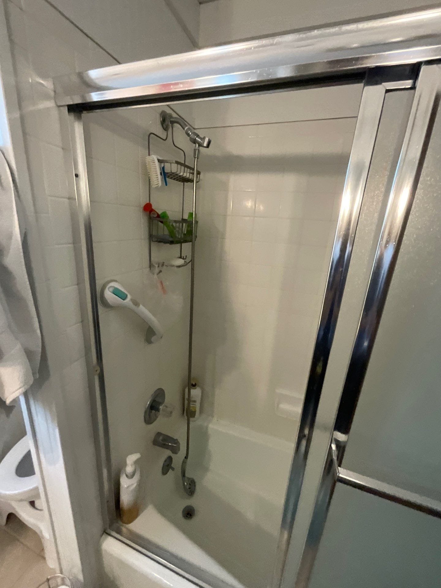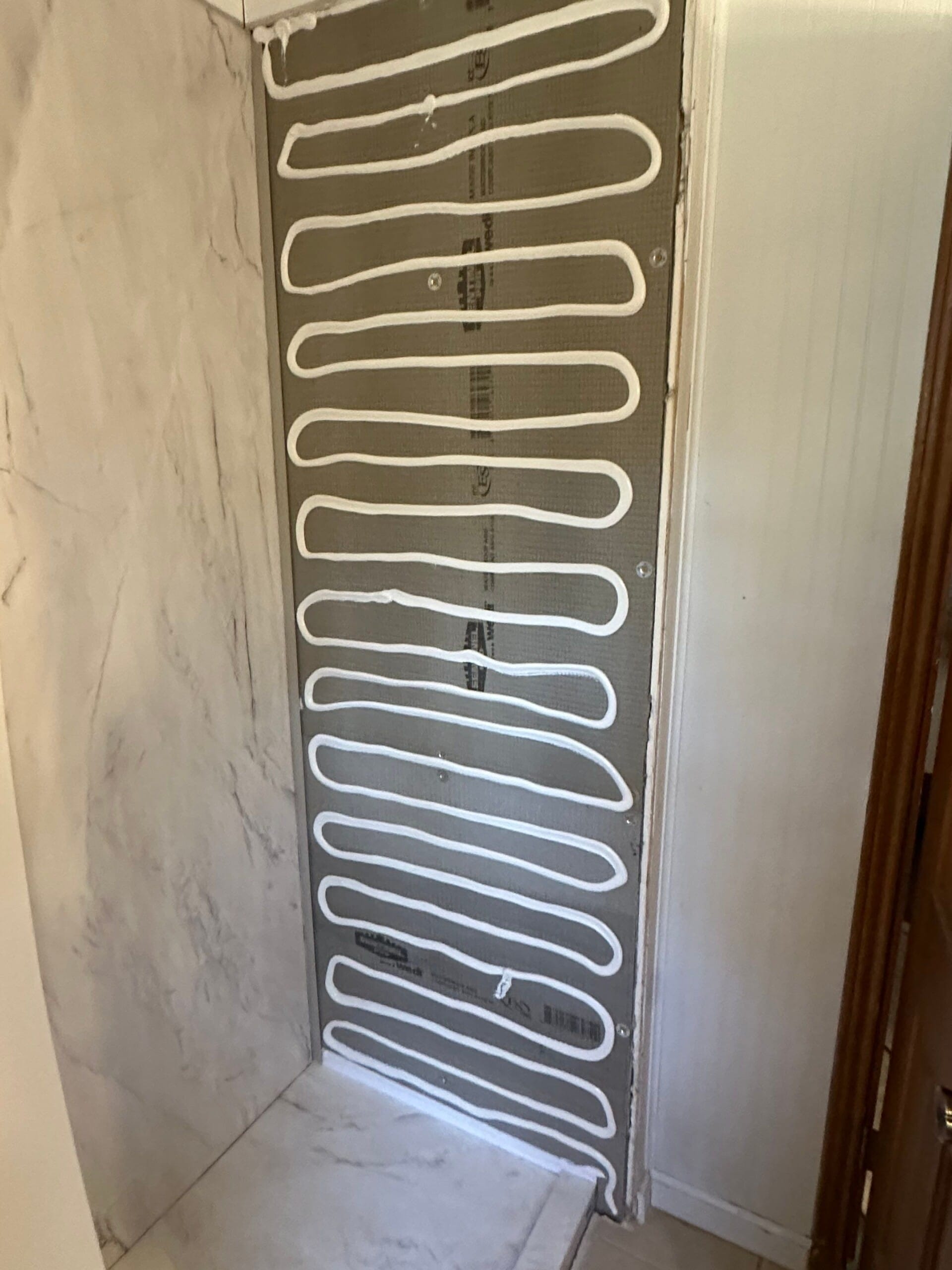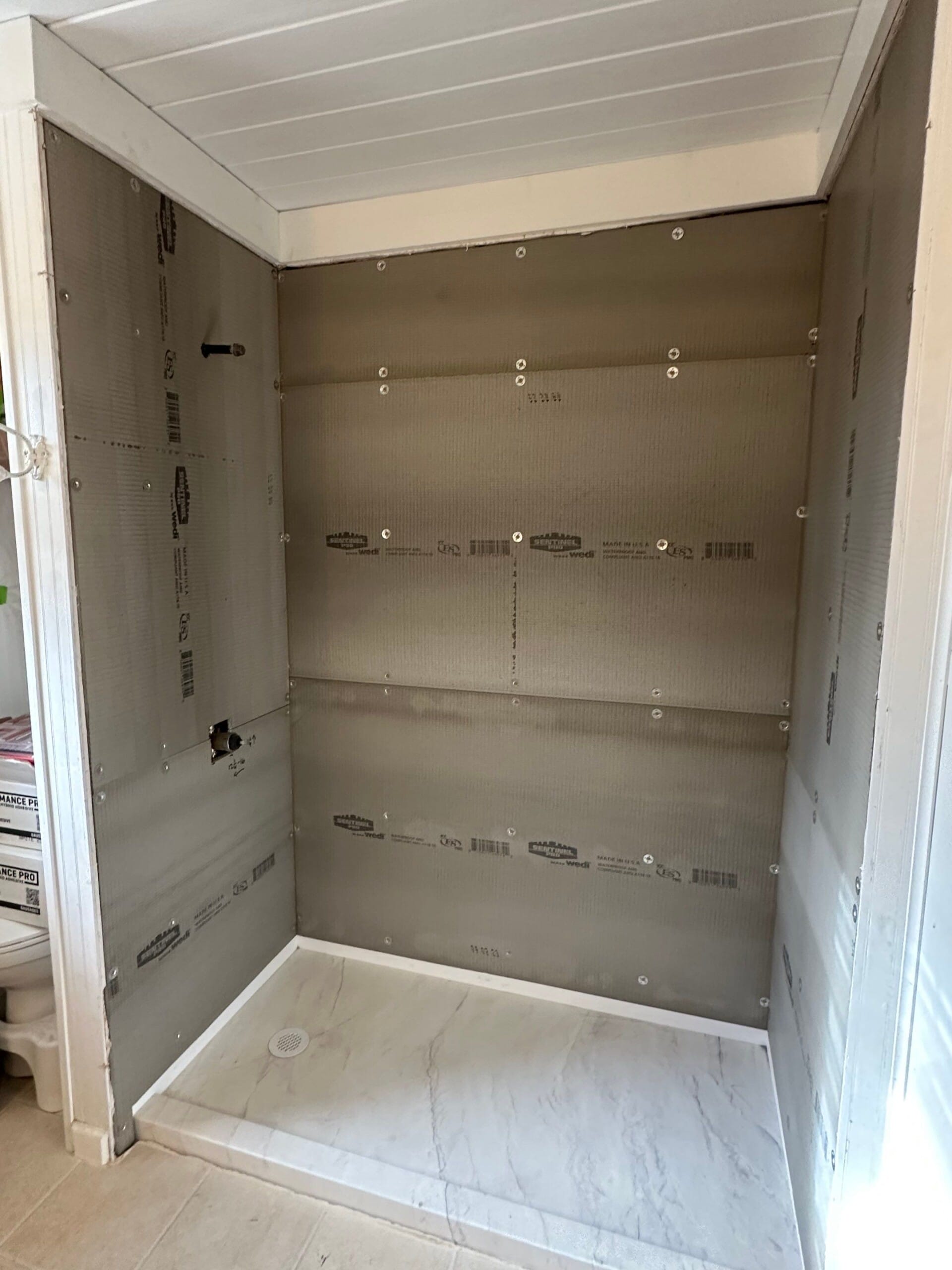 The installation process included full demolition, replacement of compromised materials, and upgrades to plumbing components including water lines, valve, and drain. The newly installed shower reflects an expanded and more open layout achieved by removing the tub, along with wall panels extending higher than the original surround for improved coverage. The slip-resistant base aligns with safety standards while maintaining a clean appearance. The enclosure is completed with a frameless barn-style sliding glass door, consistent with the customer’s selection, and all seams are sealed using advanced waterproofing methods to ensure long-term performance. The project timeline follows a structured schedule with efficient installation and maintained jobsite cleanliness.