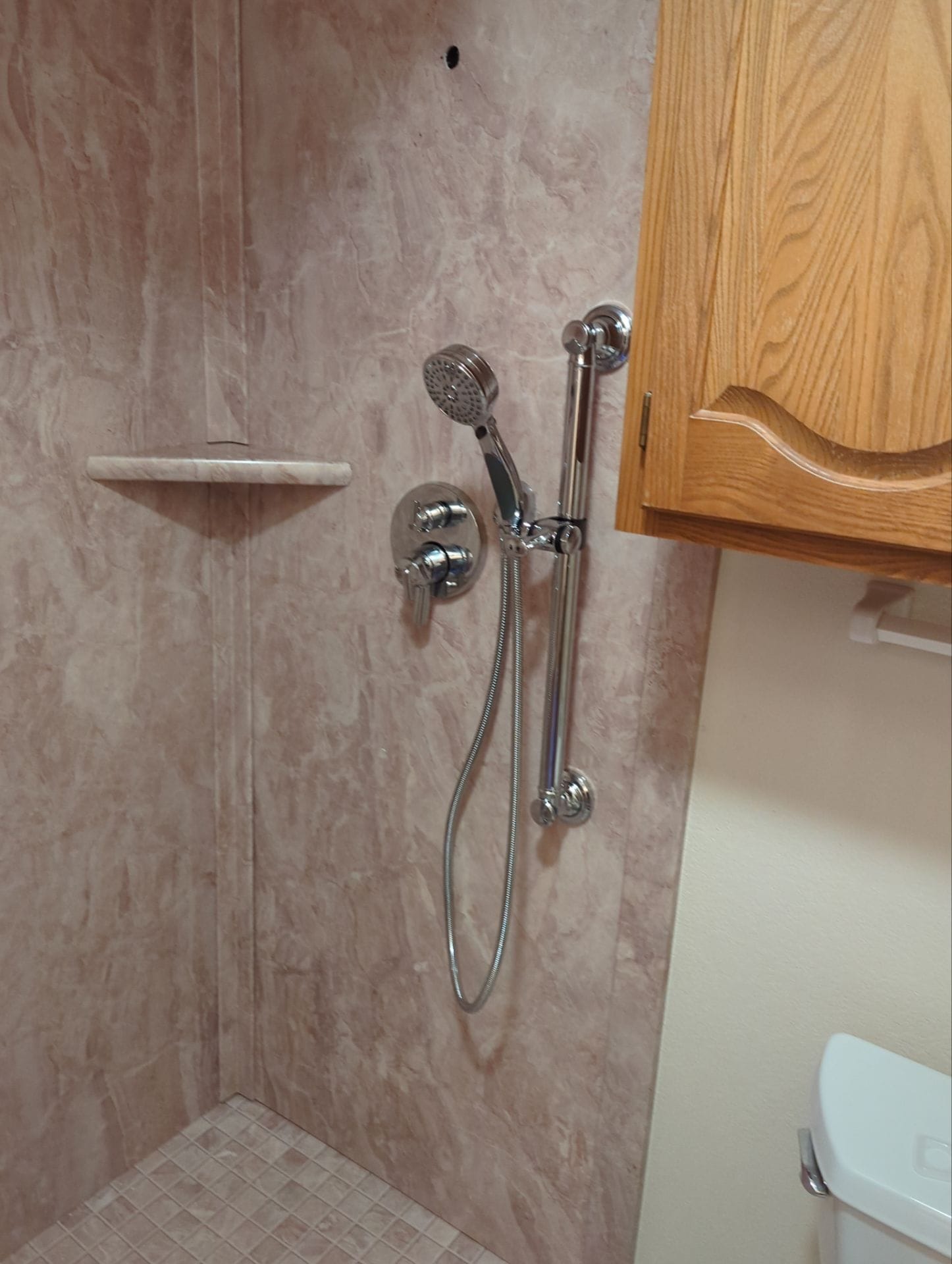 * Walk-in shower replacement with Smart Choice composite PVC system