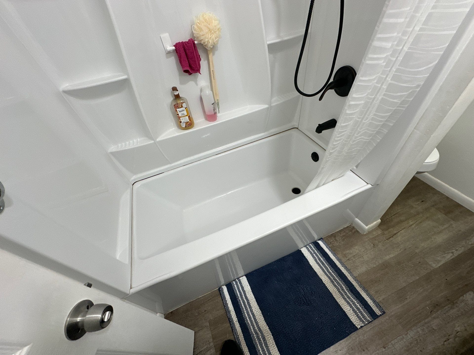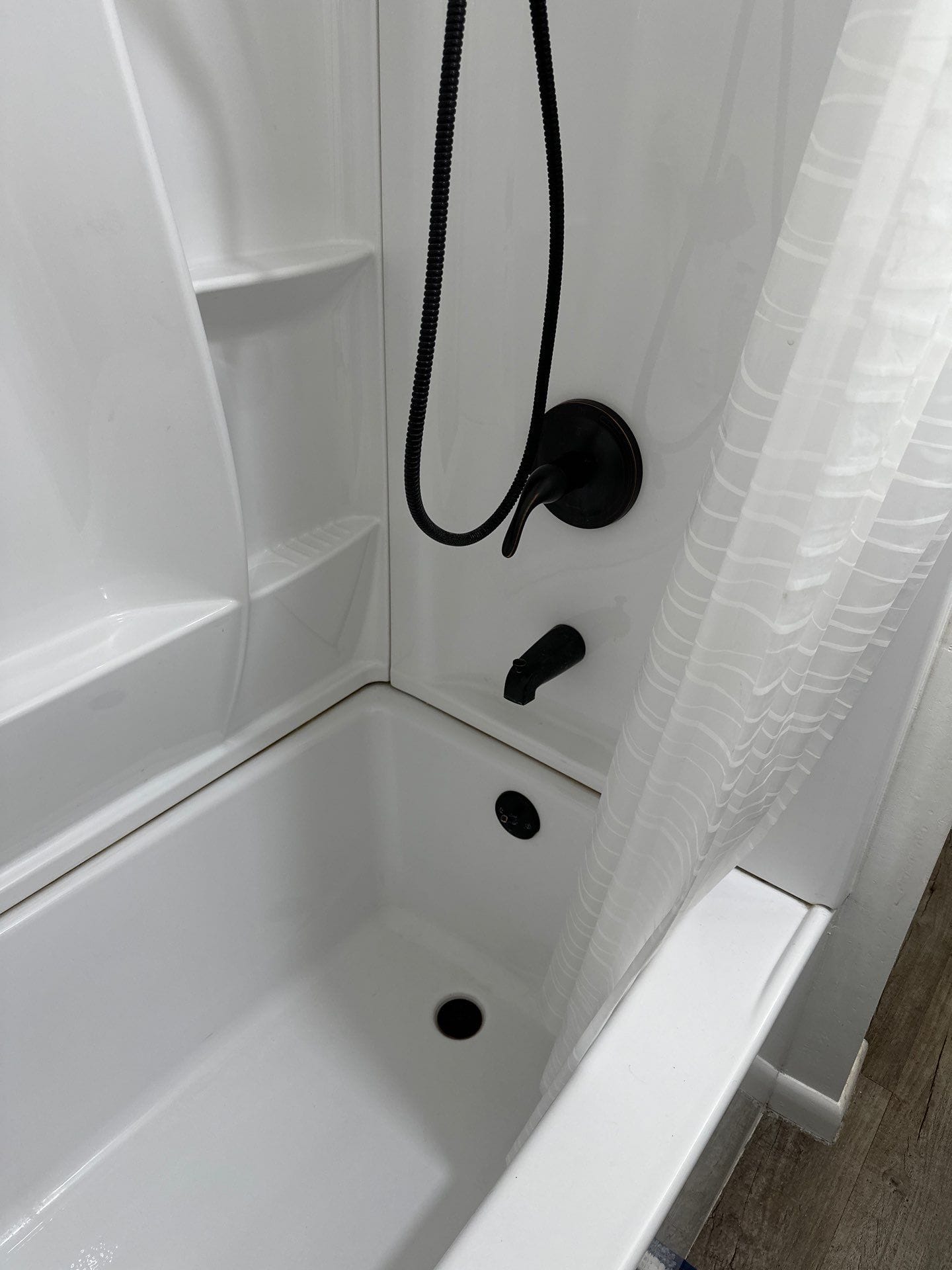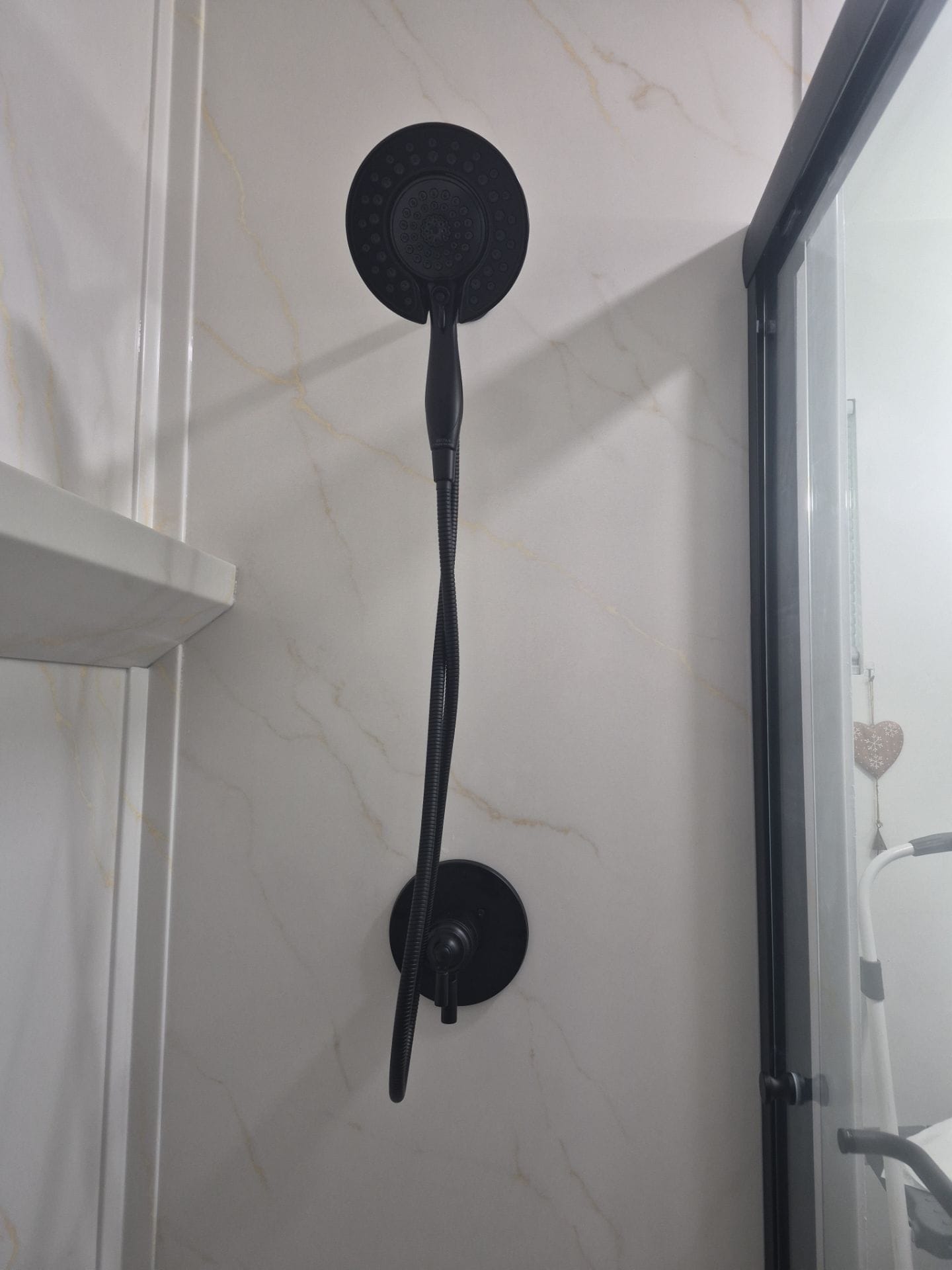 The Representative presented multiple material options, including grout-free wall systems designed for durability, low maintenance, and long-term performance. Final installation reflects a composite-style wall system with a smooth, marble-inspired finish and subtle veining, paired with matte black fixtures for a modern contrast. The system is antimicrobial, fully waterproof, and engineered without grout lines or caulking to simplify cleaning. The company’s bathroom-focused approach, strong customer satisfaction reputation, and emphasis on safety and product reliability reinforced trust throughout the decision process.