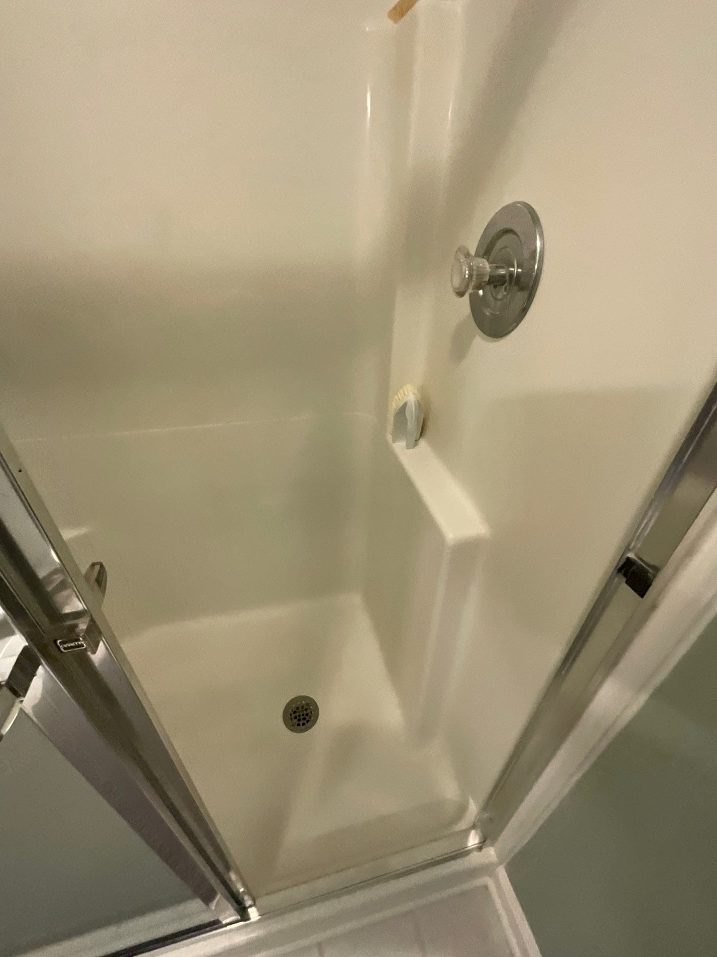* 48x32 solid shower pan with original drain position retained