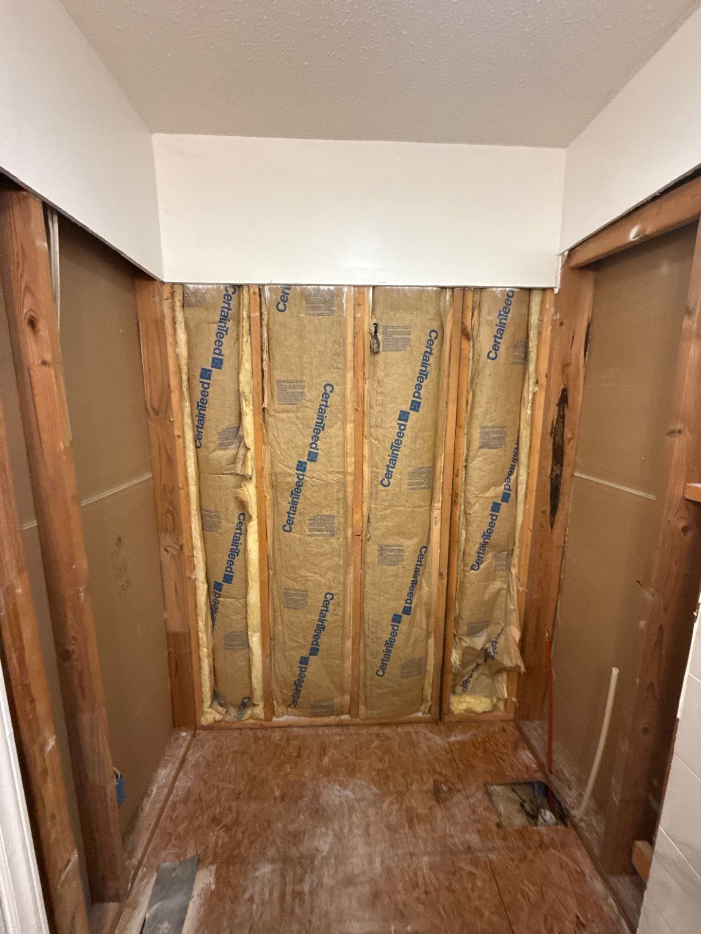 The installation process includes a full demolition down to the studs, inspection for any water damage, and plumbing replacement from the foundation up. Tabitha explained that the company installs all walls to the ceiling with marine-grade silicone sealing, ensuring a secure, watertight system. Installers arrive with floor protection and handle all cleanup and debris removal. Customer was informed that the job is typically completed in two days, with a third day reserved if needed. Installation availability was approximately eight weeks out, which was acceptable for their schedule.