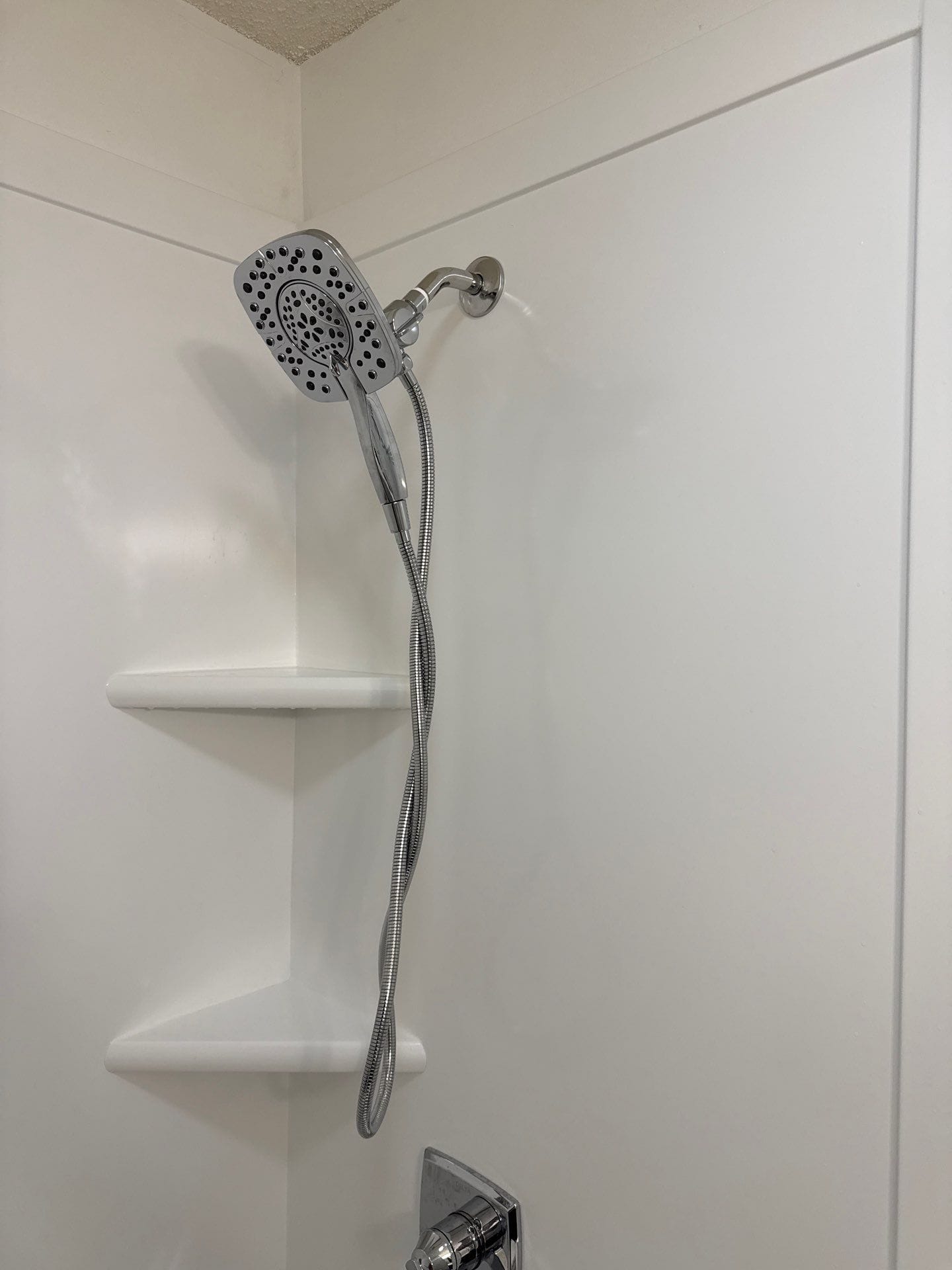* Two corner shelves and two safety grab bars (horizontal and vertical)
