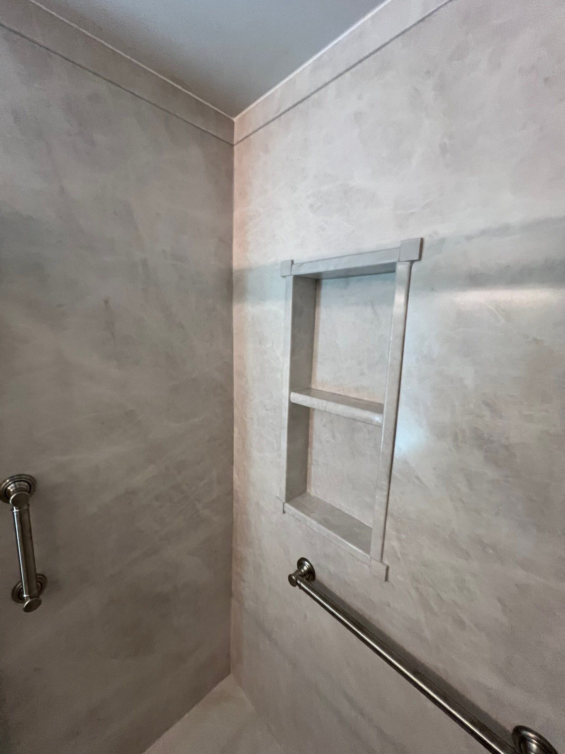 * Recessed wall niche for integrated product storage