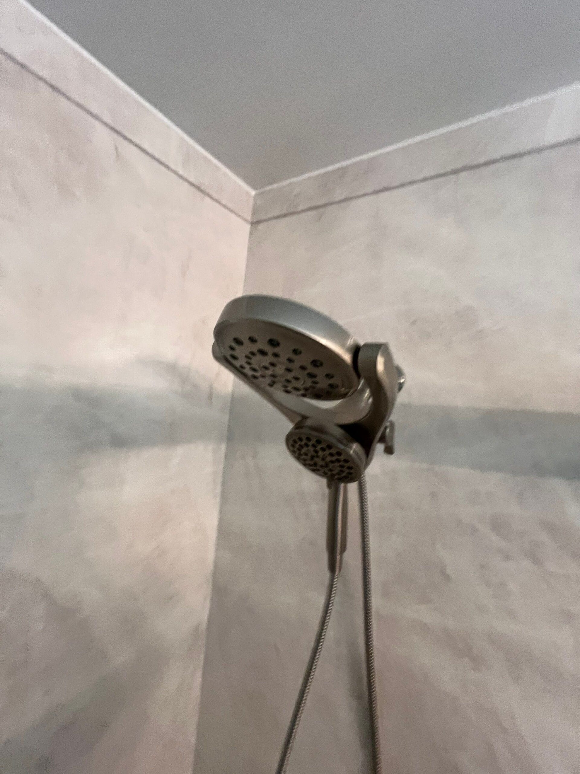 * Brushed nickel dual-function showerhead with handheld