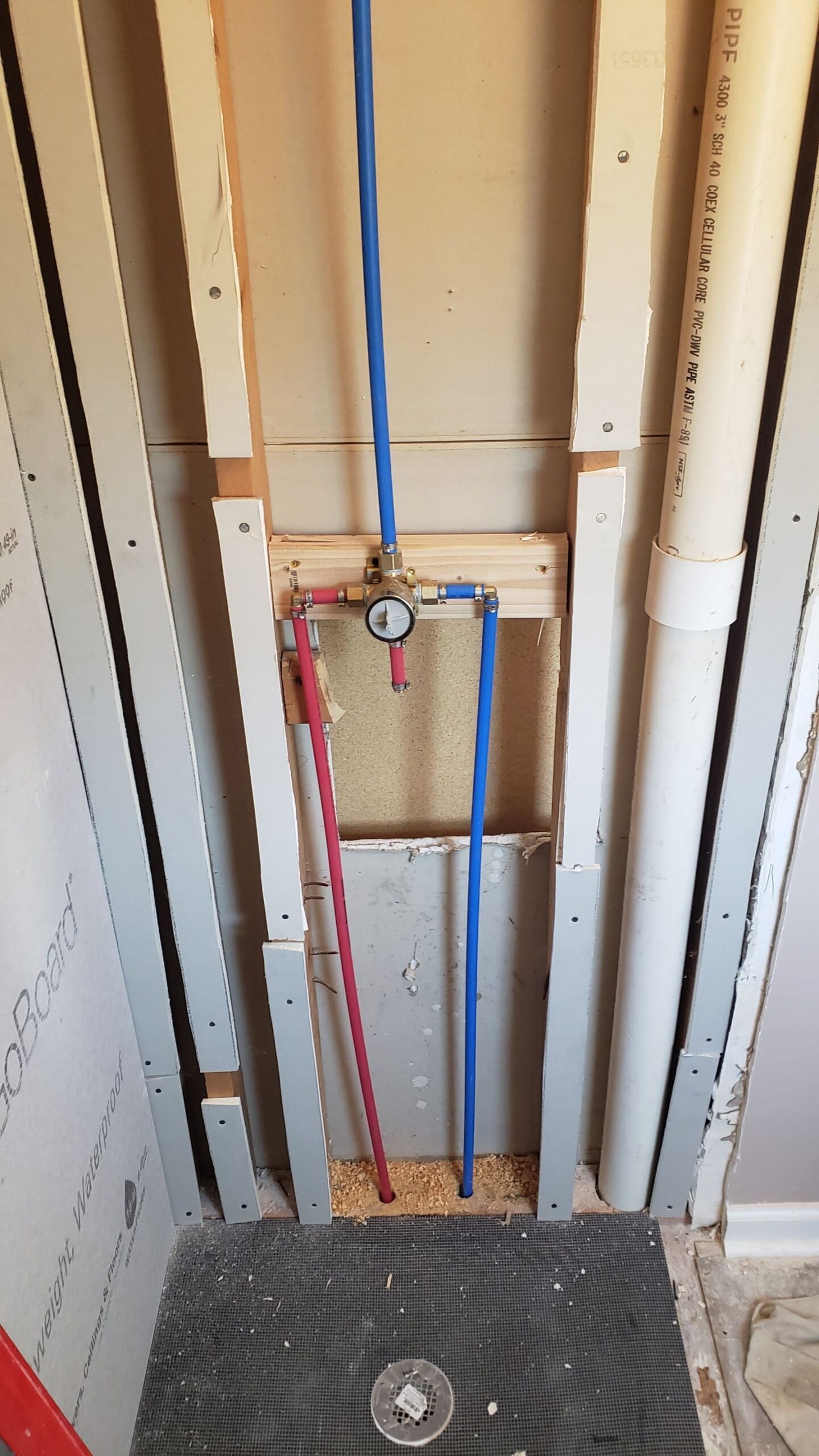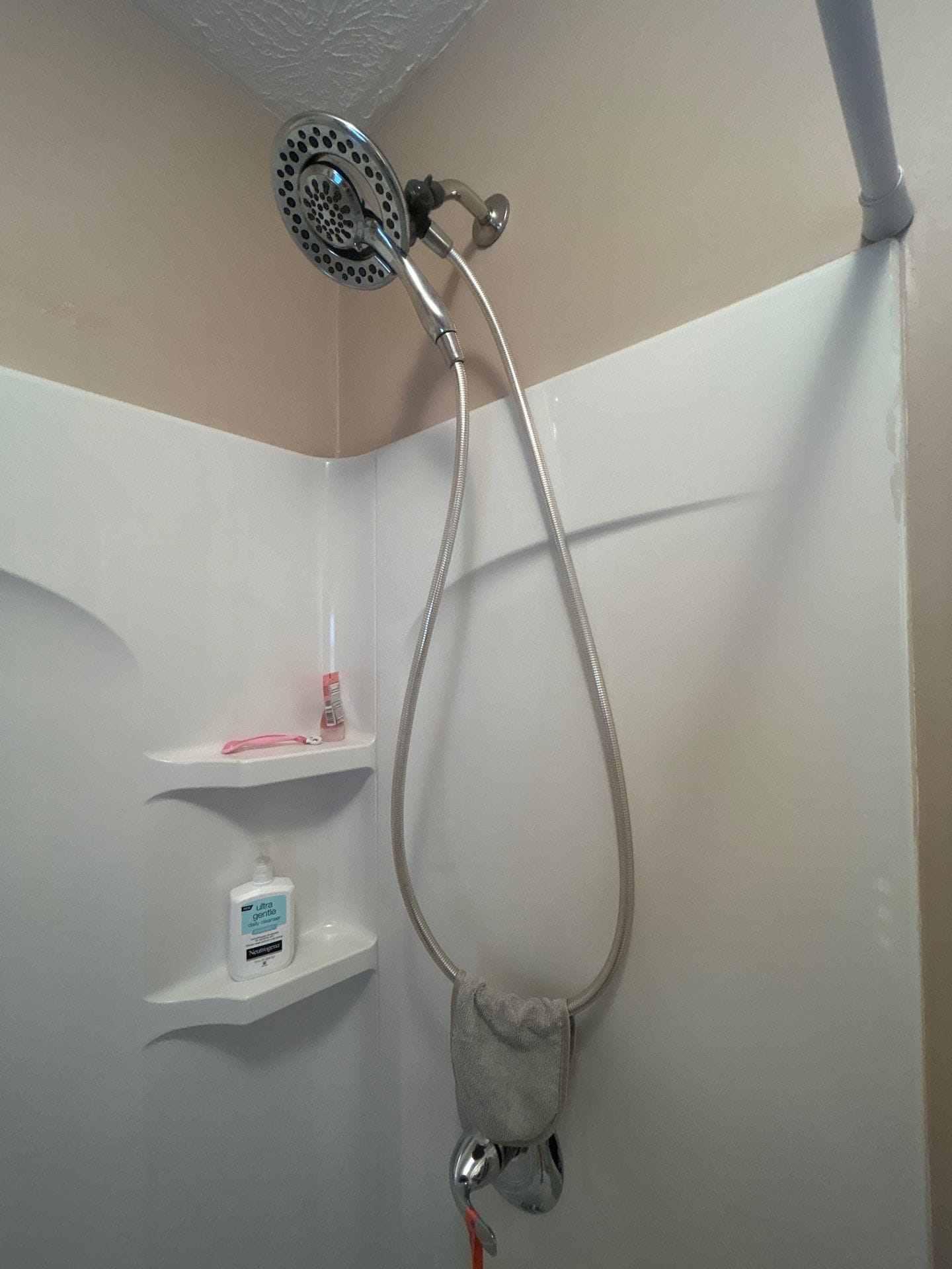 Installation included full removal of the existing bathtub and surrounding wall system down to the studs, followed by necessary plumbing updates to meet code requirements. A low-threshold walk-in shower base was installed to allow easy entry, replacing the previous high tub wall. The system was built using a fully waterproof backer board and finished with wall panels, fixtures, and a sliding glass enclosure for improved water containment while maintaining accessibility. The process was completed efficiently with attention to proper sealing, fit, and finish.