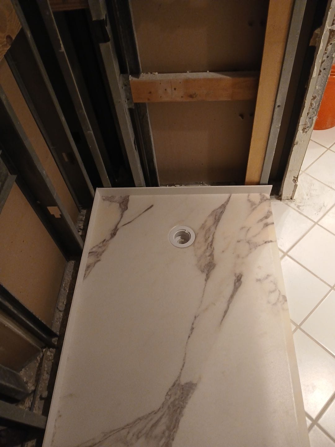 Installation begins with the removal of existing materials and the application of a waterproof, closed-cell foam cement board backer system. The process involves preparing the plumbing for a handheld showerhead and precisely fitting the composite panels and shower base to the recorded measurements. The team manages the site protection and completes a final walkthrough to ensure the installation meets the specified design and quality standards.