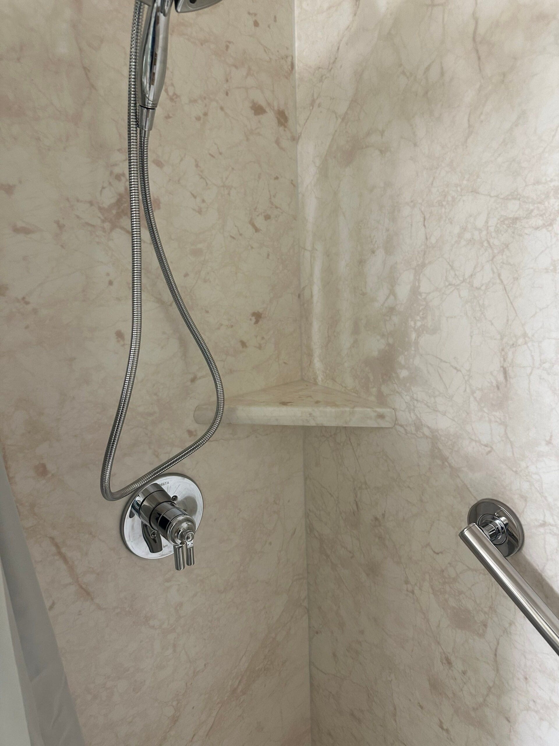 Five Star Bath Solutions representative Scot Kemmer introduced the Smart Choice composite system, featuring a quarter-inch thick antimicrobial surface with high-resolution stone textures and no grout lines. This product offered a more realistic and durable alternative to standard acrylic, with better long-term performance in rental settings. Scot outlined the company’s focus on value, trust, and workmanship, including in-house certified installers, insurance coverage, and a strong BBB rating. The customer appreciated the company’s attention to both quality and return on investment.