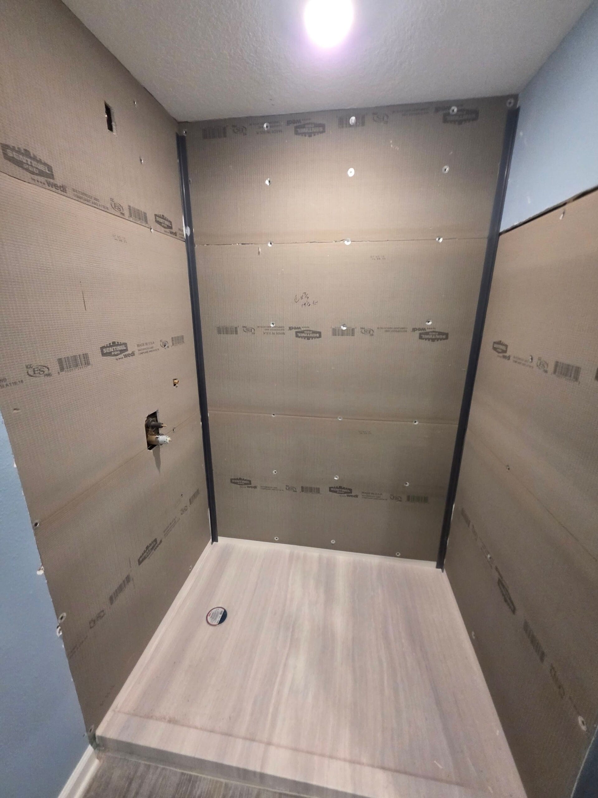 Installation involved full removal of the existing tub and wall surround, followed by preparation of the space with a waterproof backer system and updated plumbing components. A low-threshold shower base, wall panels, fixtures, and glass enclosure were installed by trained technicians. The process included site protection, efficient workflow, and thorough cleanup, with completion achieved within a one to three day timeframe.