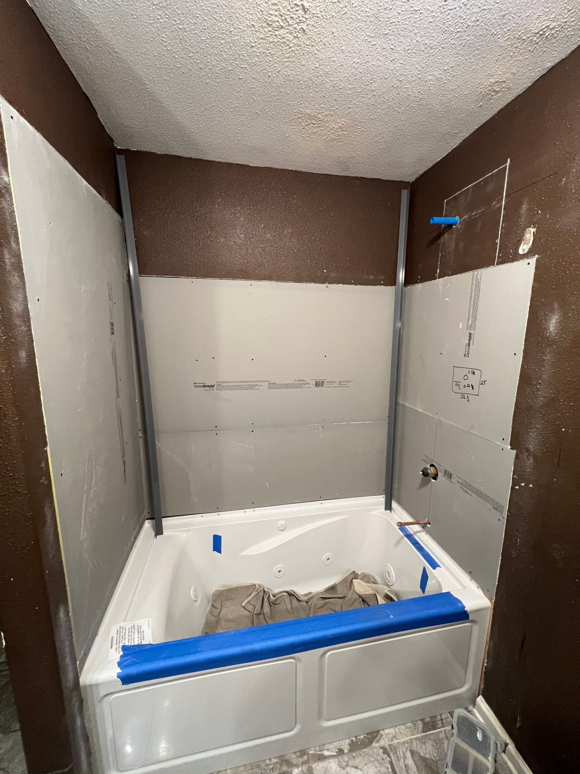 * Custom Shower Shield waterproof backer board with leak-proof corners