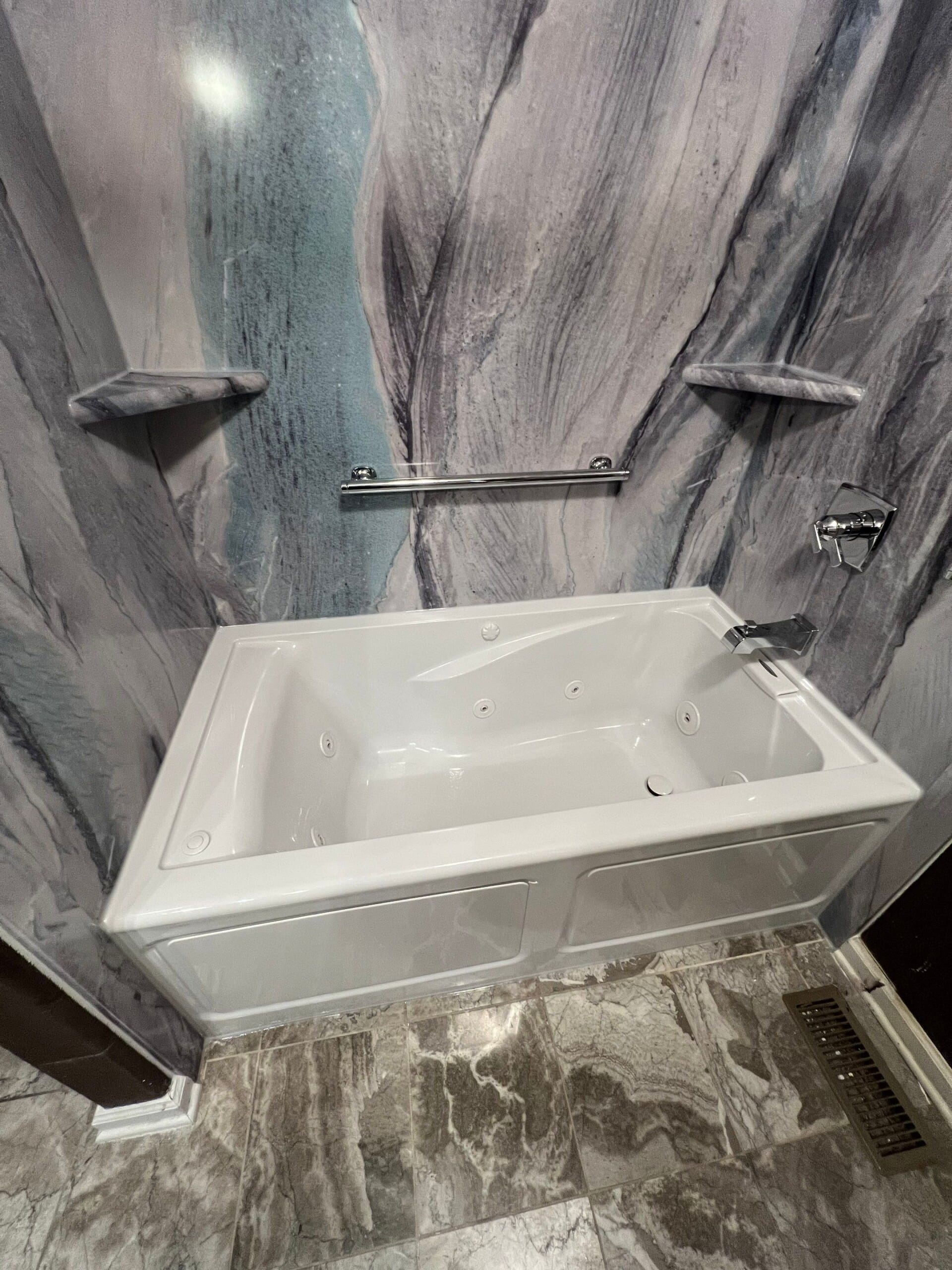 * Full bathtub replacement with white pearl acrylic composite walls
