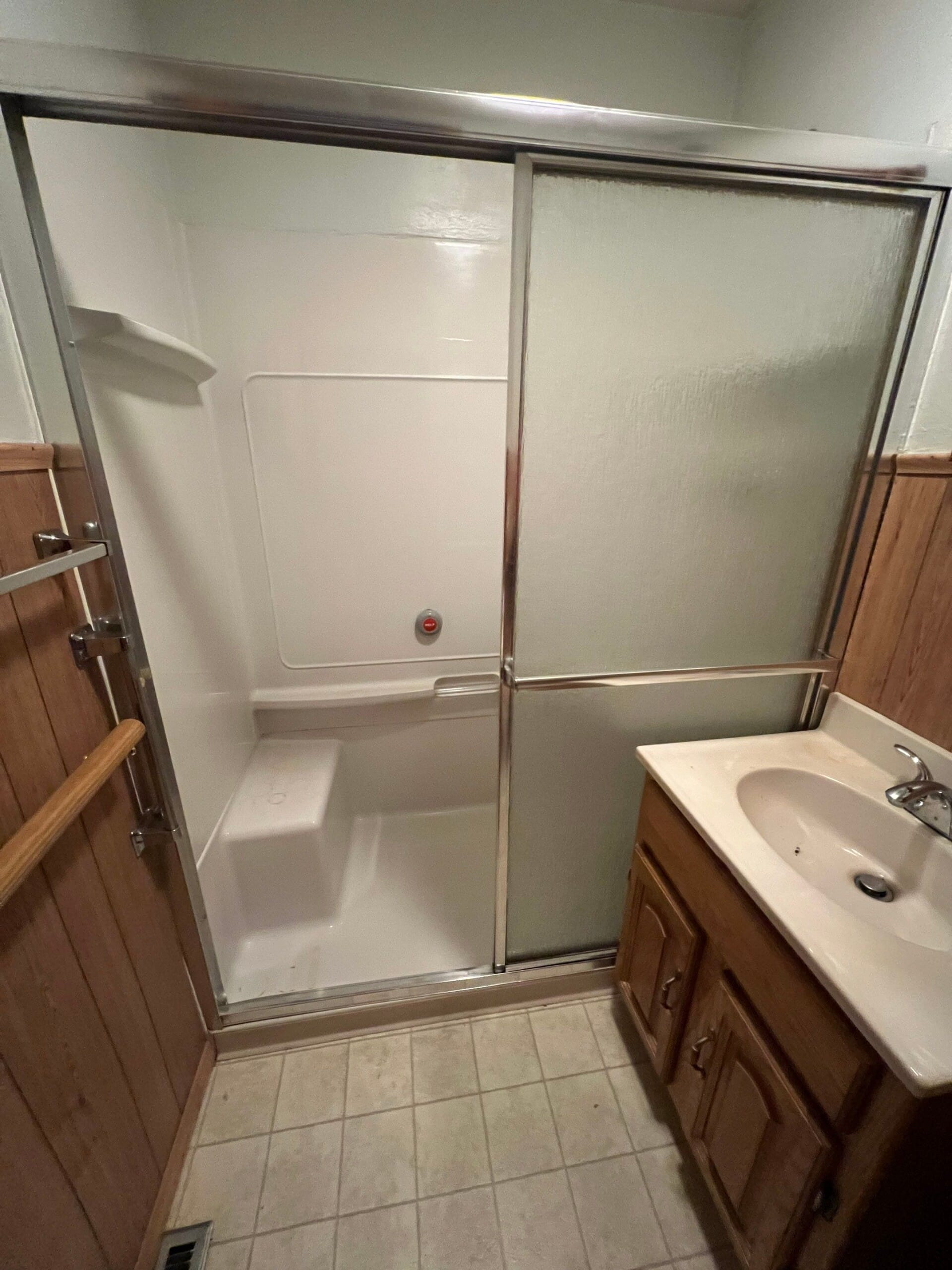Installation included complete removal of the existing shower enclosure and wall materials down to the framing, followed by adjustments to plumbing and structural components as needed. The team installed a waterproof backer system, set the custom shower base, and secured the wall panels, fixtures, and accessories with precision. Additional work included vanity installation and layout improvements to maximize space. The project was completed in approximately one to two weeks per bathroom, with thorough site protection, cleanup, and final walkthrough to ensure satisfaction.