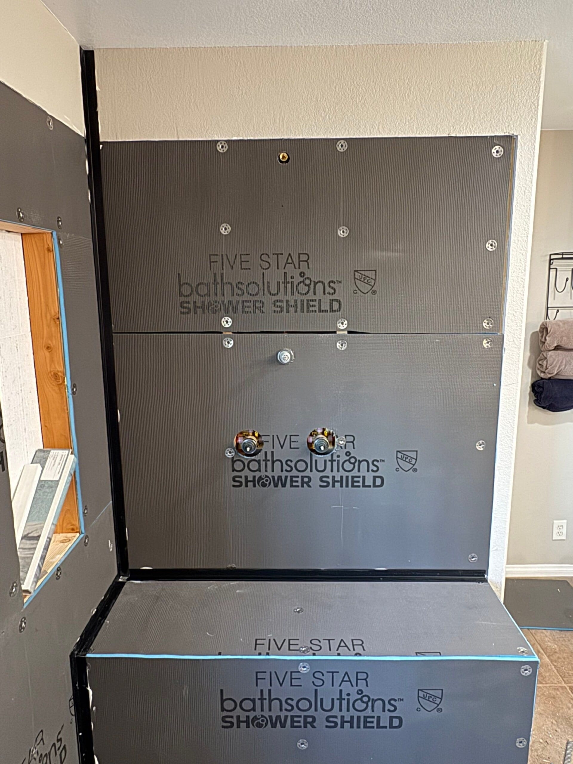 * Brand-new shower installation in previously non-shower space