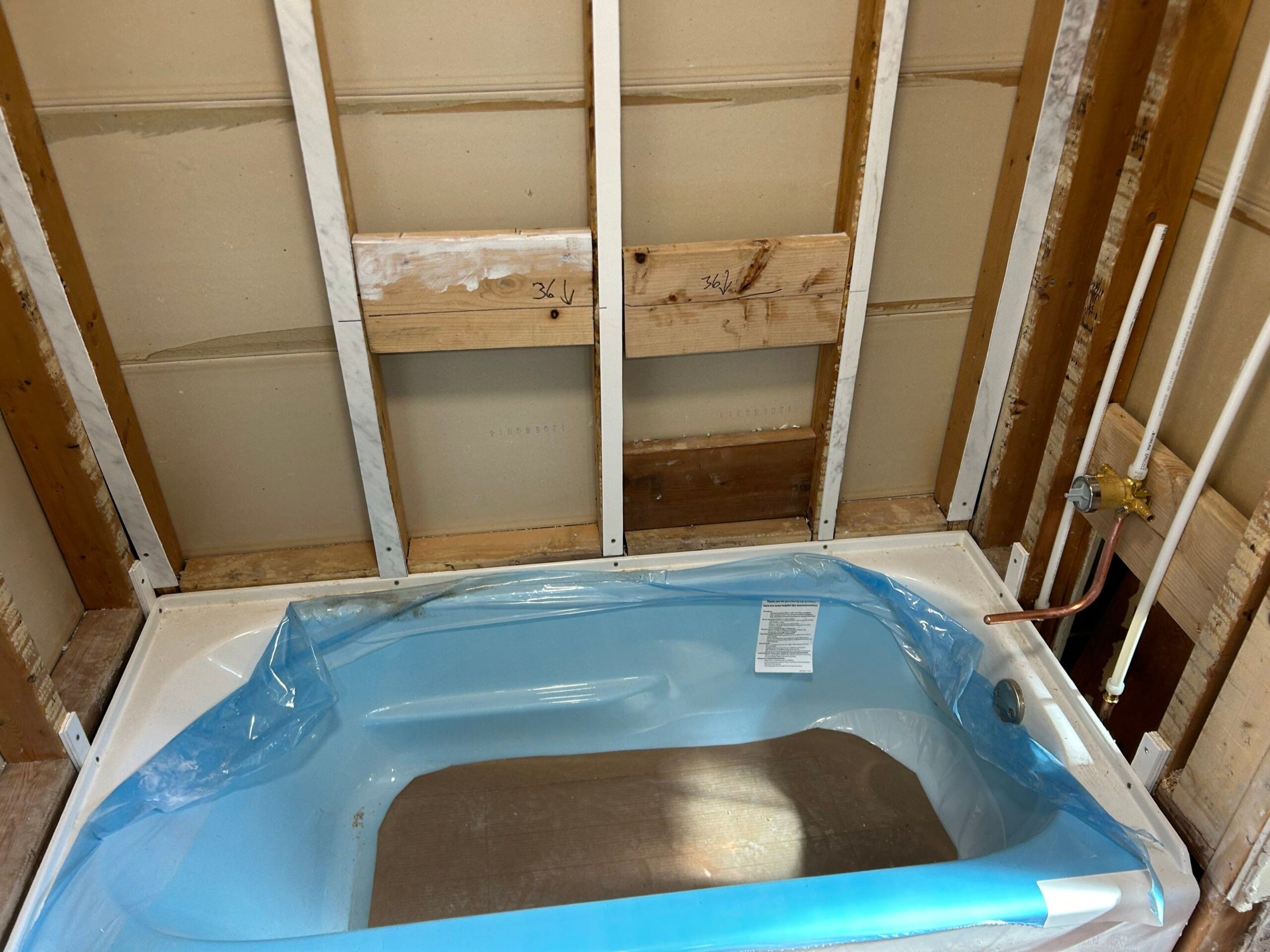 * Plumbing updates and raised shower head position