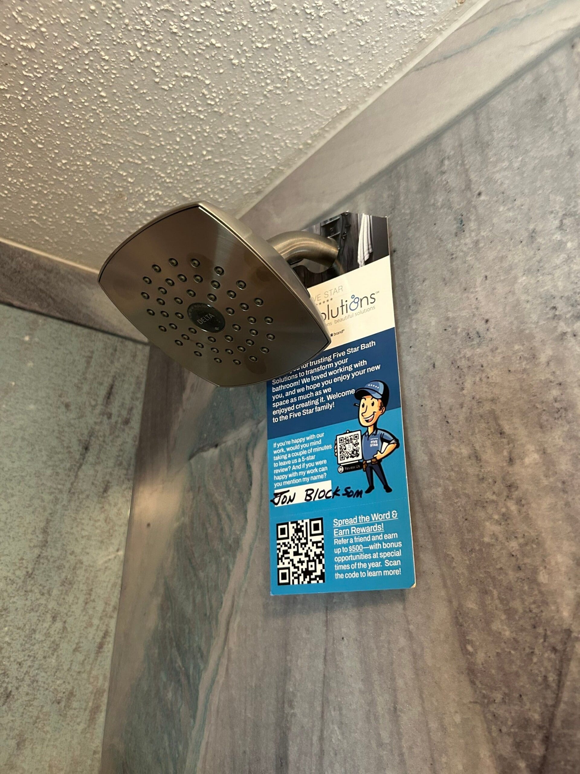 Five Star Bath Solutions provides a fully transferable lifetime warranty covering the product, installation, and parts. The quote included all labor, tear-out, repairs, and waterproofing, with transparent pricing. A one-year quote of $23,313 was presented, alongside a promotional 30-day price of $17,850, which included a 77% discount on labor. Additional savings options were discussed, but the customer, with a background in contracting, expressed interest in completing future remodels independently.