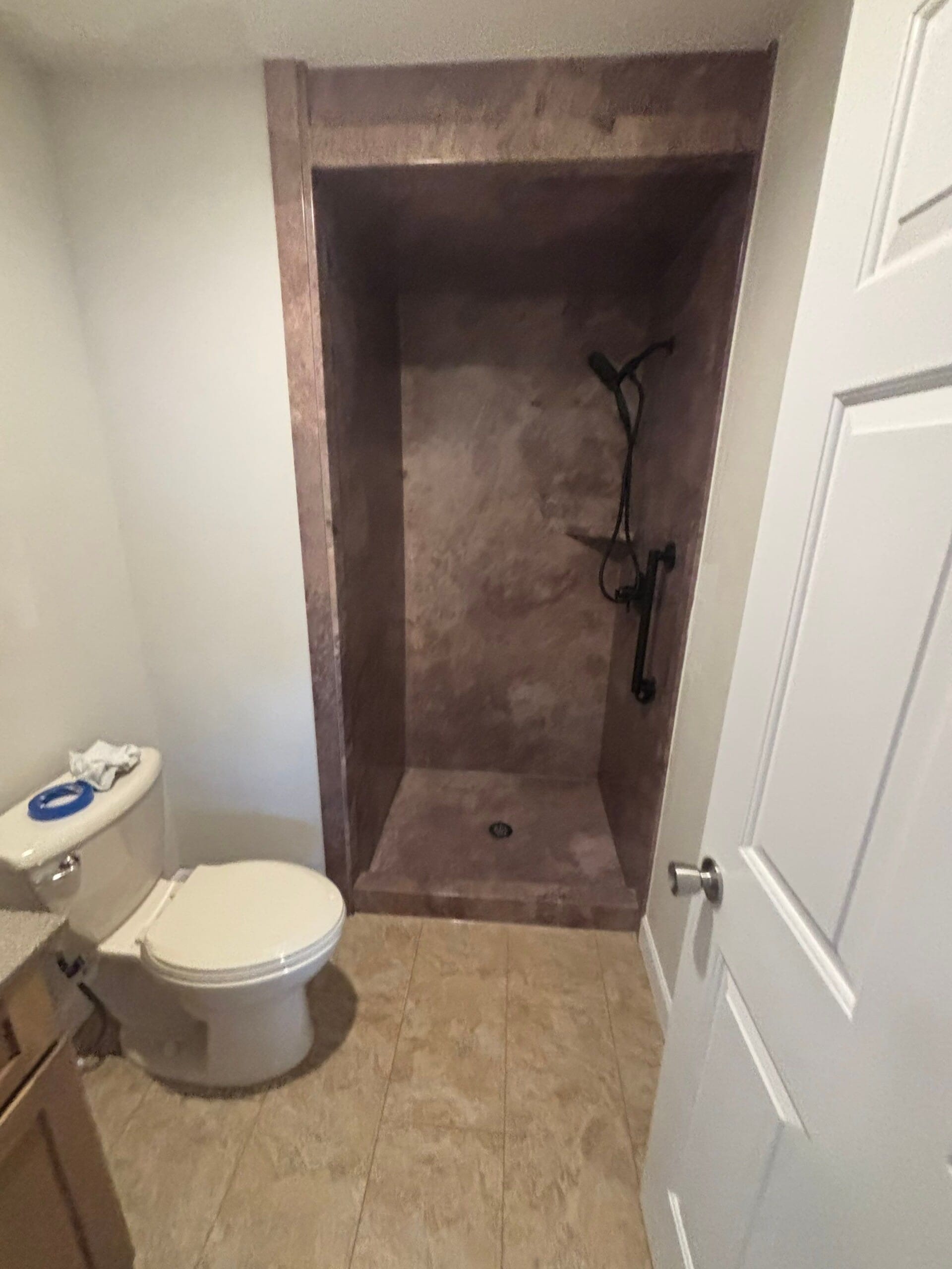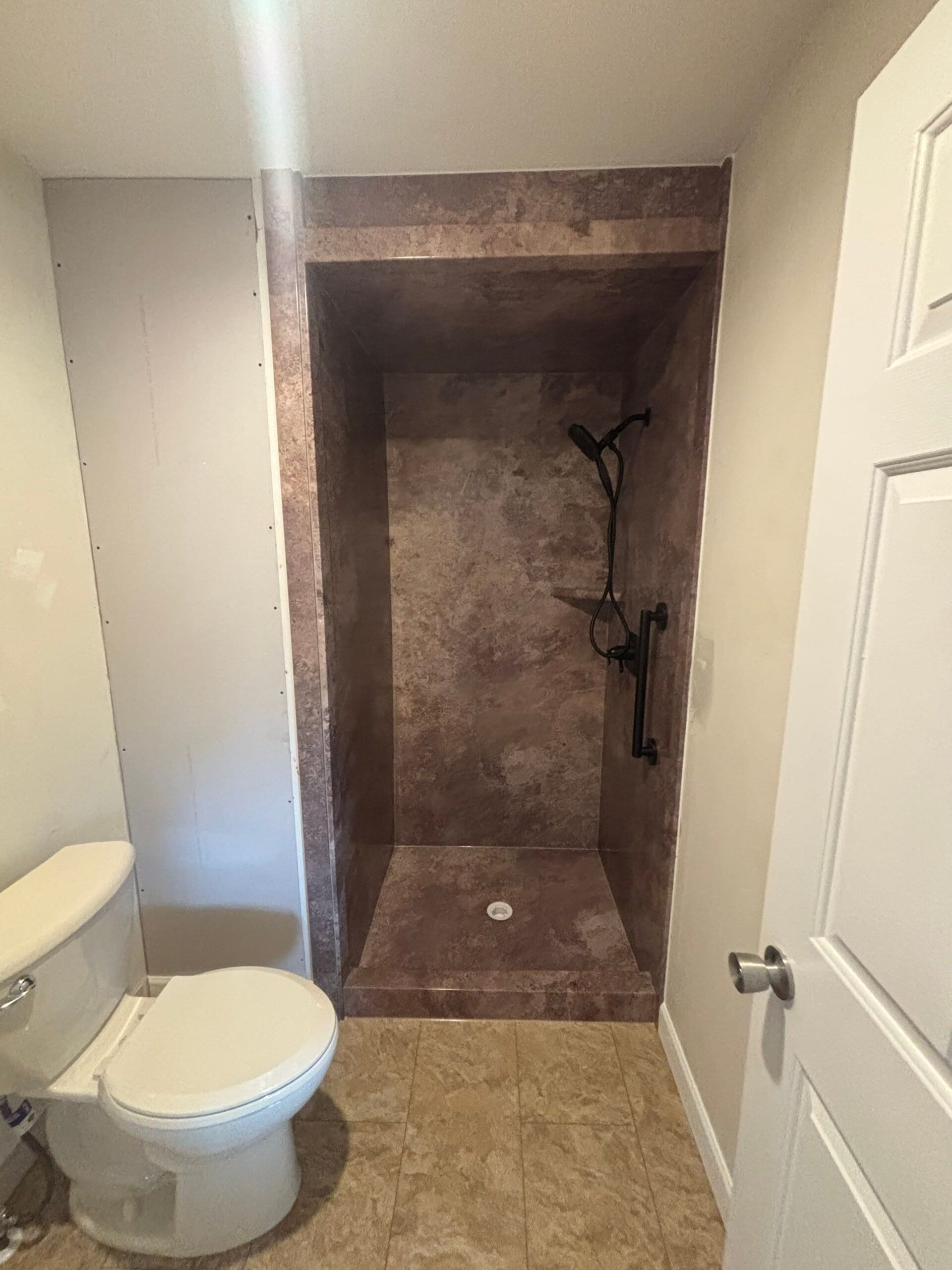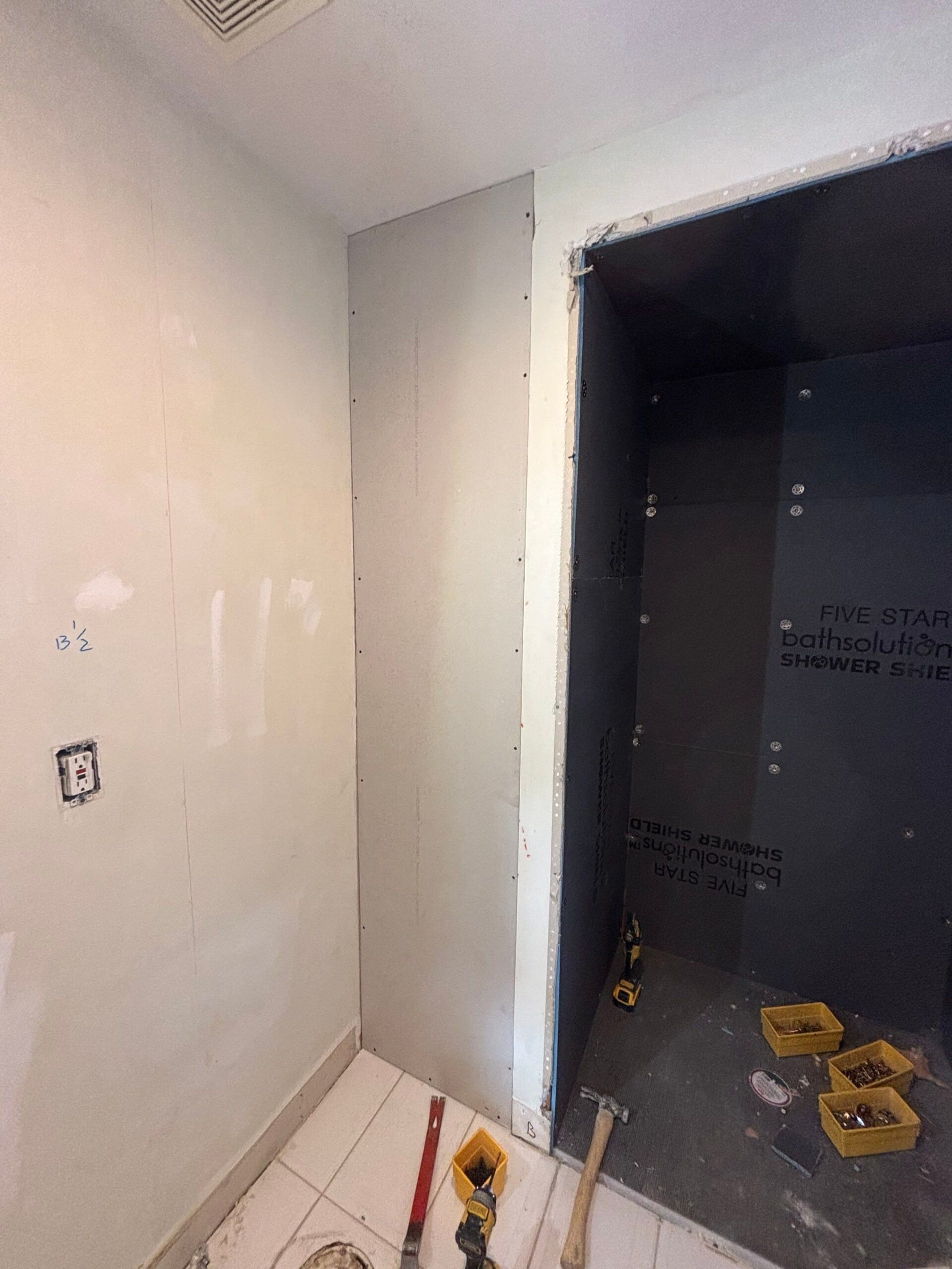 Scot detailed the installation process, which included full demolition to the studs, repair of any damaged substrate, and replacement of all PEX plumbing. Installation was completed in two days and included waterproofing with Shower Shield cement-coated closed-cell foam backer board. The remodel preserved the existing shower footprint but elevated function and finish through modernized components and precise workmanship.